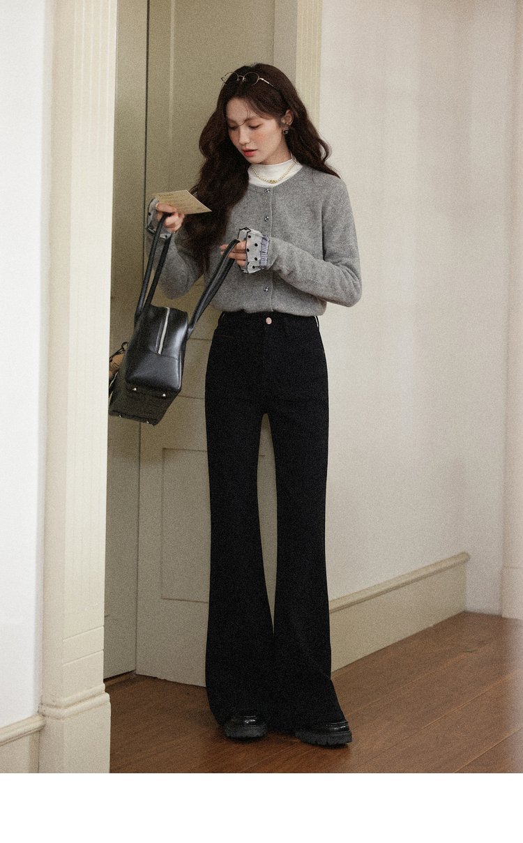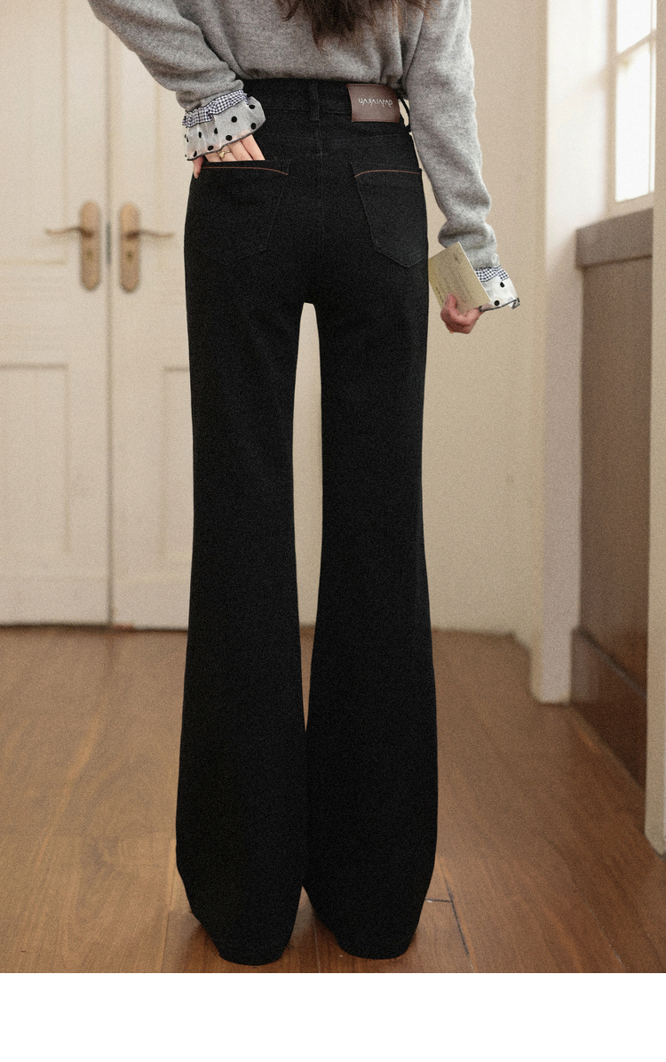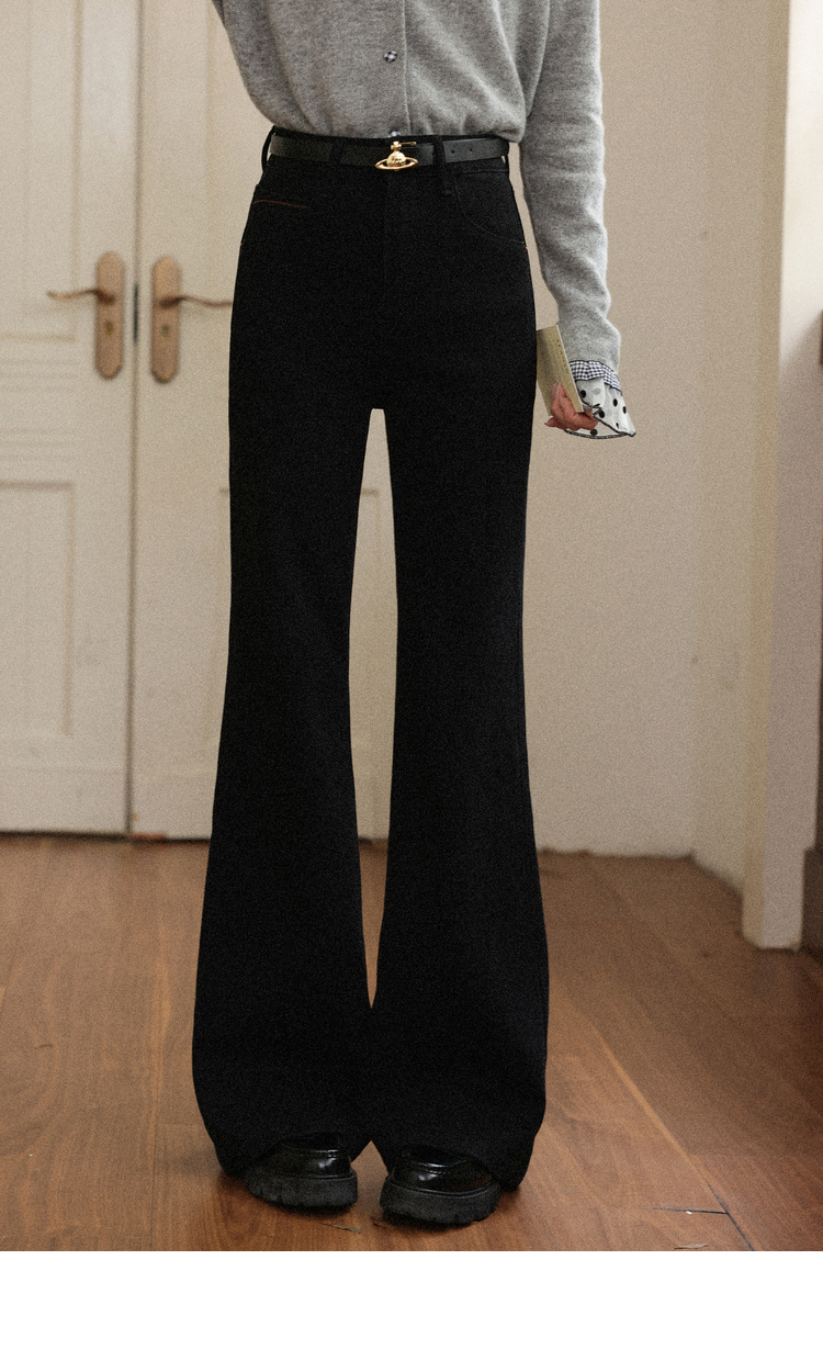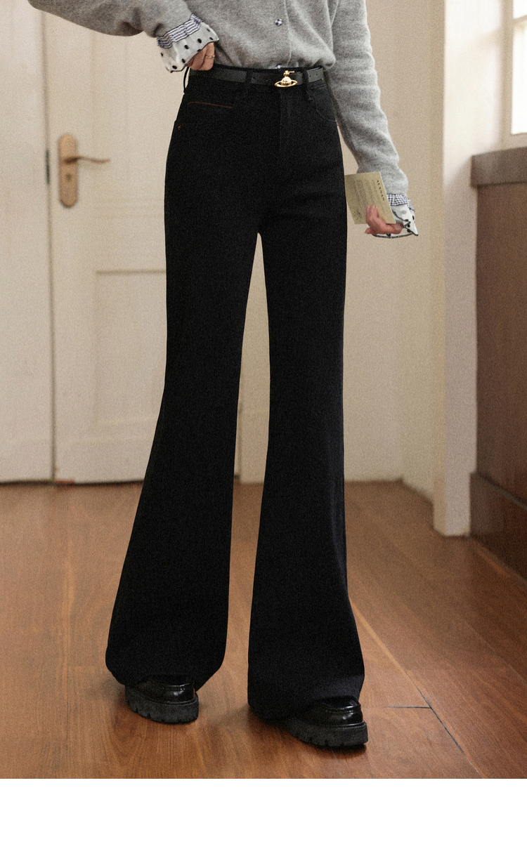 鹿向南「蟋蟀夜鸣」黑色高腰牛仔裤女秋季新款修身百搭拖地喇叭裤