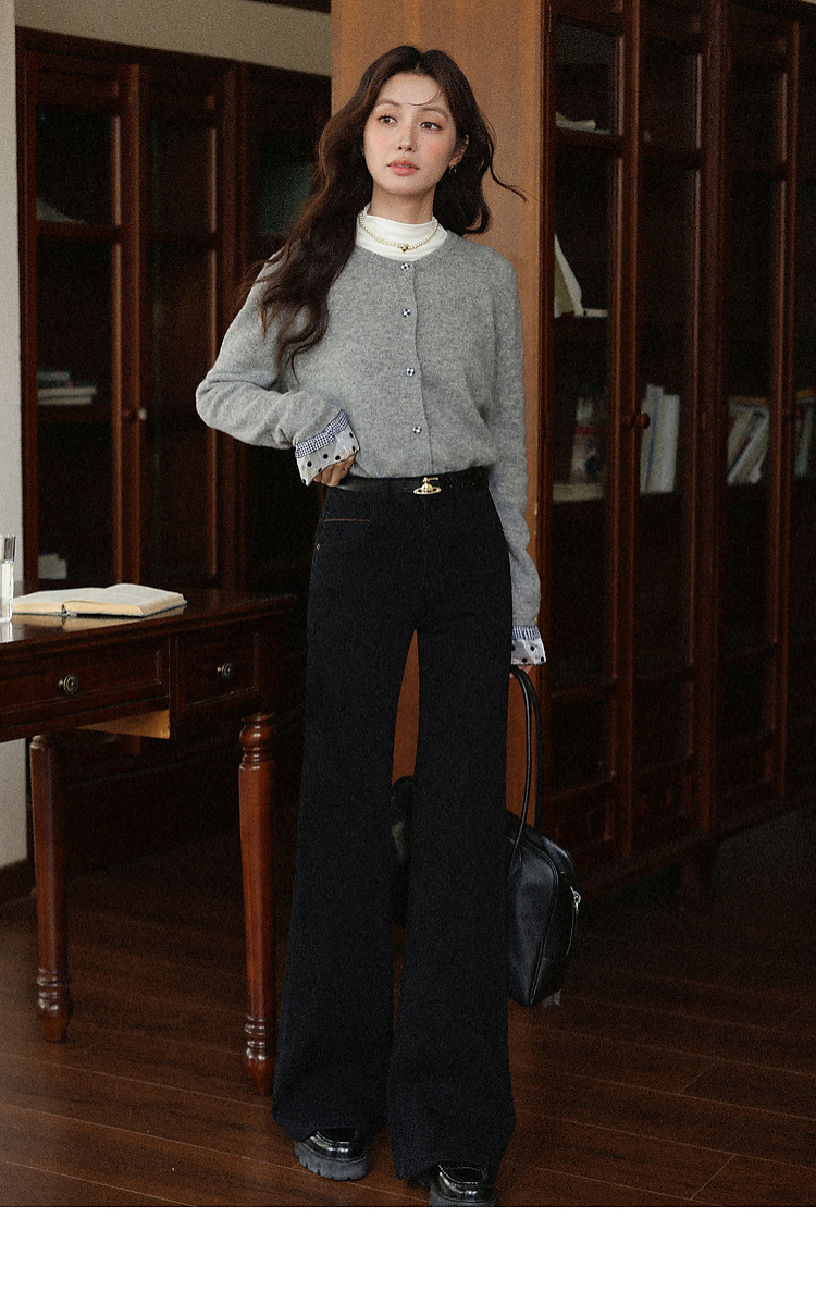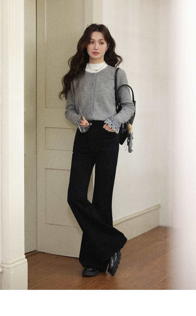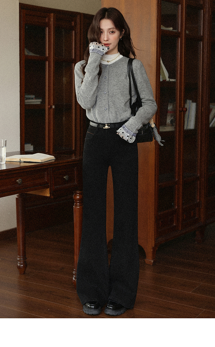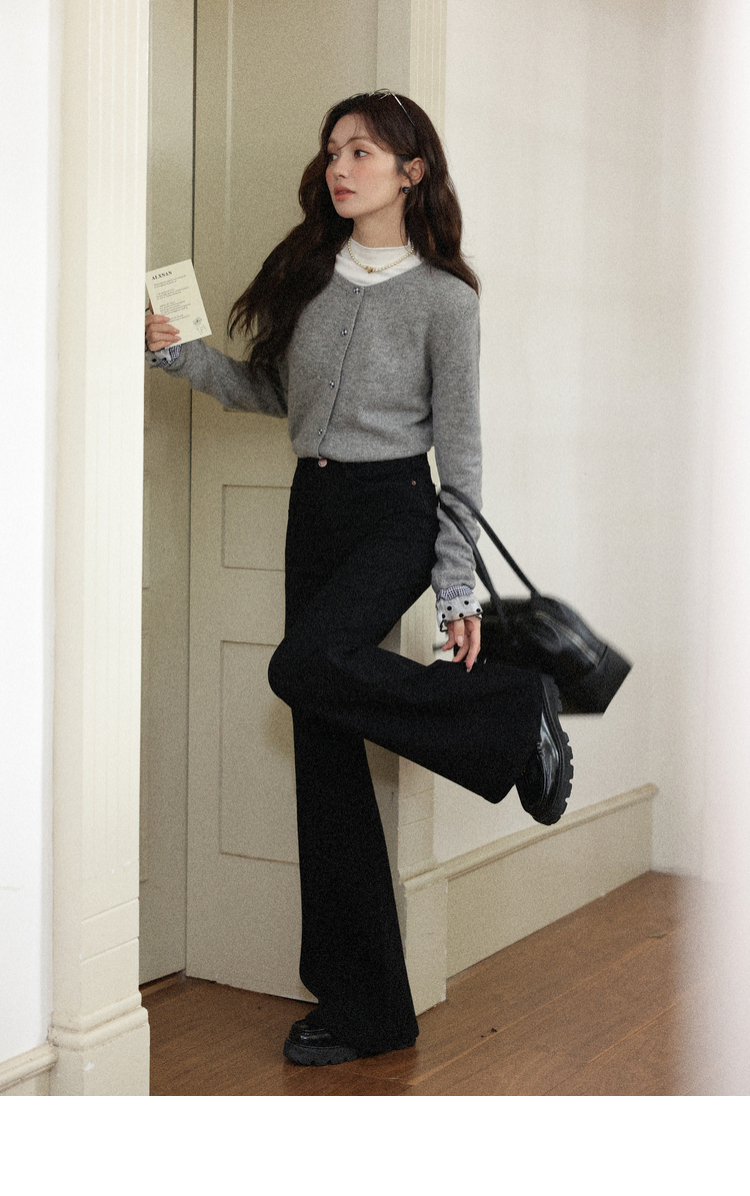 鹿向南「蟋蟀夜鸣」黑色高腰牛仔裤女秋季新款修身百搭拖地喇叭裤