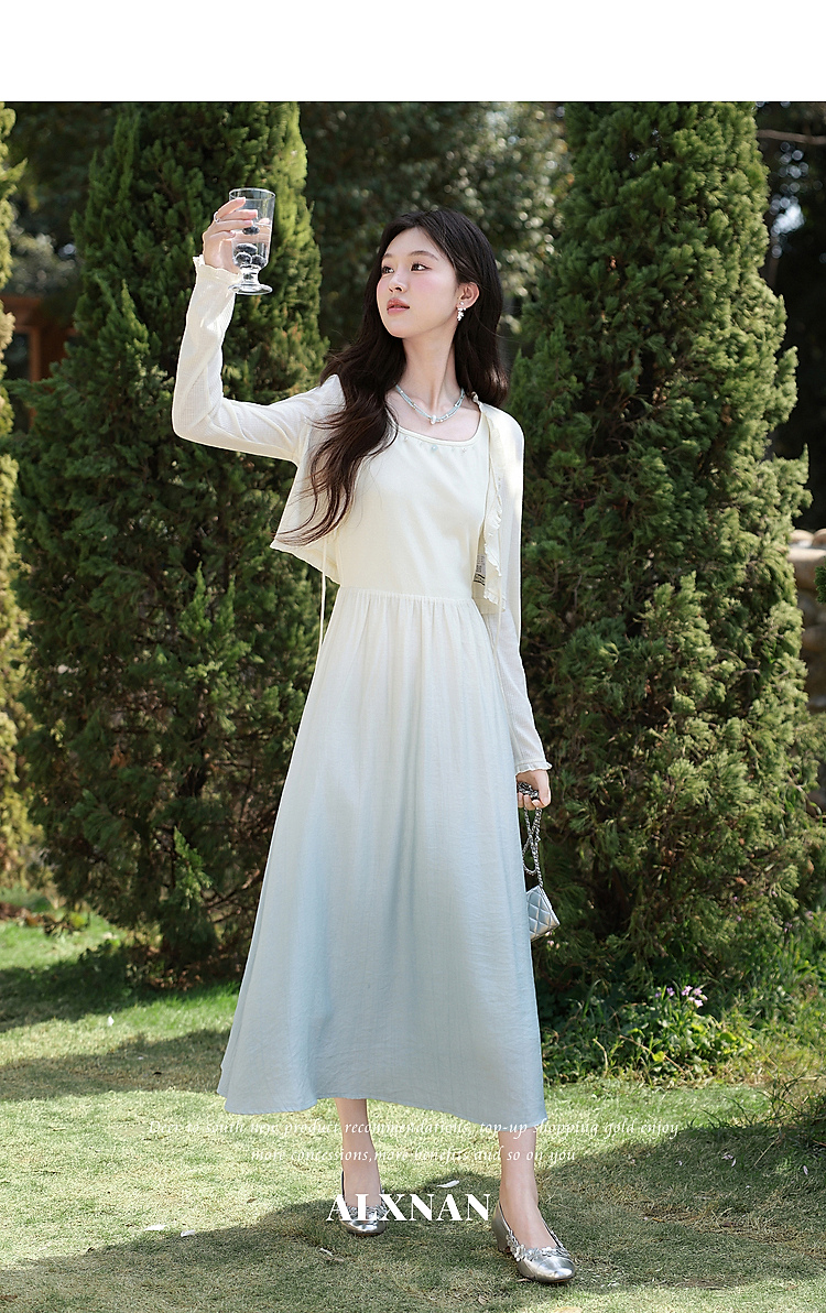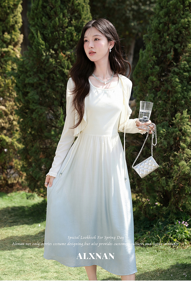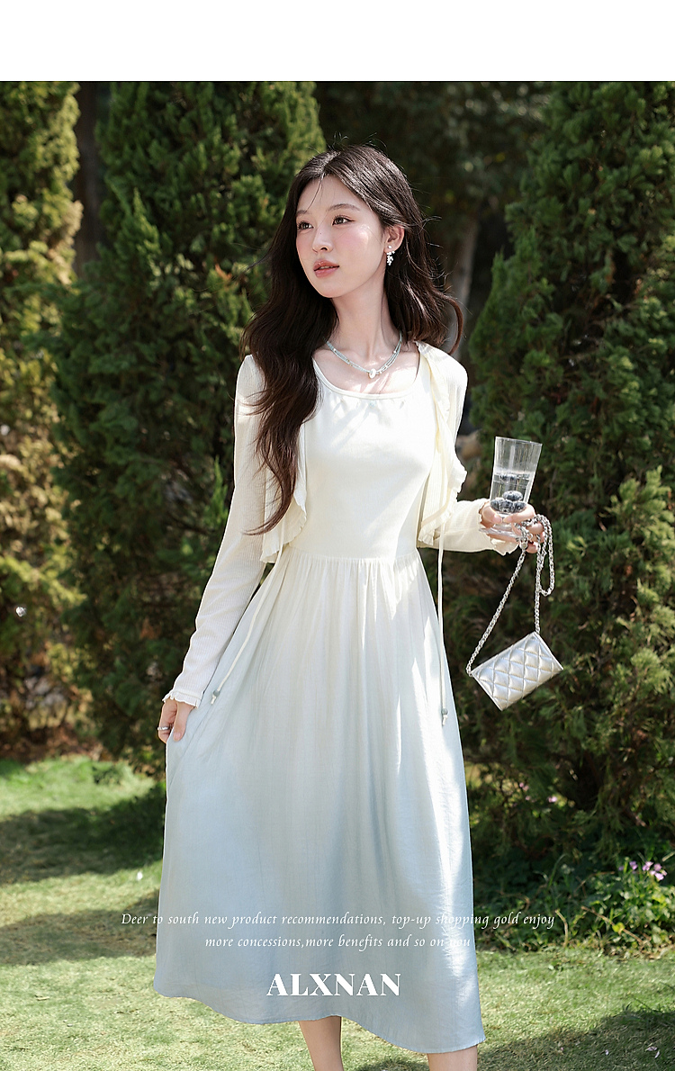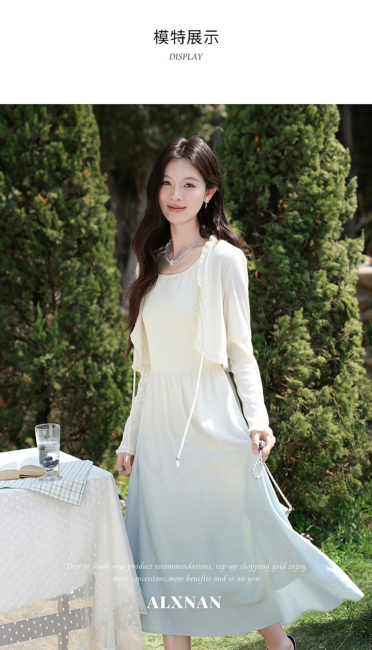 鹿向南「夏日碎冰」洋气长袖杏色针织开衫女春季新款短款外搭上衣