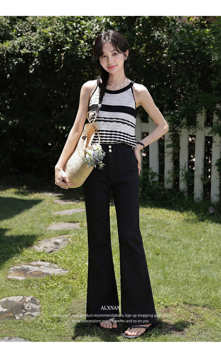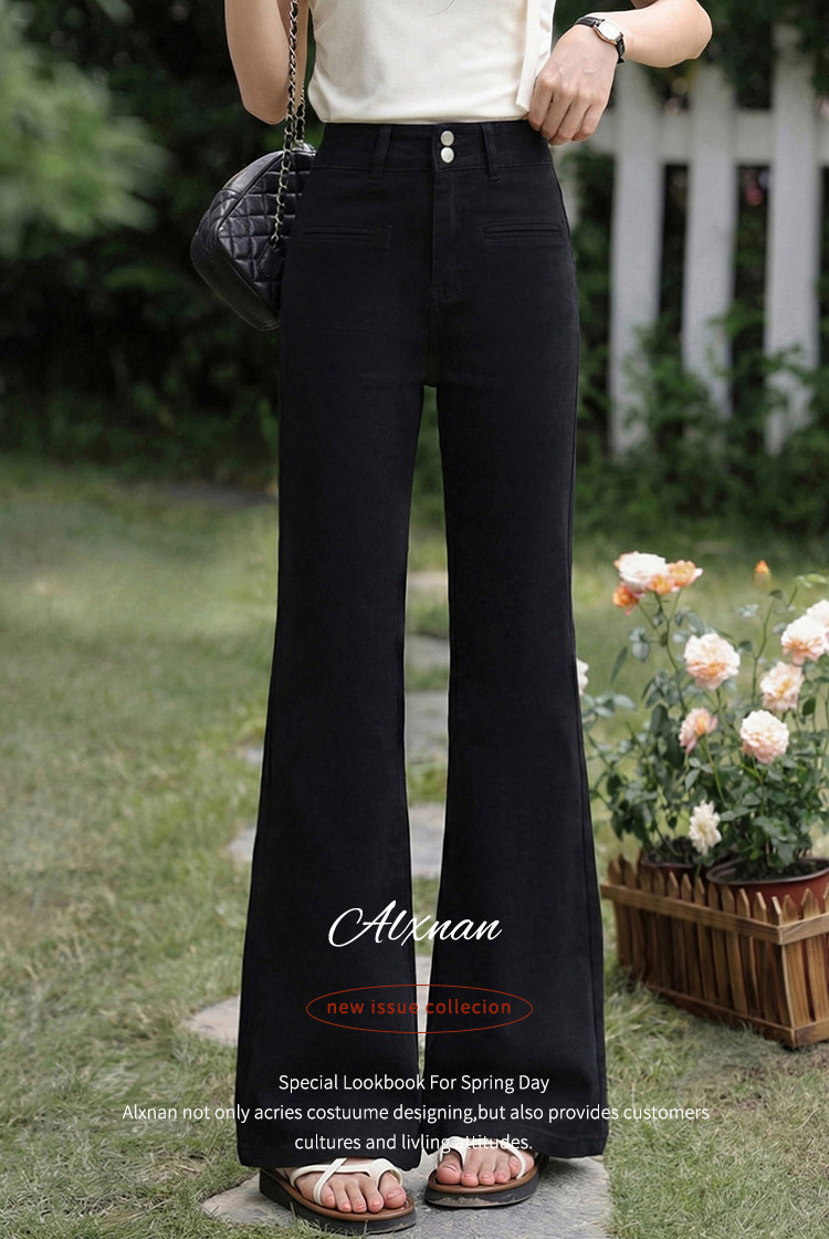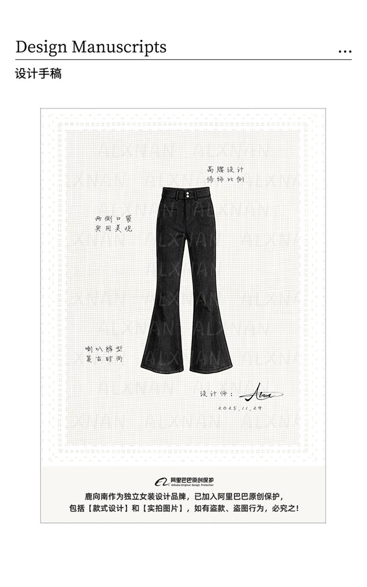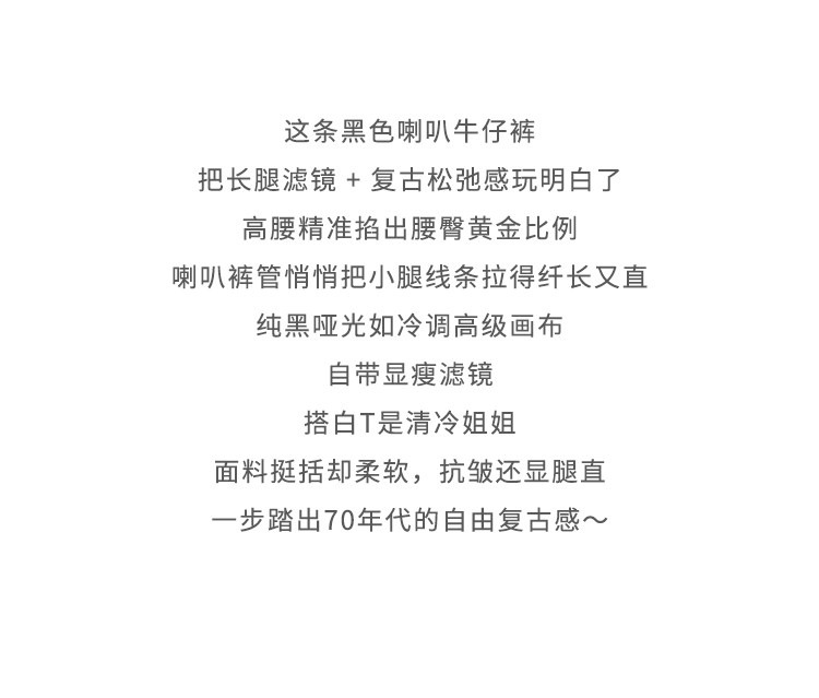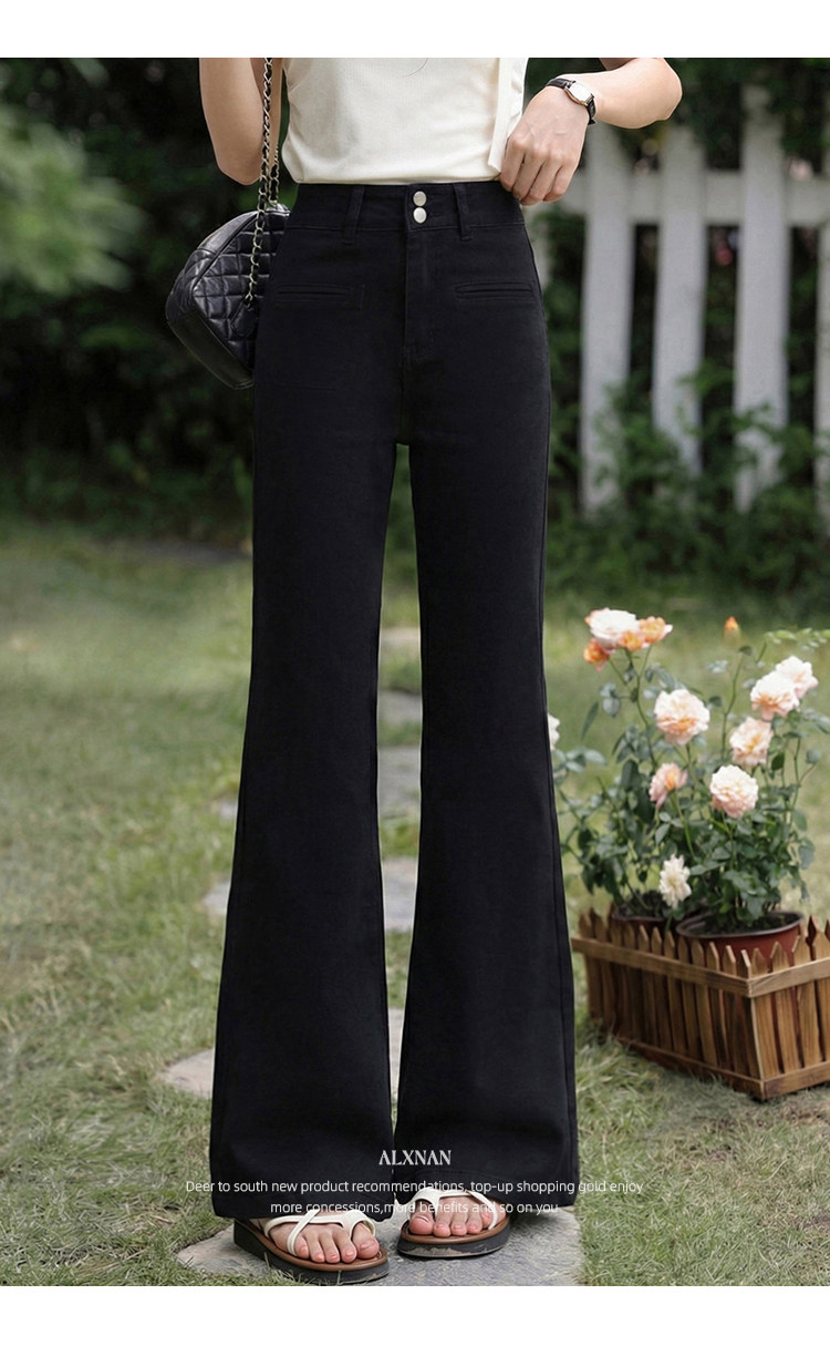 鹿向南「墨画四季」黑色微喇牛仔裤女春季新款小个子百搭高腰长裤