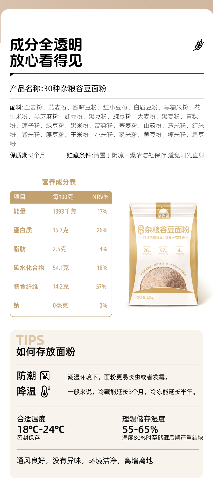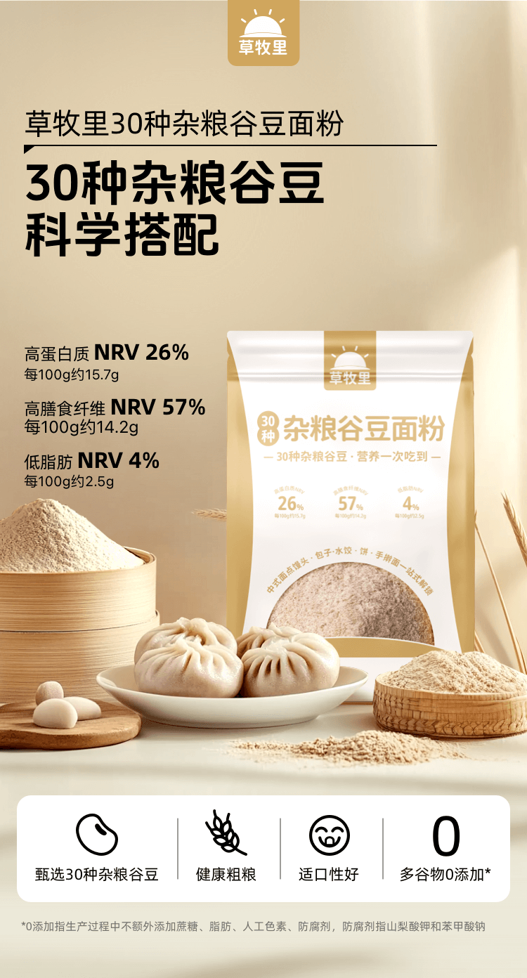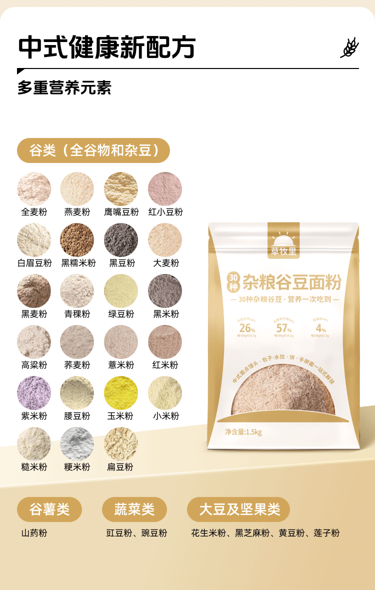 【科学搭配】草牧里 30种杂粮谷豆面粉 1.5kg/袋 营养更胜一筹