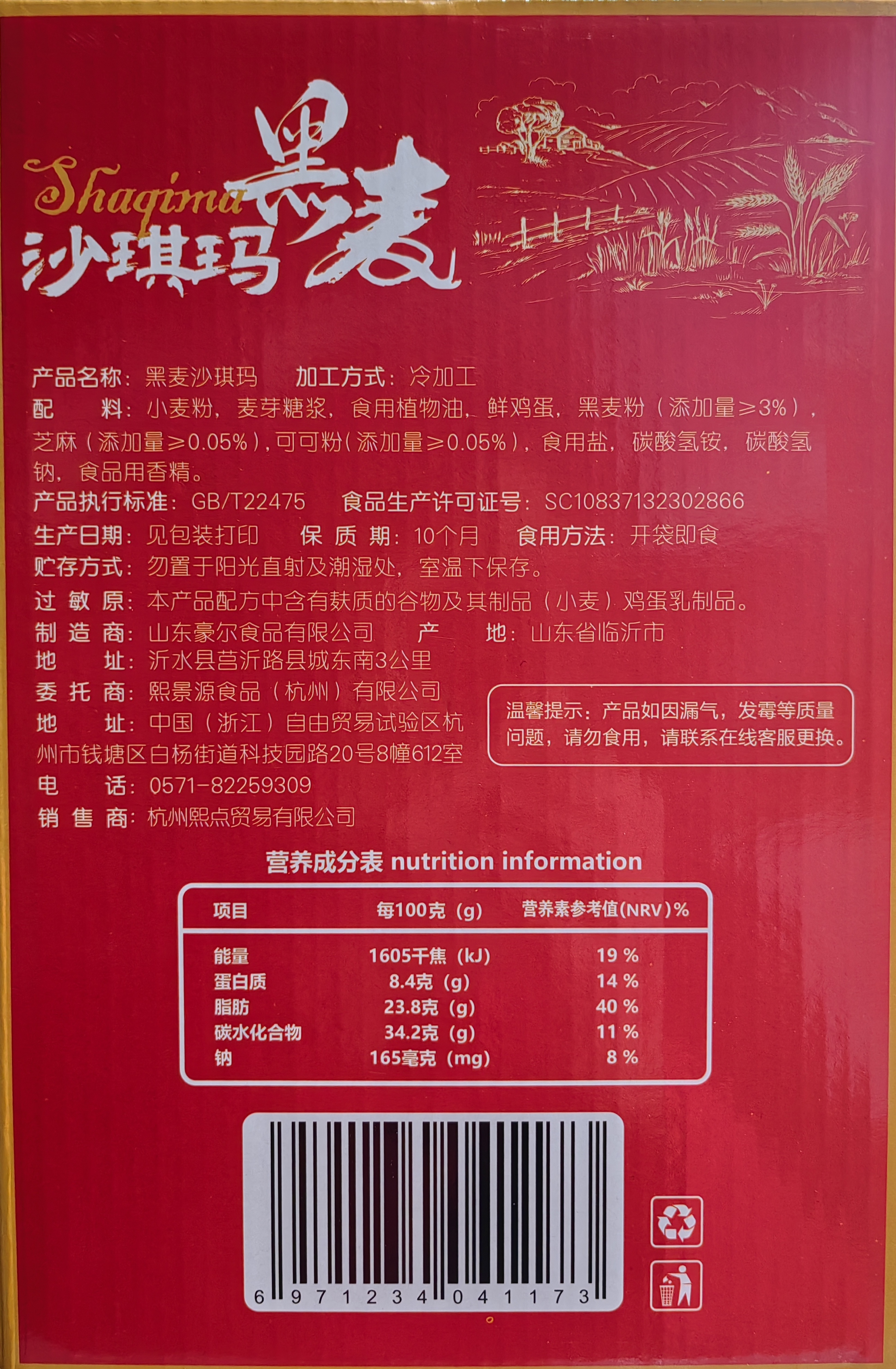 成分表:小麦粉、麦芽糖浆、食用植物油、鲜鸡蛋、黑麦粉(添加量≥3%)、芝麻(添加量≥0.05%)、可可粉(添加量≥0.05%)、食用盐、碳酸氢铵、碳酸氢钠、食品用香精