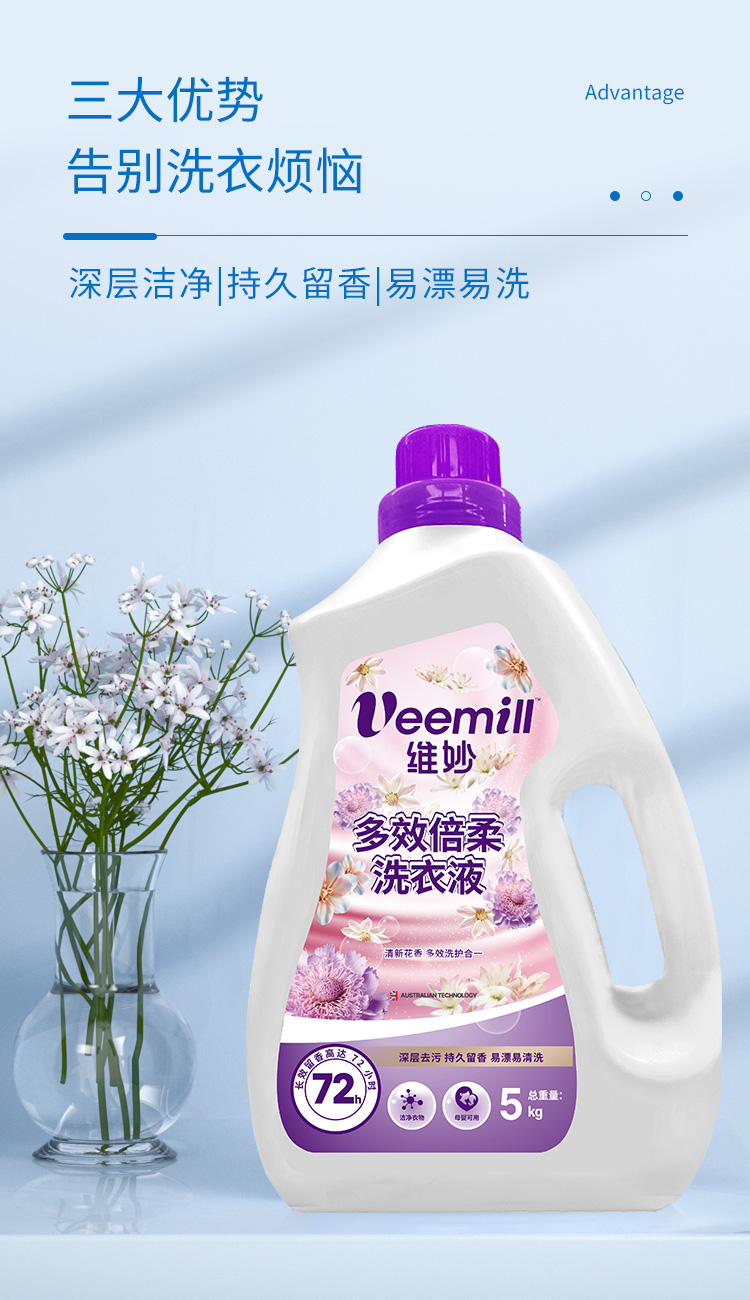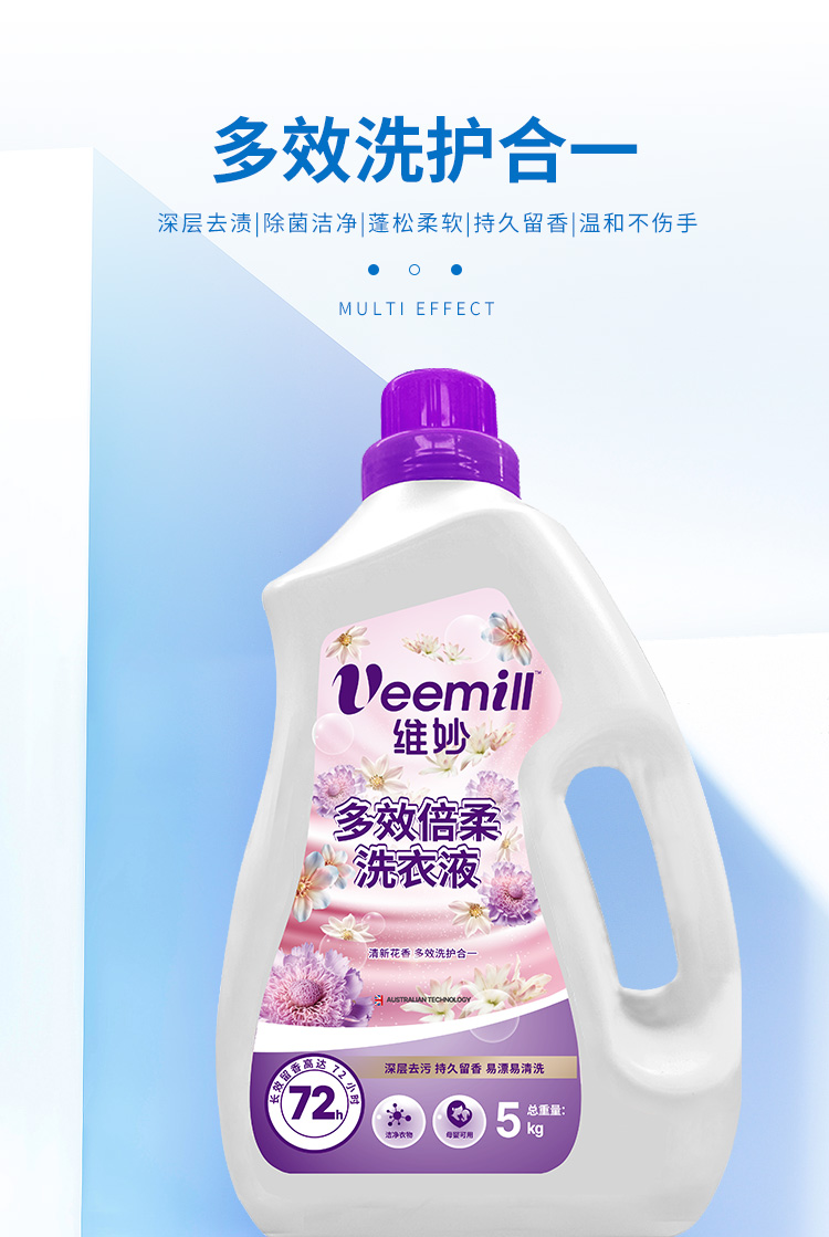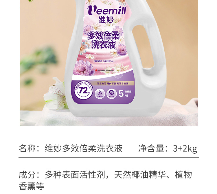 【多效洗护】Veemill维妙 多效倍柔洗衣液(共12斤) 5Kg瓶装+除菌500g袋装*2袋