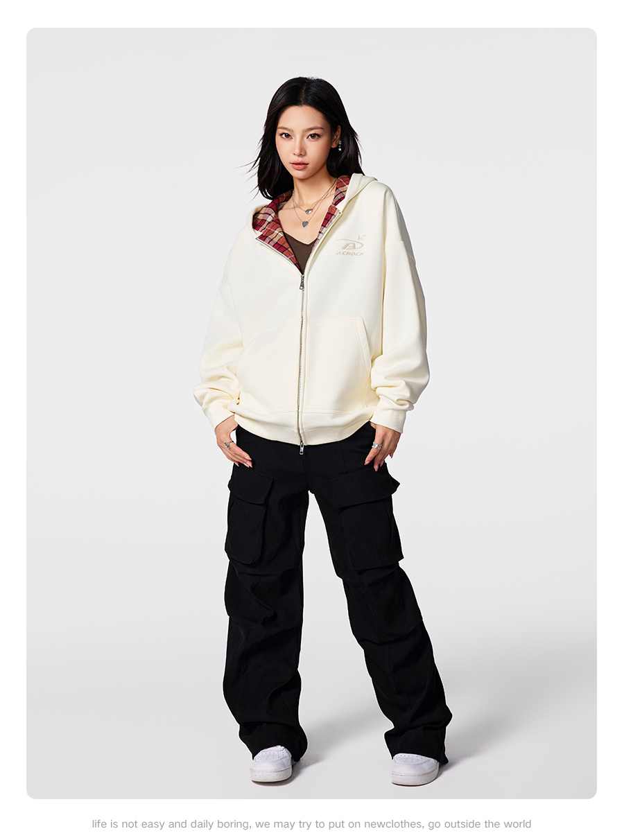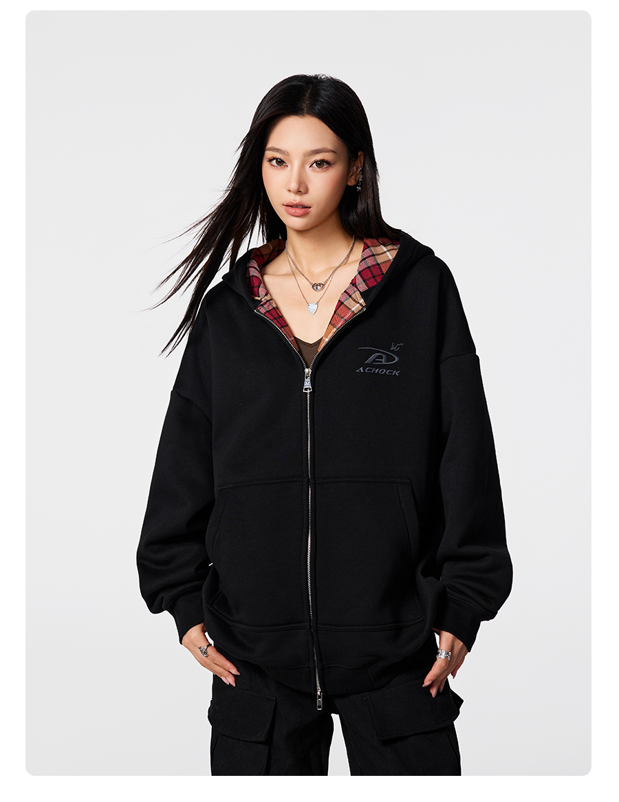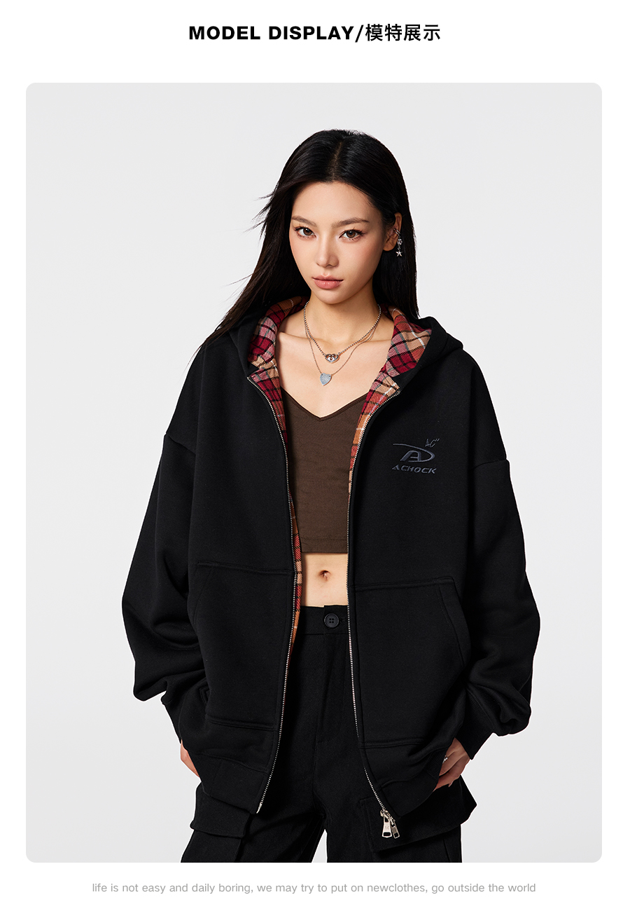 【Achock官方店】logo刺绣美式连帽卫衣男女潮牌高街重磅拉链开衫