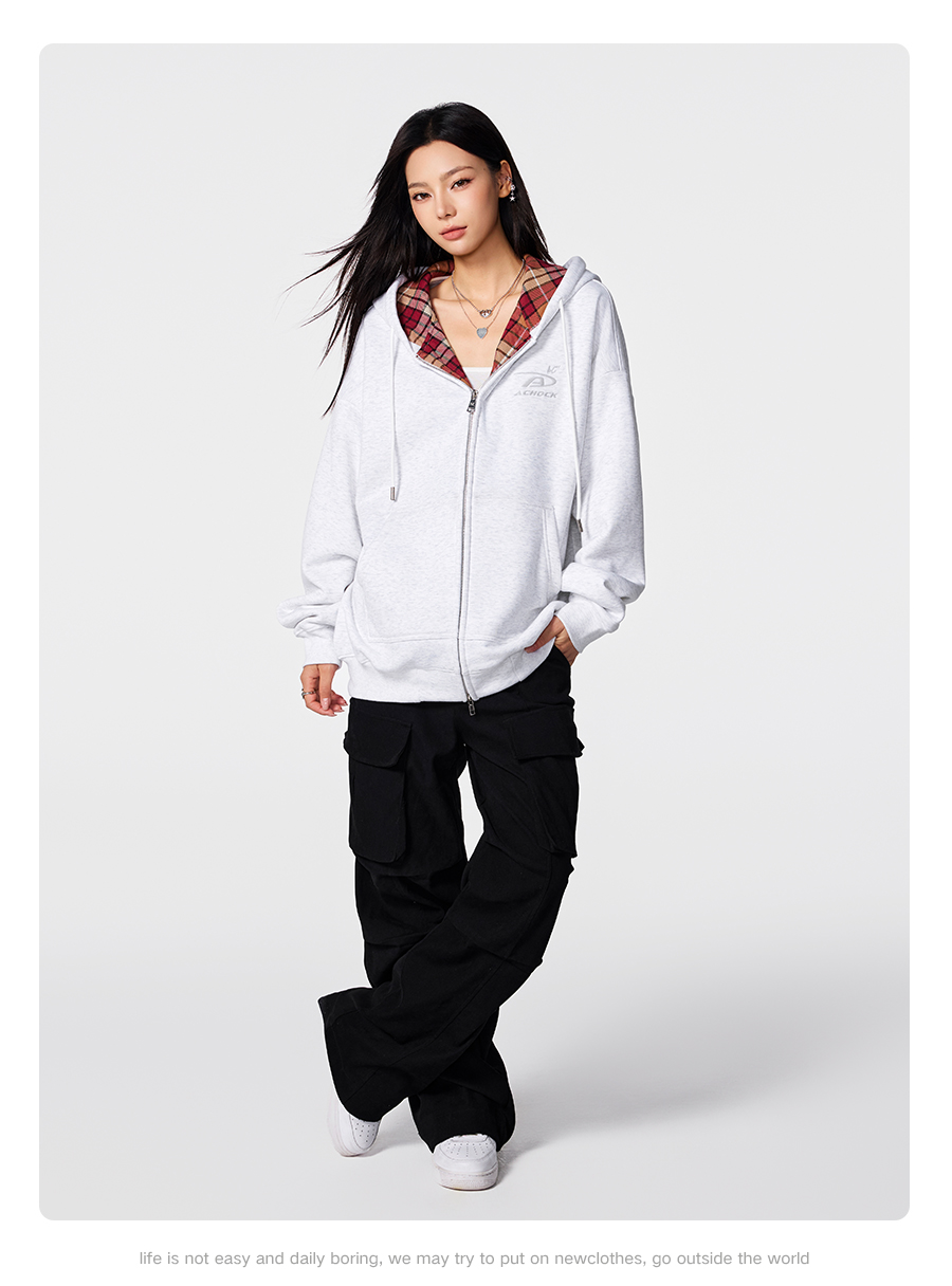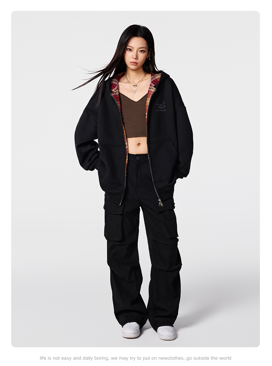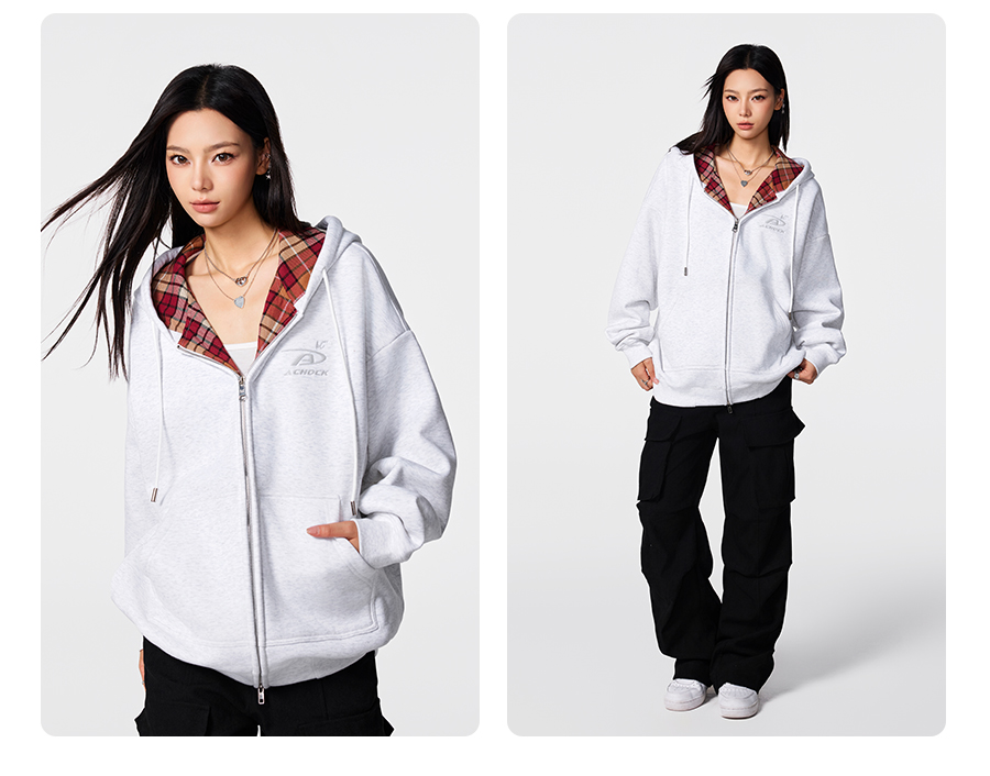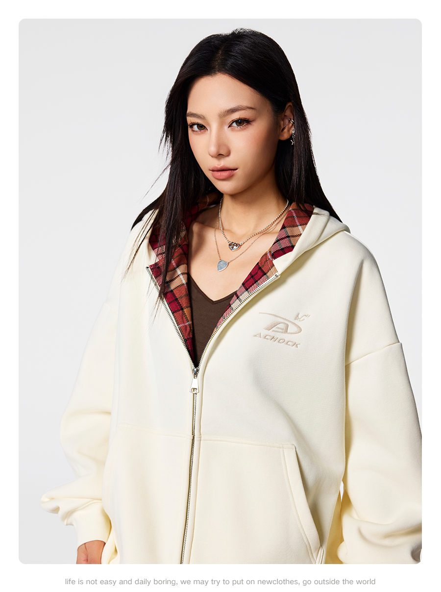 【Achock官方店】logo刺绣美式连帽卫衣男女潮牌高街重磅拉链开衫
