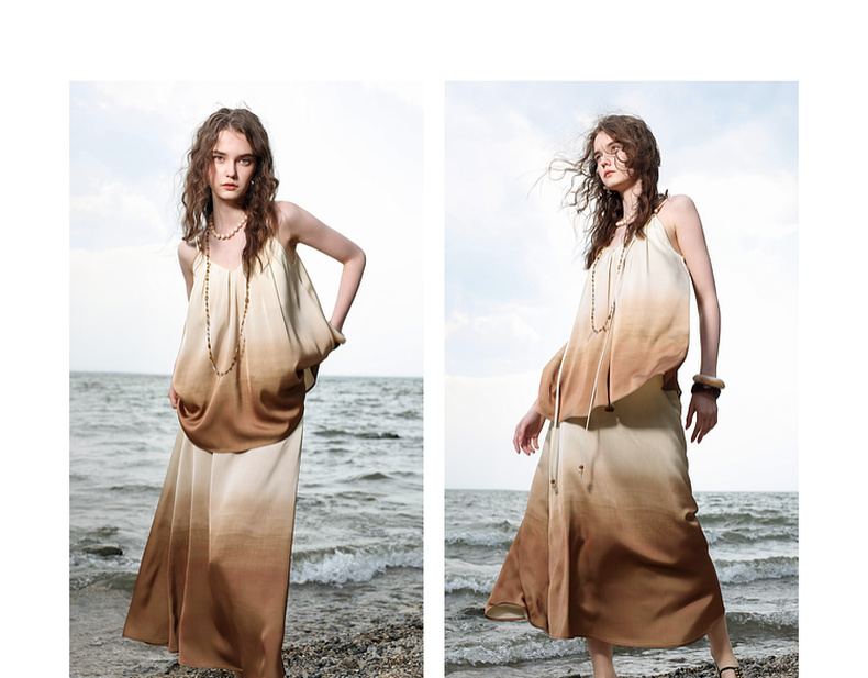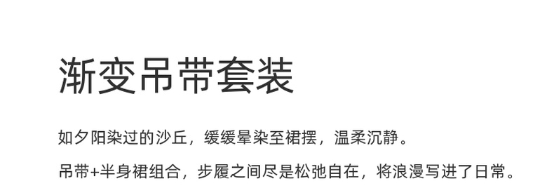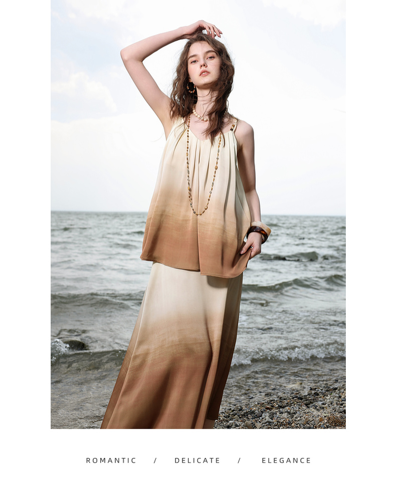 三彩2025夏季新款渐变吊带套装飘带上衣宽松A字裙两件套M
