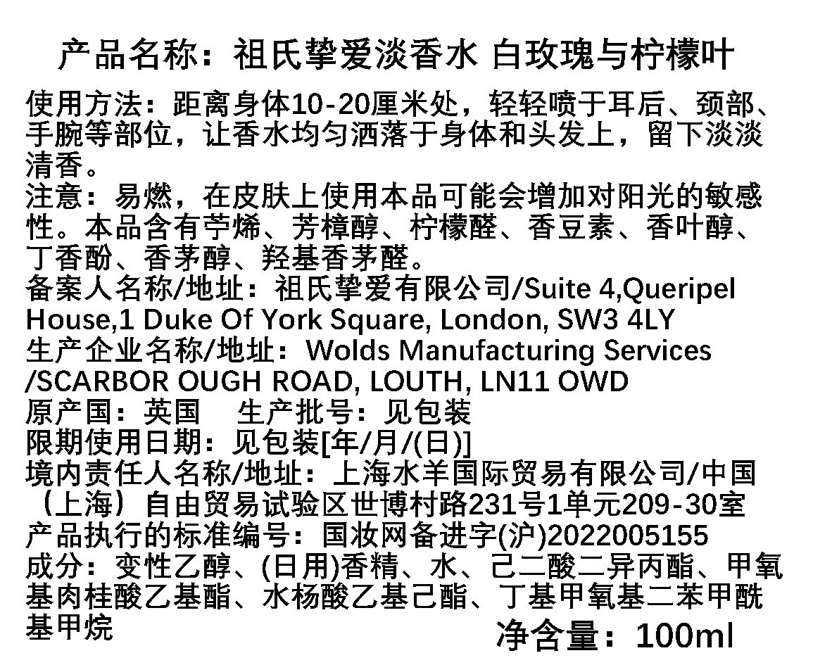 Jo Loves祖氏挚爱 WHITE ROSE&LEMON LEAVES/白玫瑰与柠檬叶香水