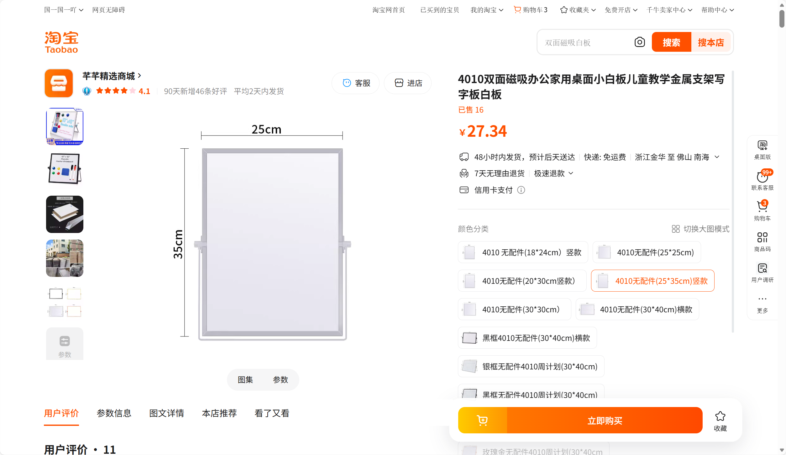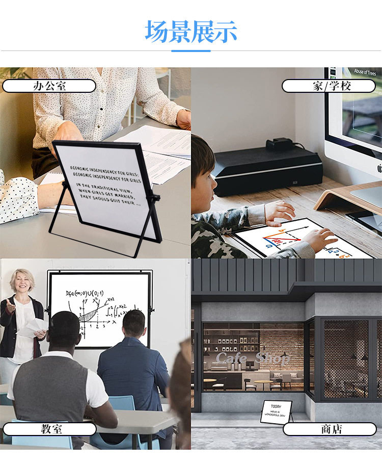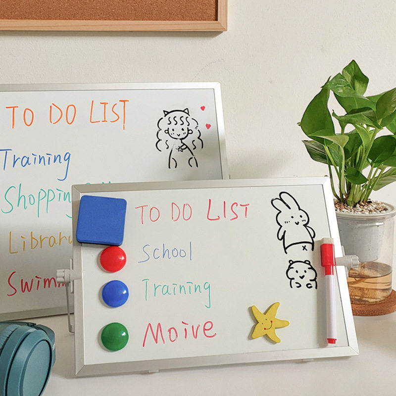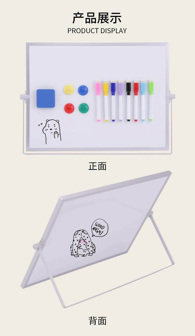 桌面双面磁吸办公家用白板 教学金属支架写字板 银色