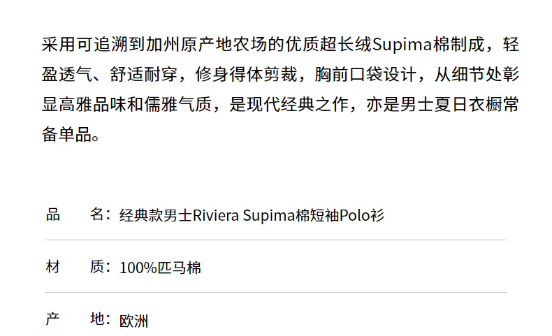 【邦德同款】SUNSPEL男士经典Supima棉Riviera Polo衫 Q75面料