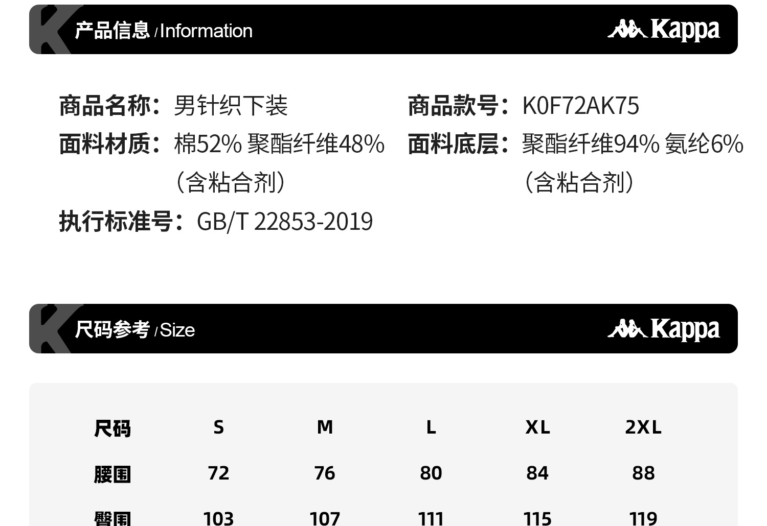 Kappa 运动裤男2025新款冬季休闲女针织束脚裤长裤子潮K0F72AK75