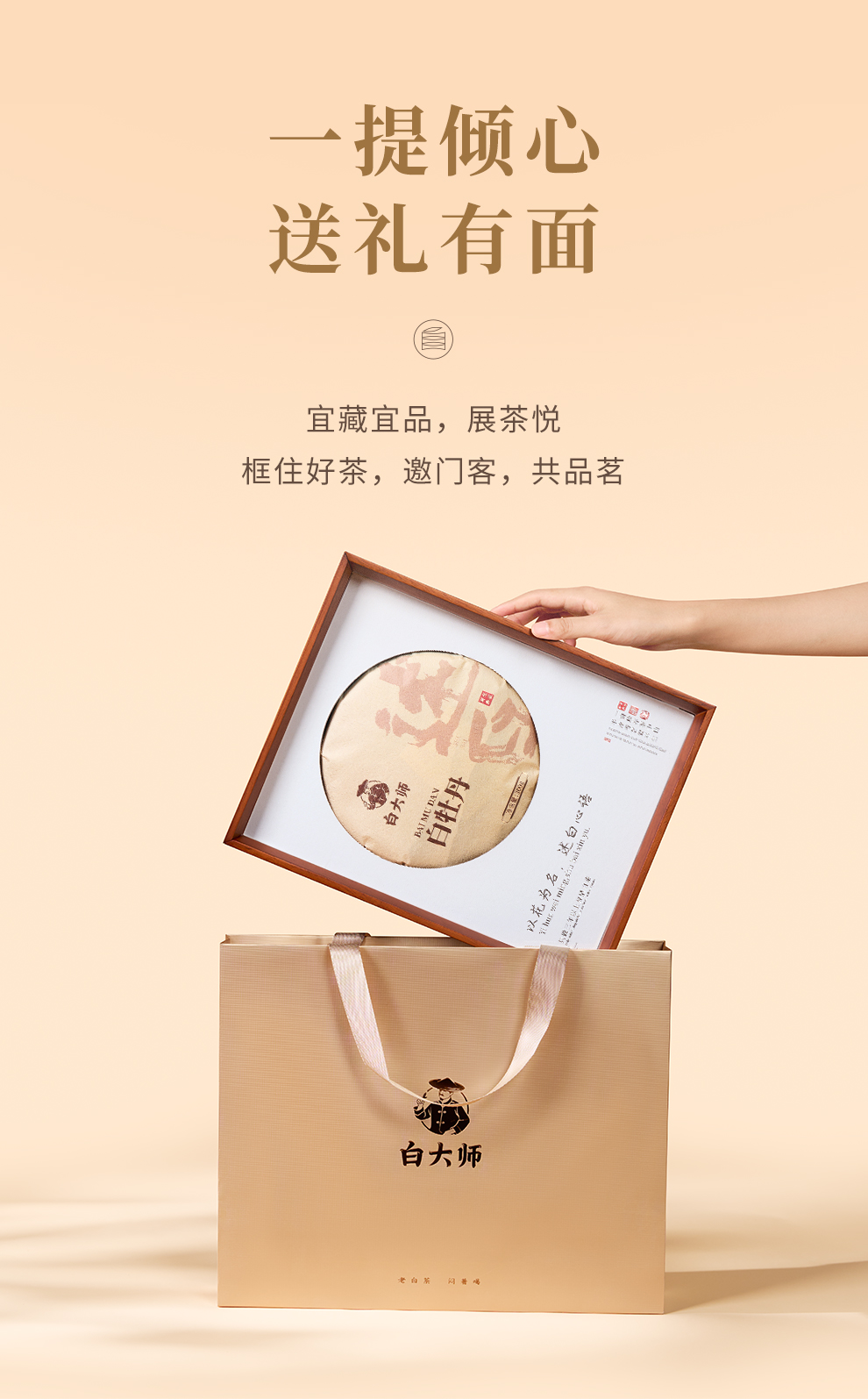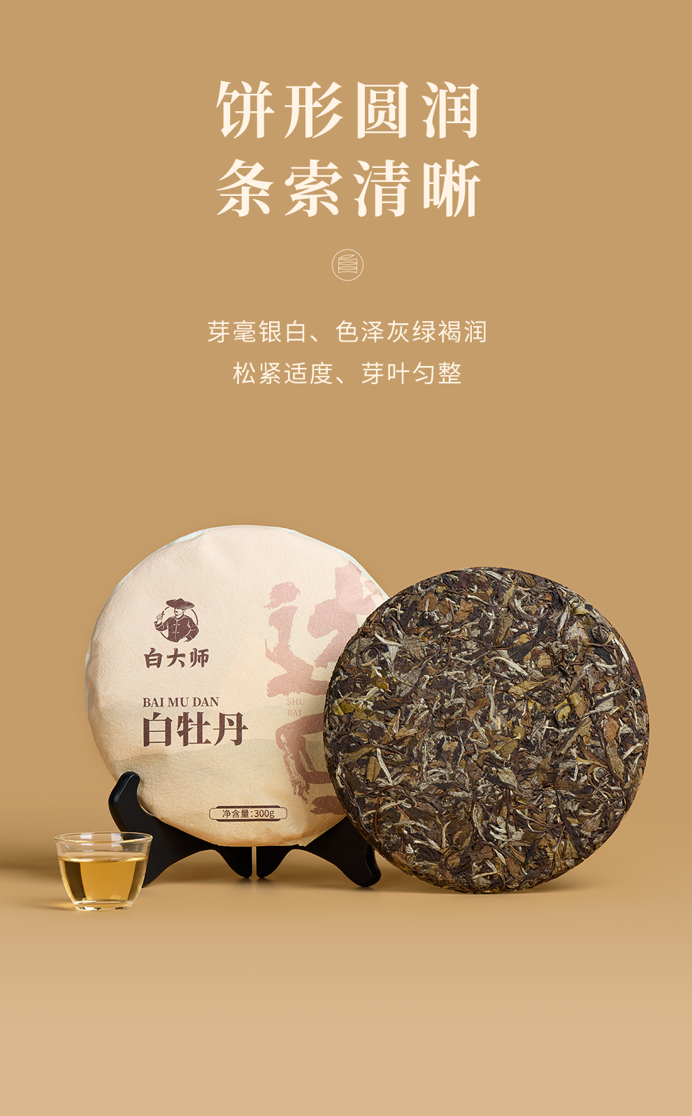 白大师福鼎白茶茶叶礼盒2018年白牡丹茶饼紧压白茶口粮茶叶300g