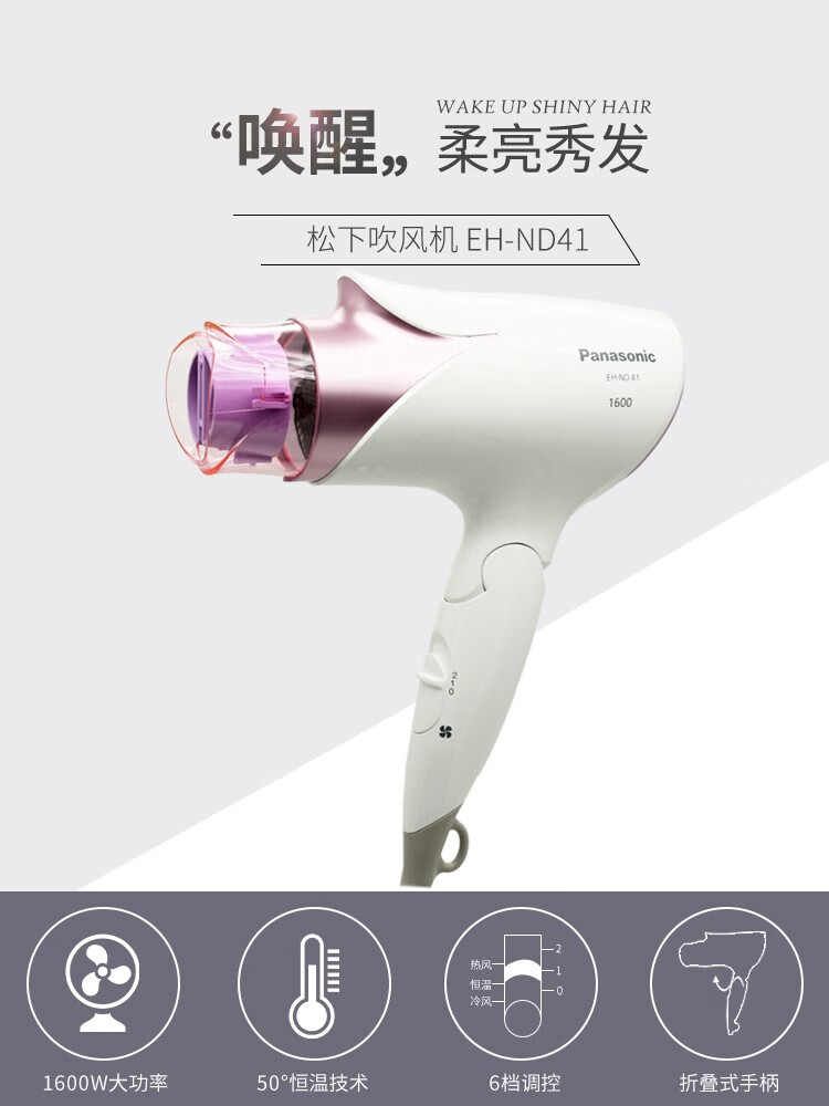 松下(Panasonic)松下电吹风机ND41/ND42家用恒温护发6档冷热风酒店折叠风筒1800W EH-ND42-P 1800W