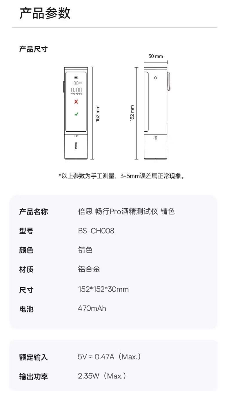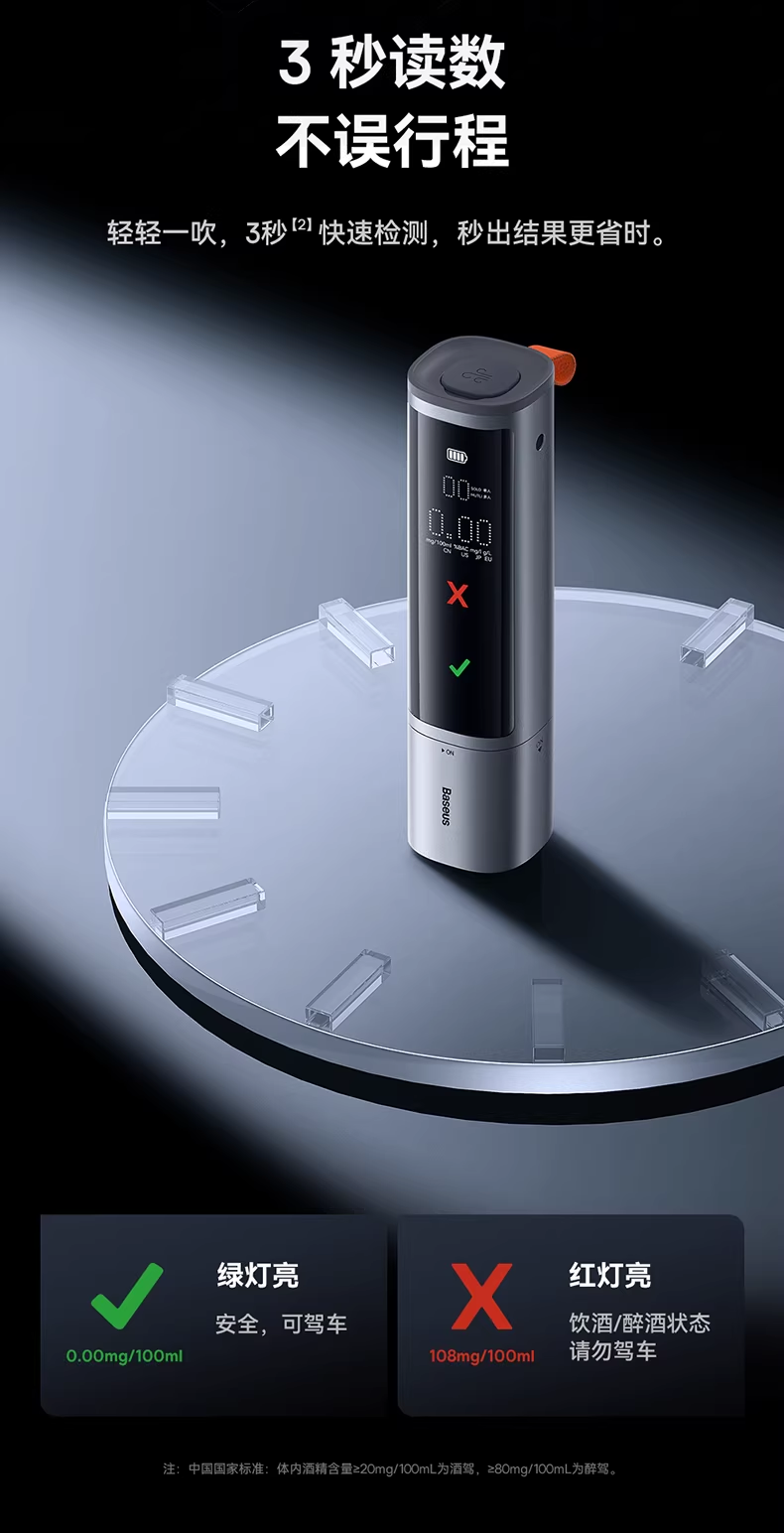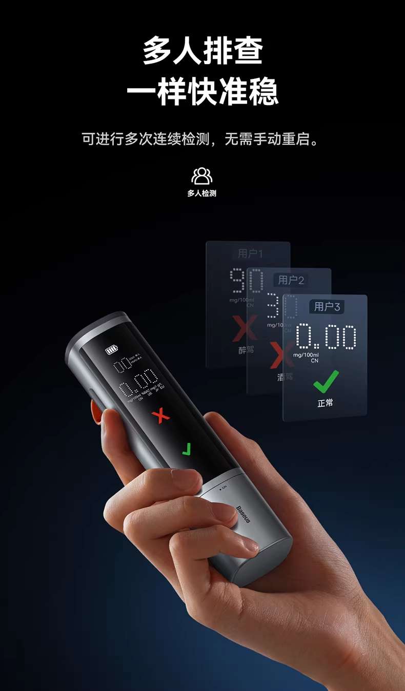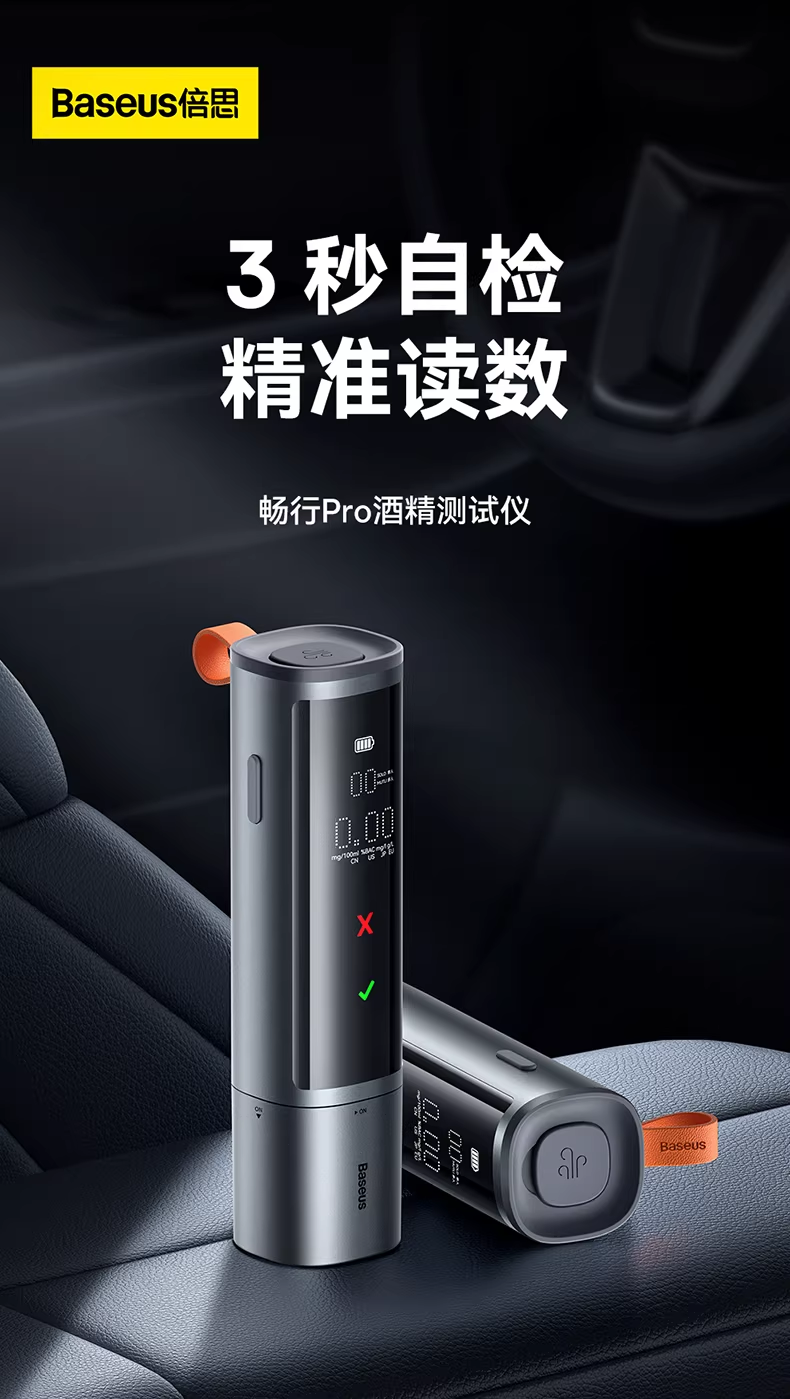【自用性价比】倍思 畅行Pro酒精检测仪 BS-CH008锖色 吹气式酒驾专用测量 高精度便携式交通查酒驾酒精