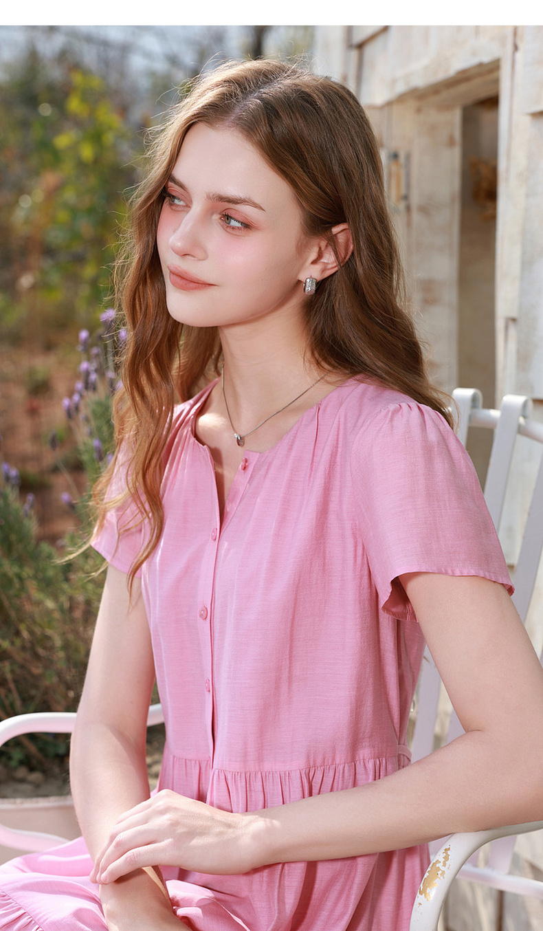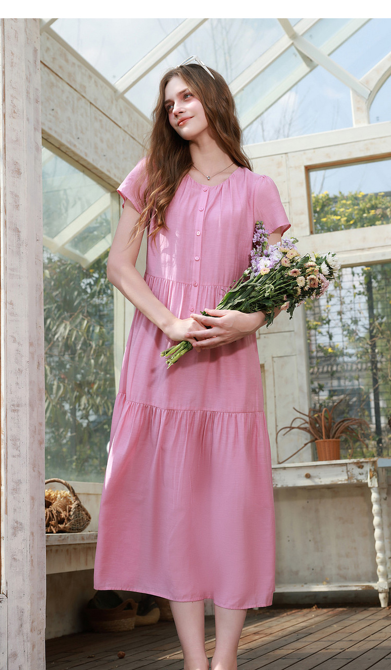 【醋酸】三彩2026夏季新款法式蛋糕裙荷叶袖宽松长裙M