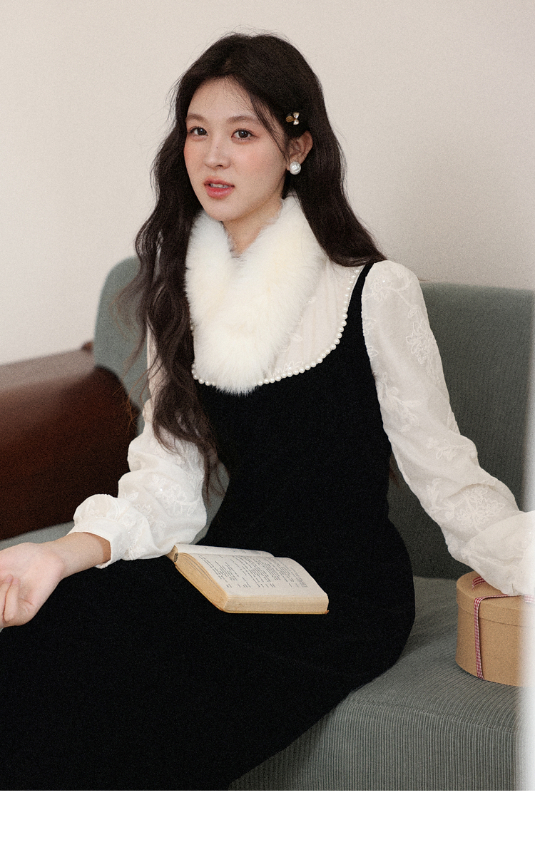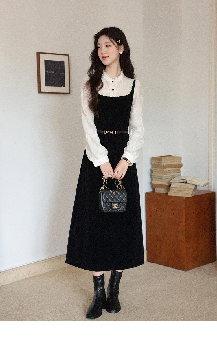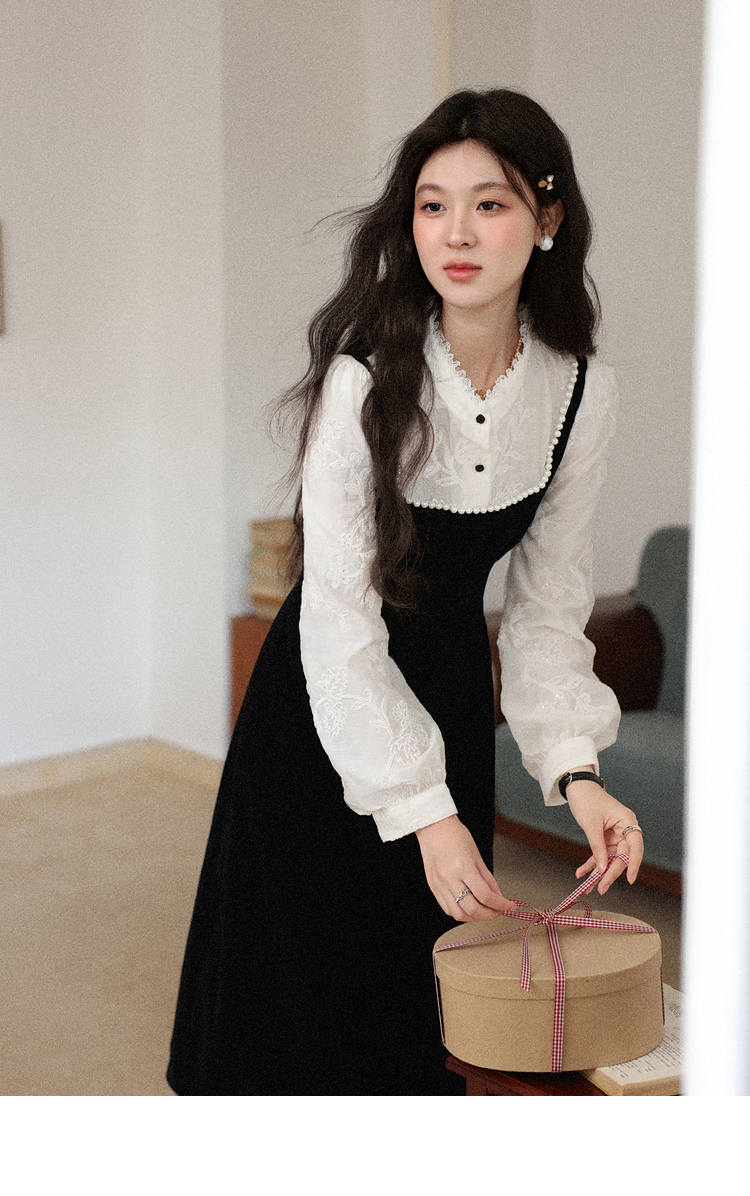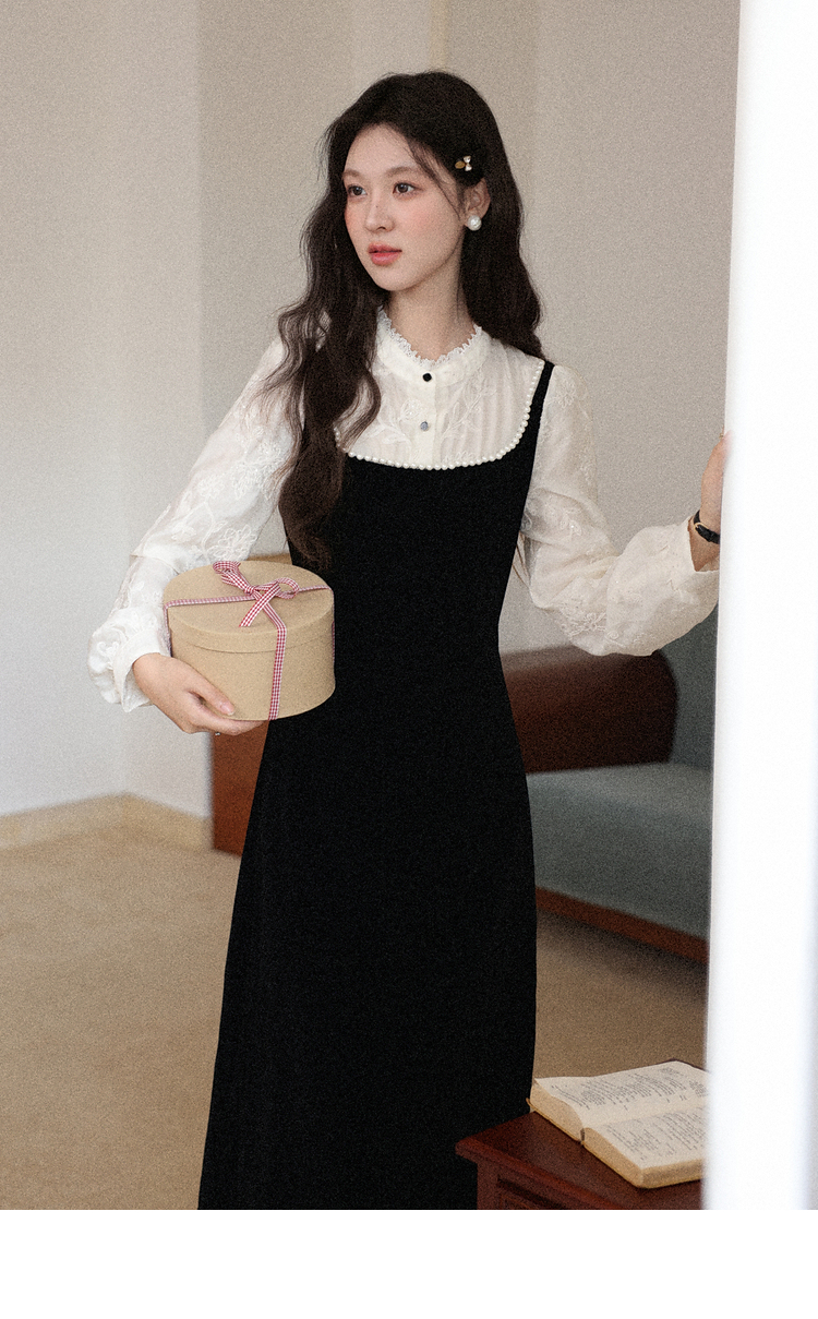 鹿向南「主题曲」法式千金感假两件设计感连衣裙女秋新款黑色长裙