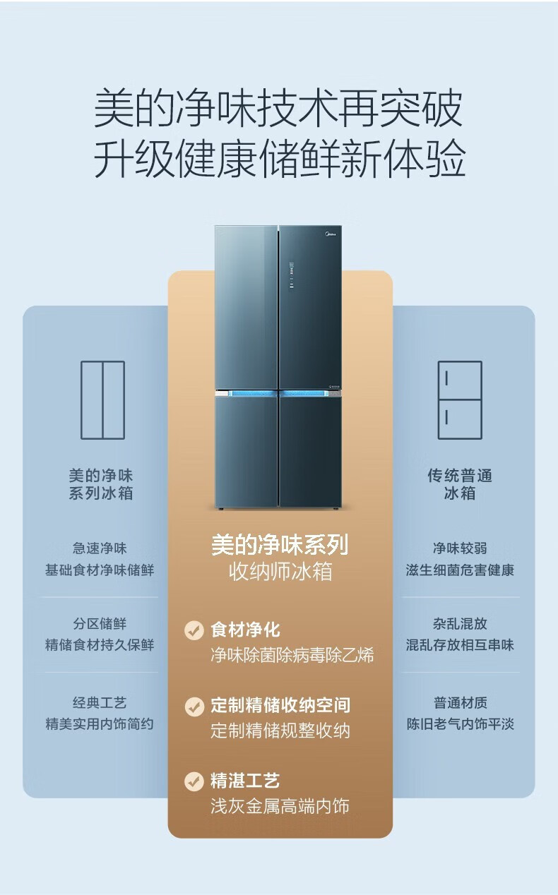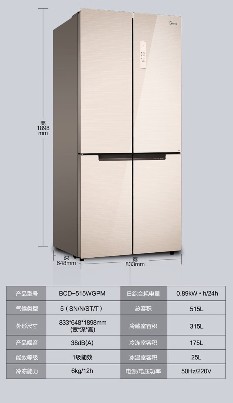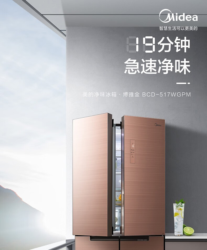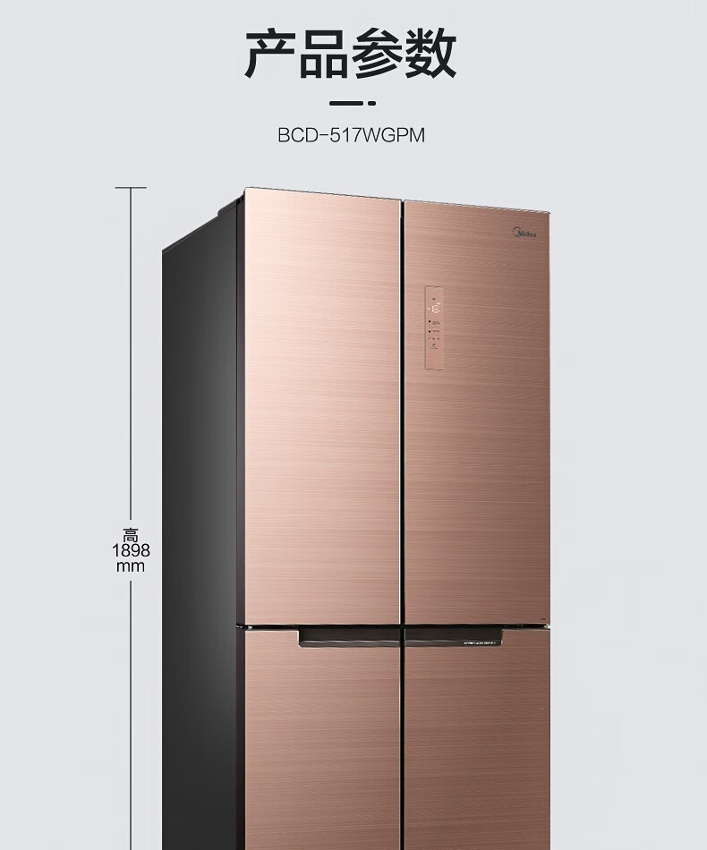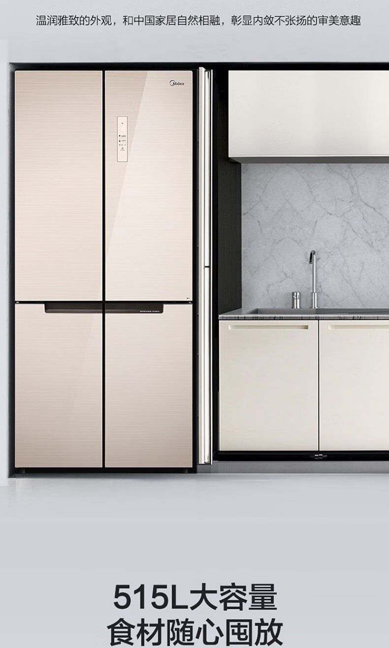 美的(Midea)515升517升十字对开门四开门风冷无霜一级能效双变频19分钟急速净味大容量超薄节能智能家用电冰箱 【收纳师升级】BCD-515WSGPZMA(E)