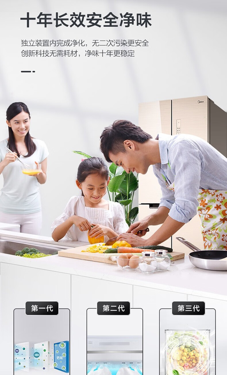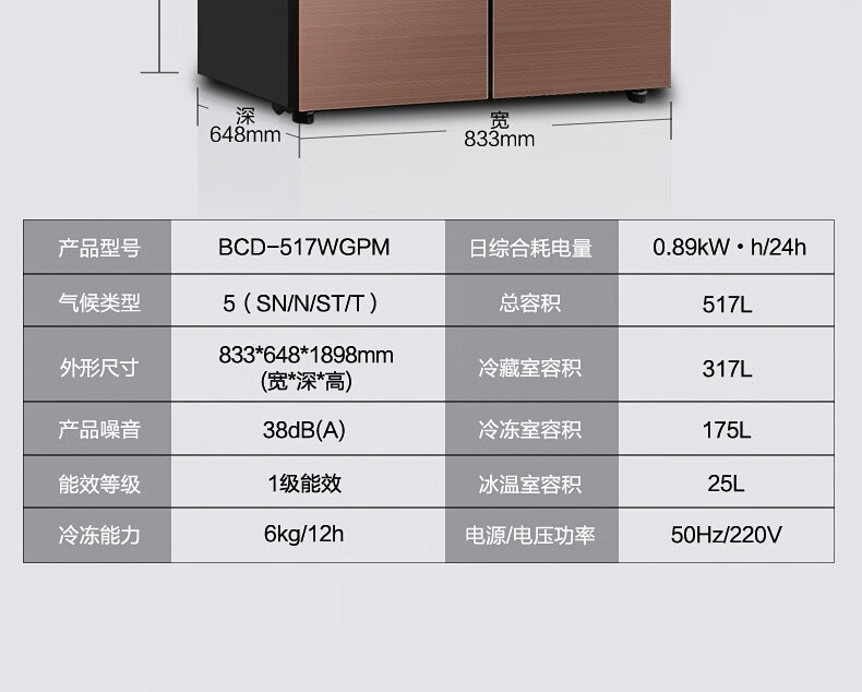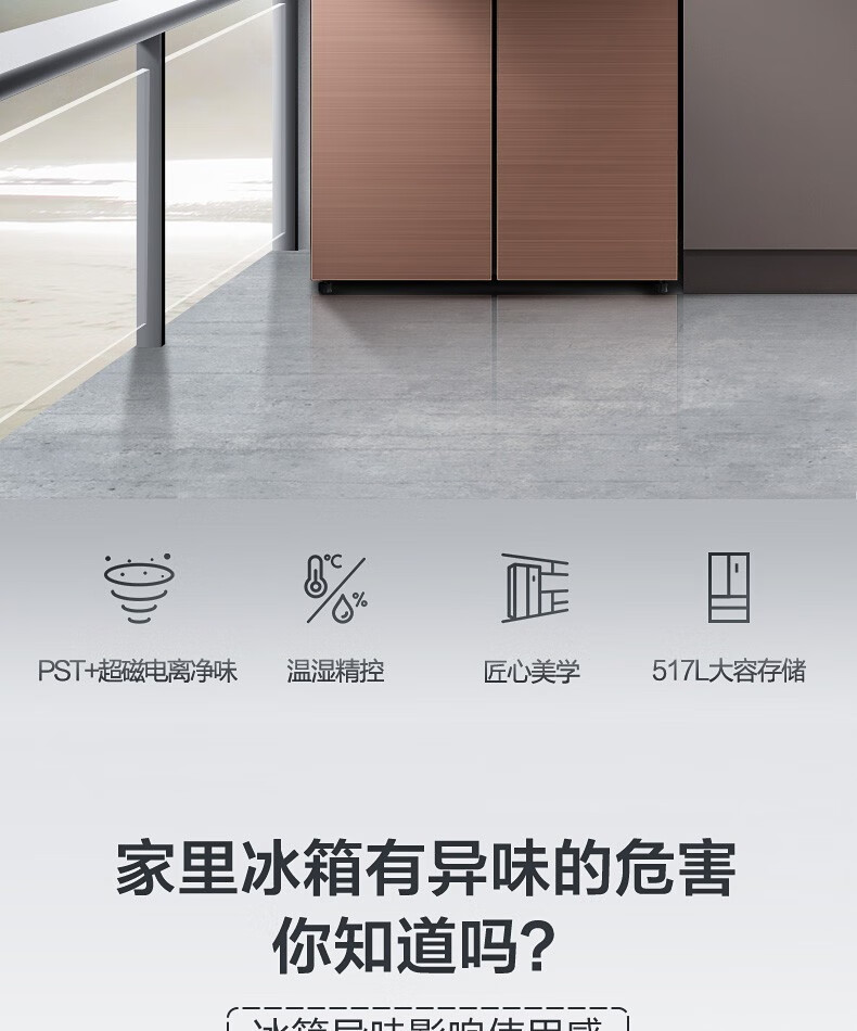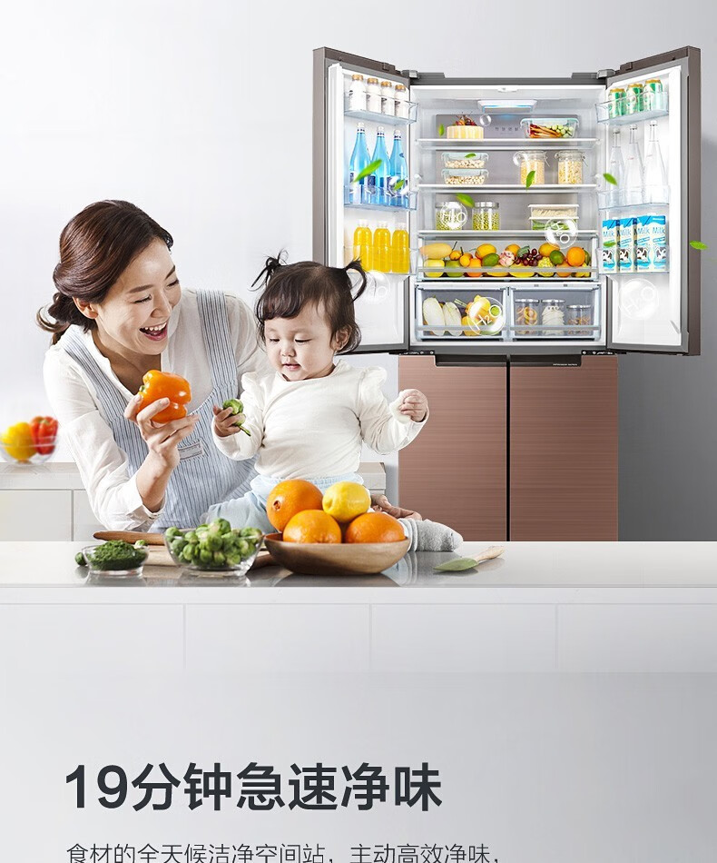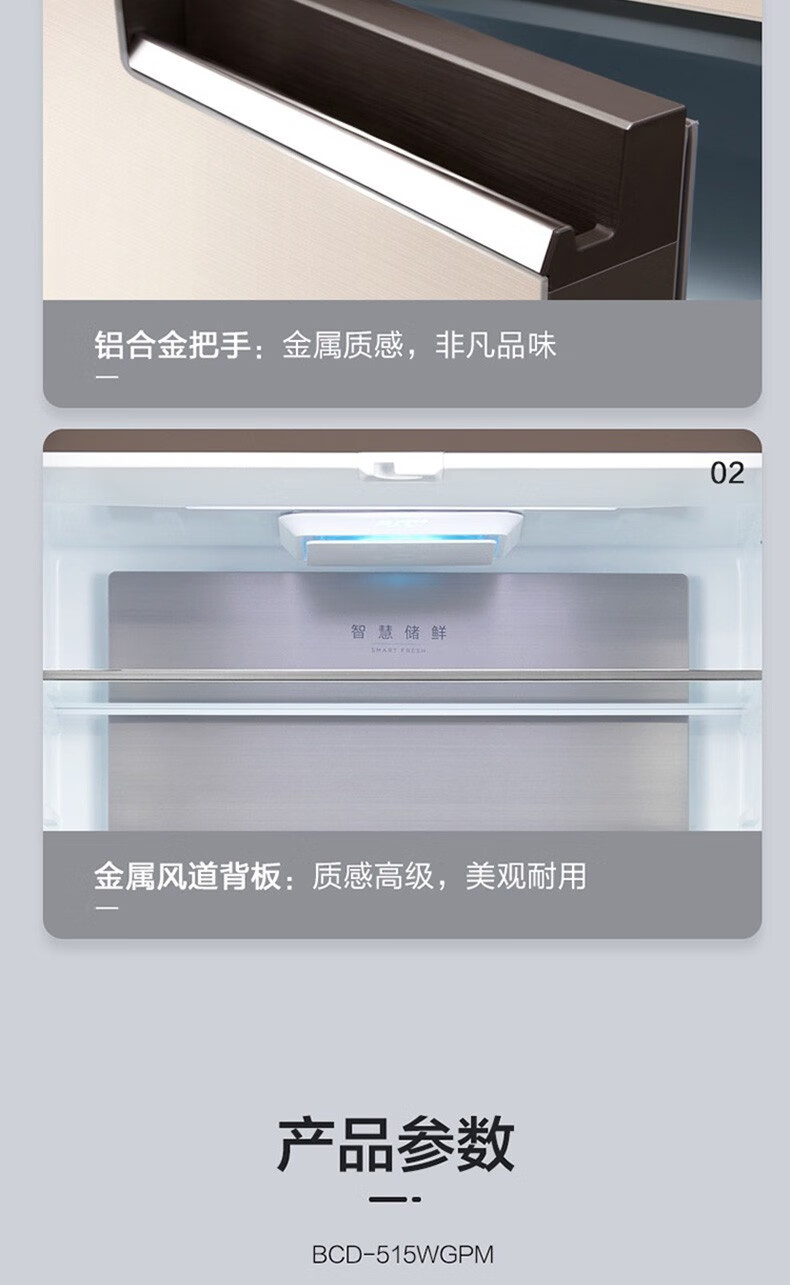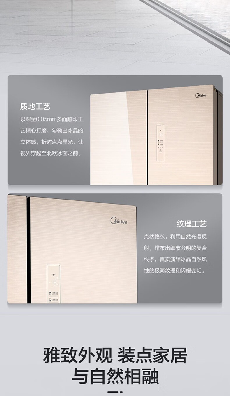 美的(Midea)515升517升十字对开门四开门风冷无霜一级能效双变频19分钟急速净味大容量超薄节能智能家用电冰箱 【收纳师升级】BCD-515WSGPZMA(E)