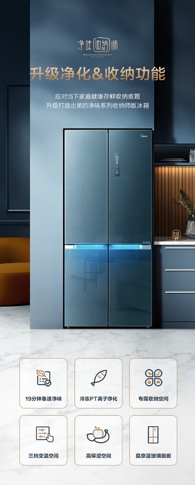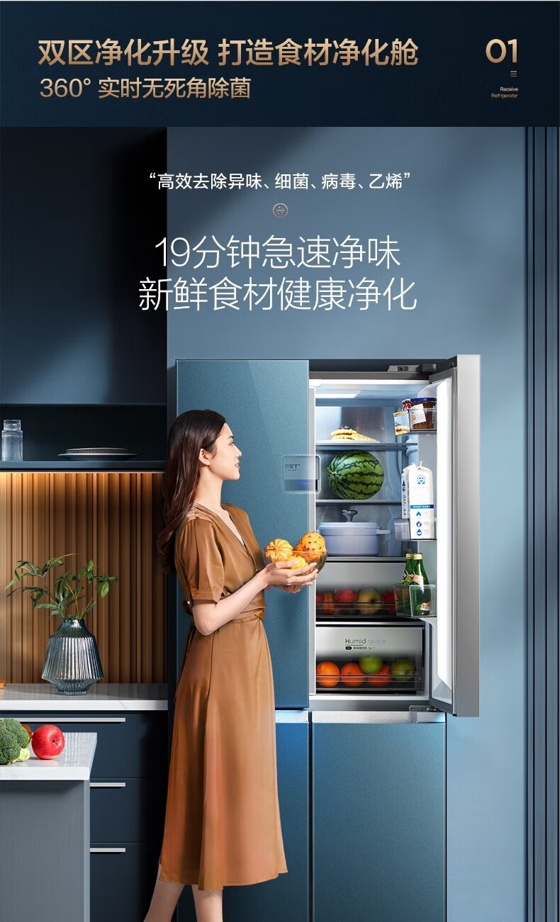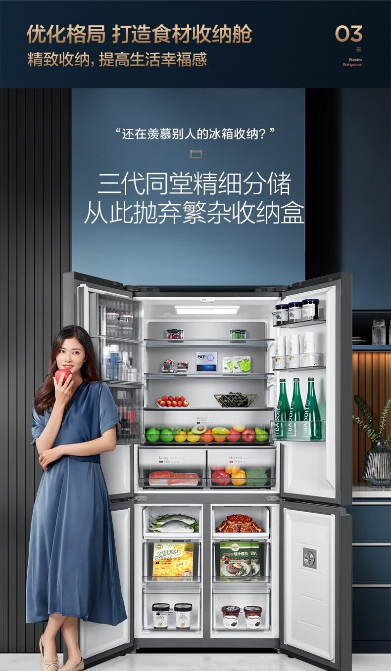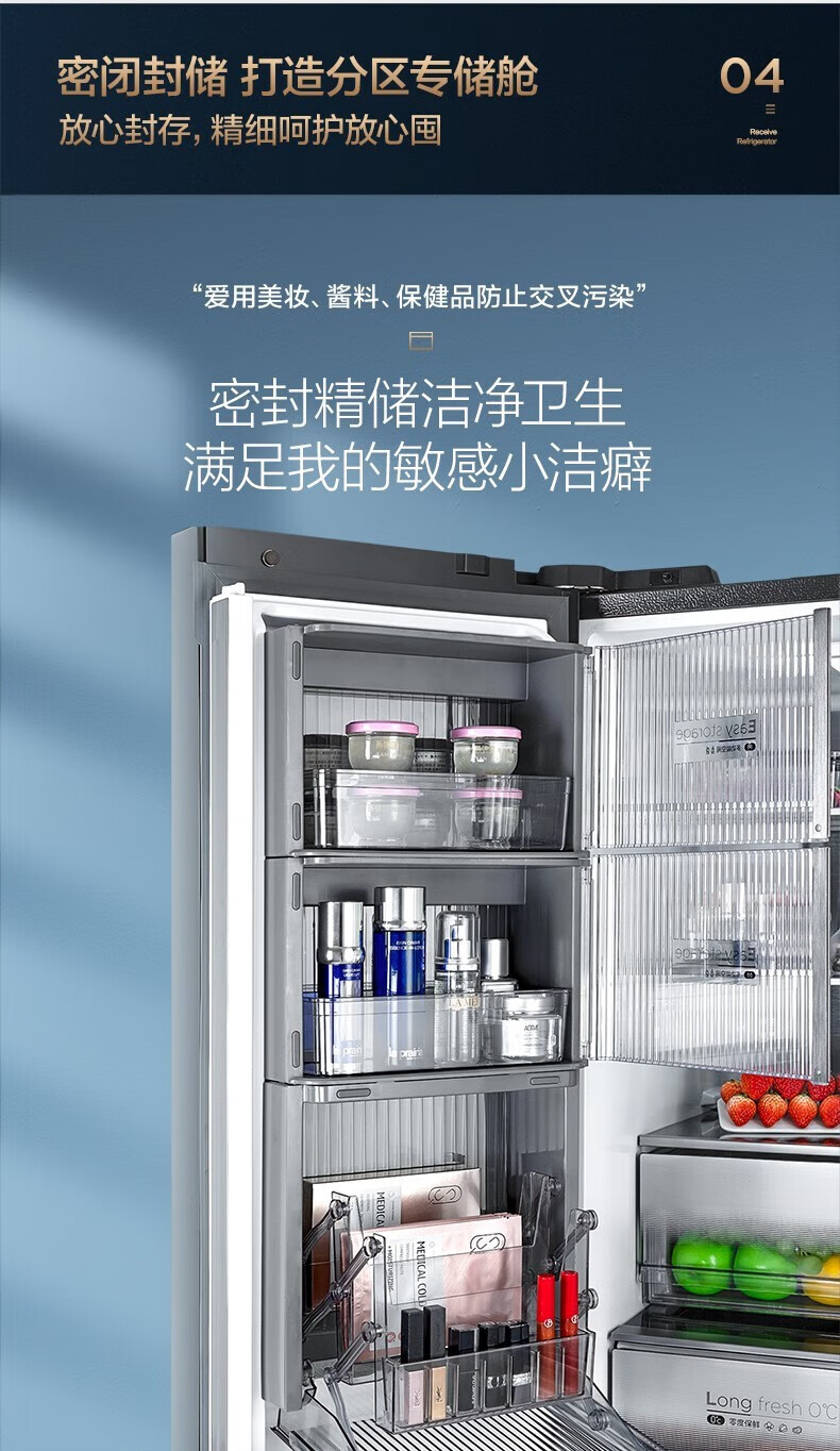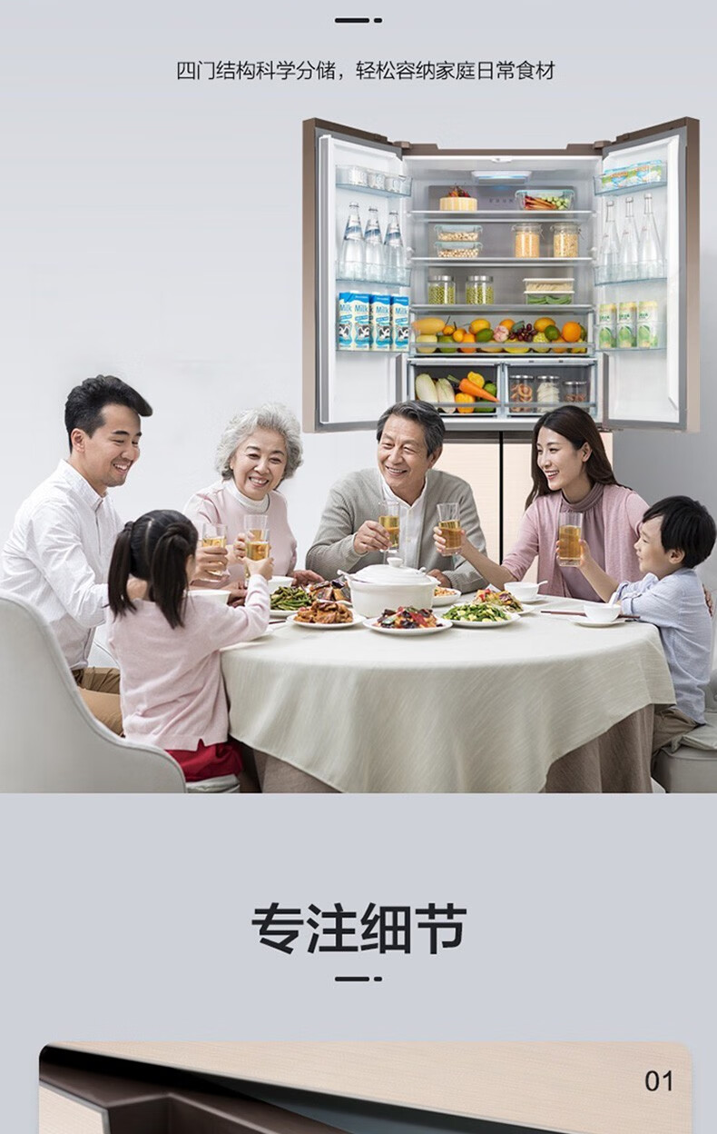 美的(Midea)515升517升十字对开门四开门风冷无霜一级能效双变频19分钟急速净味大容量超薄节能智能家用电冰箱 【收纳师升级】BCD-515WSGPZMA(E)