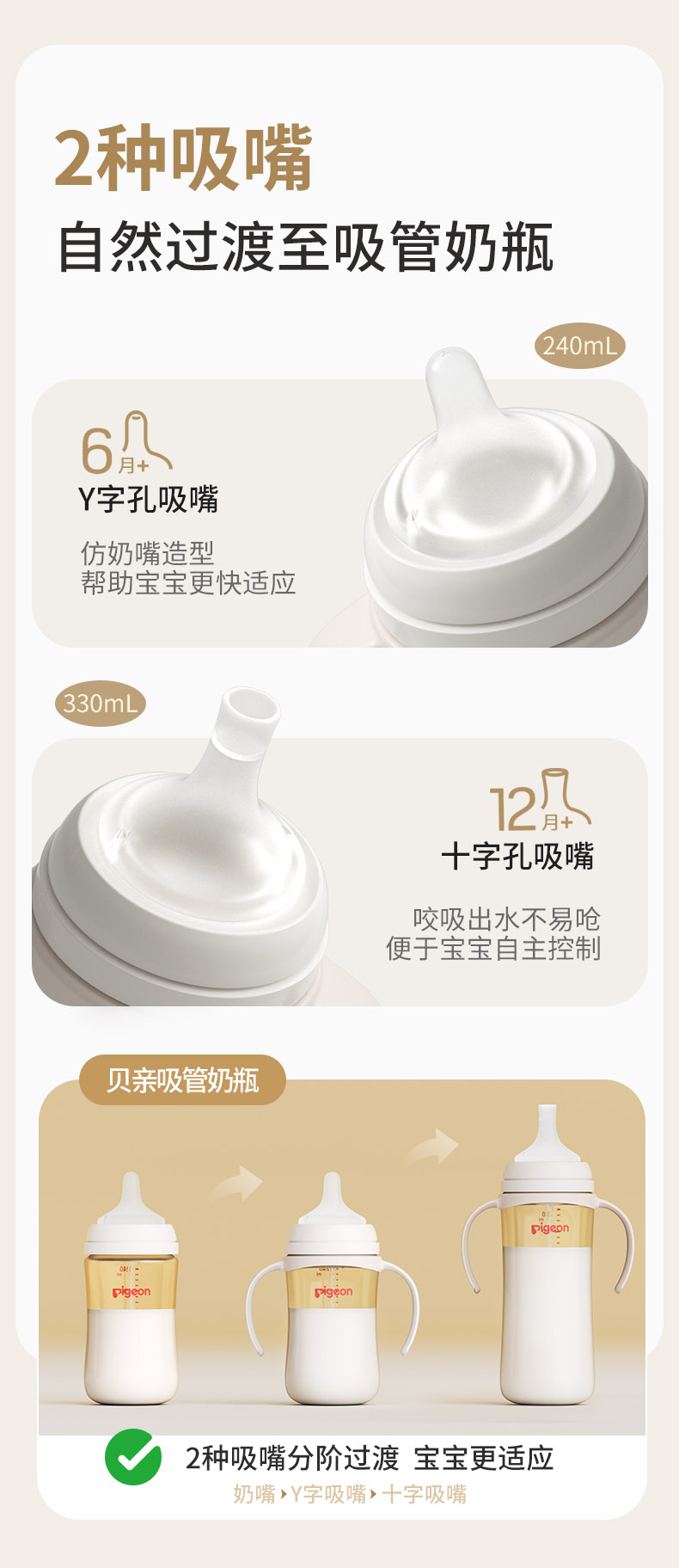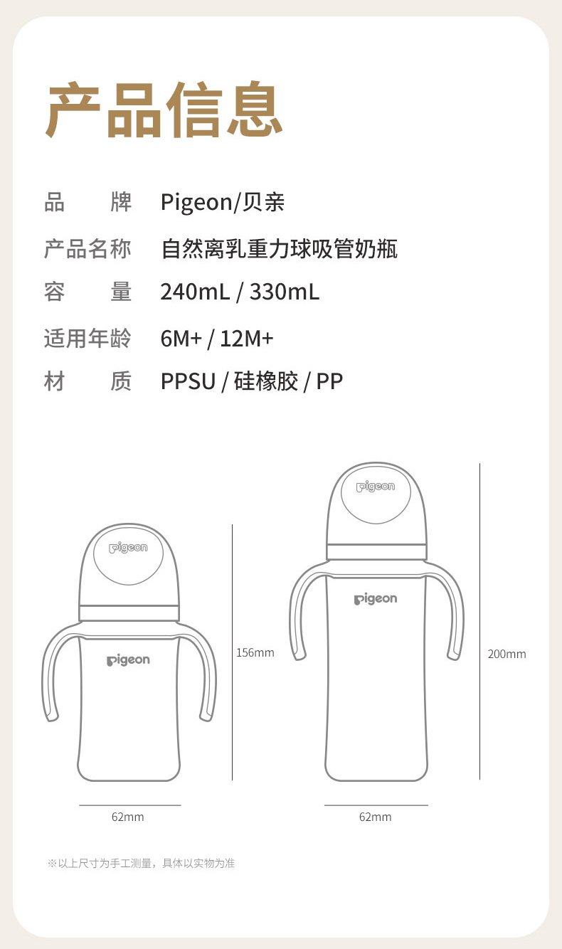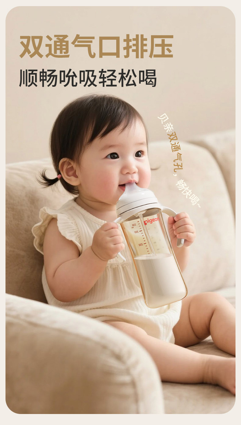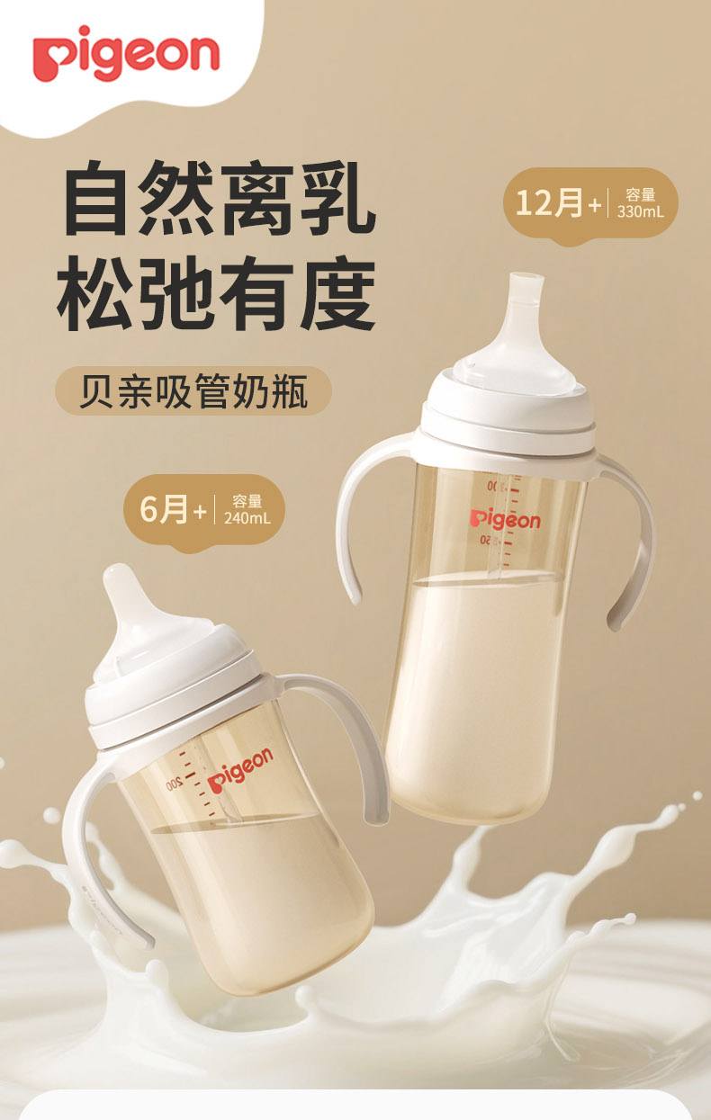 【官方自营】PIGEON/贝亲自然离乳重力球吸管PPSU防胀气防呛防胀气防呛奶瓶