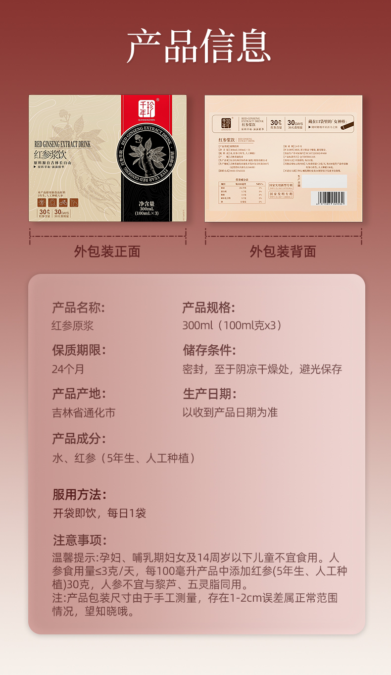 千年珍 红参浆饮 300ml(100ml*3)