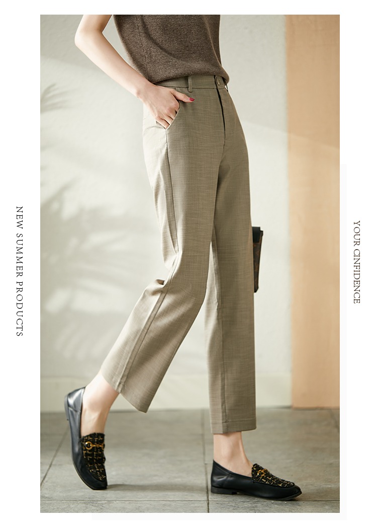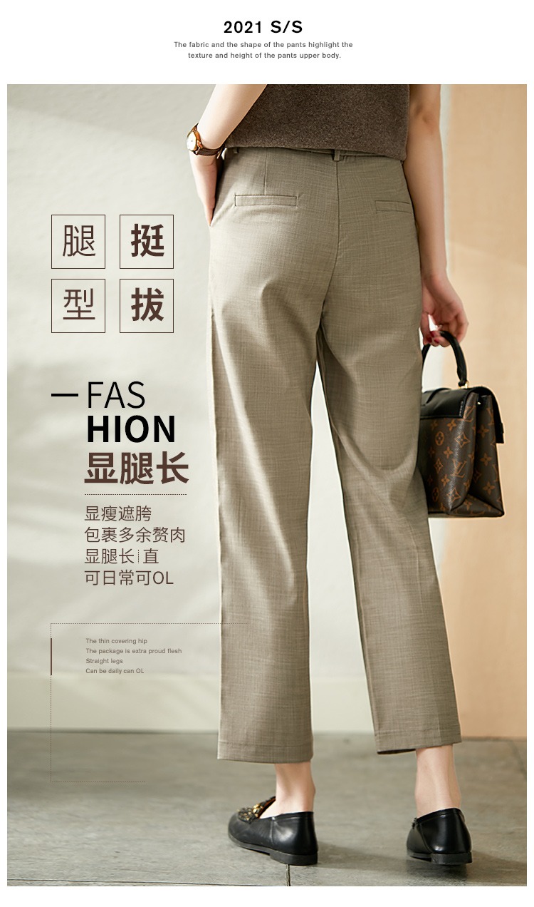 YX【现货7天】高腰直筒休闲裤女2024夏季新款九分裤韩版设计感显瘦宽松裤子