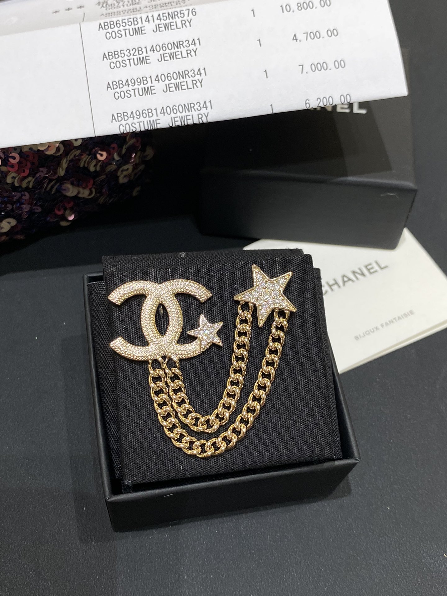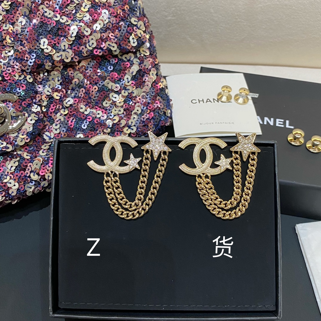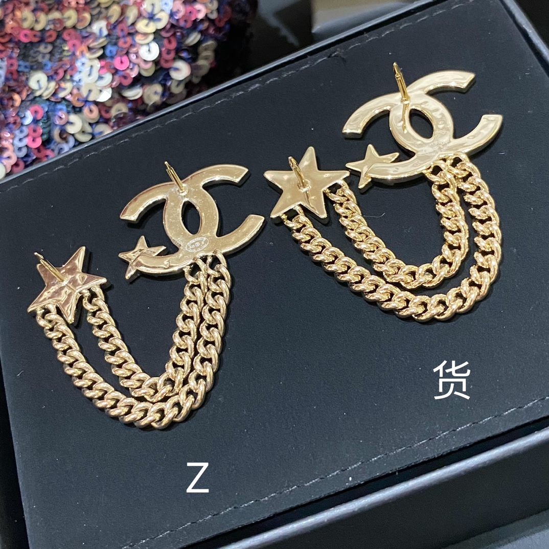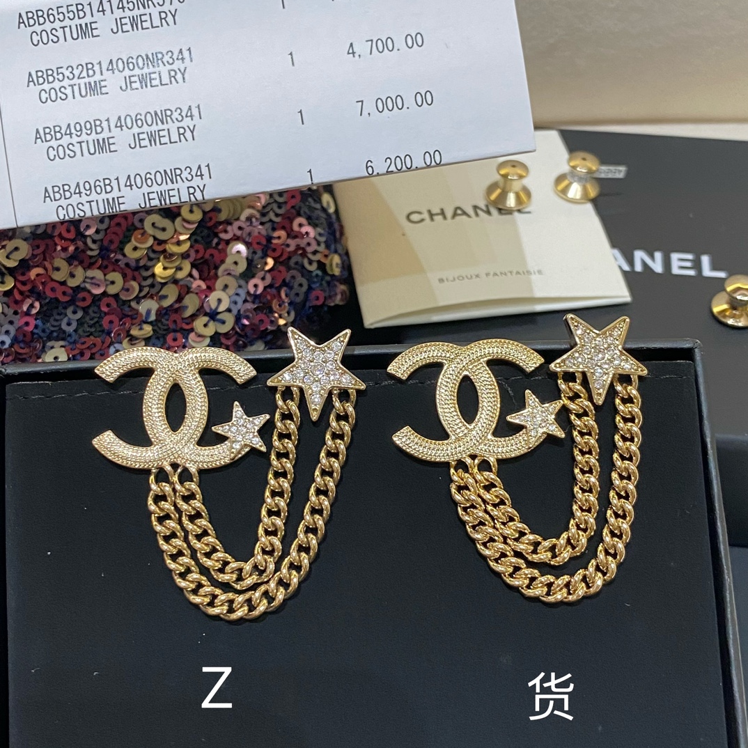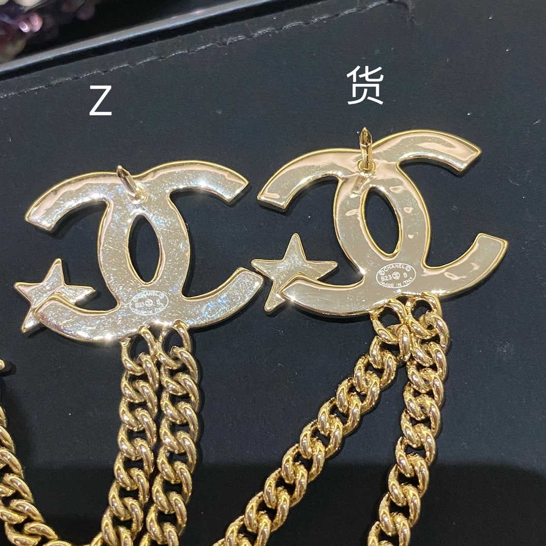 Cha*l 小香 23B金色纹理双链条星星胸针
