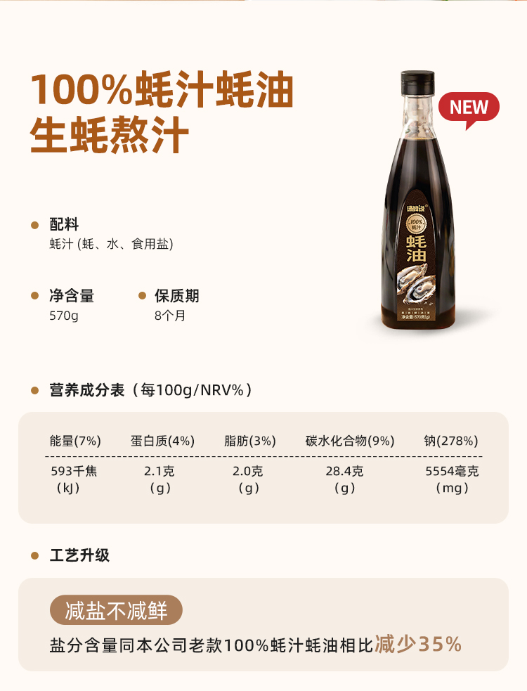 汤鲜说100%蚝汁蚝油少盐守护健康美味百搭