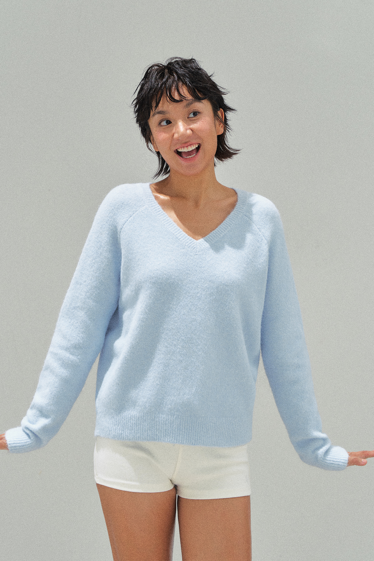 Ariseism 美式复古软糯v领毛衣女秋季新款修身上衣
