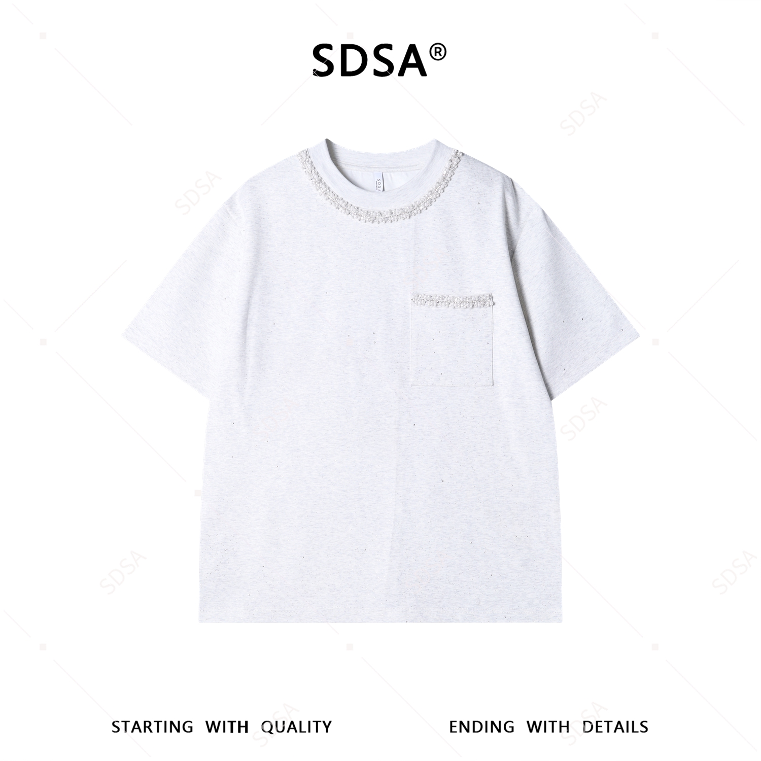 SDSA男装2026新款高贵轻奢简约满天星镶珠子设计圆领短袖T恤百搭