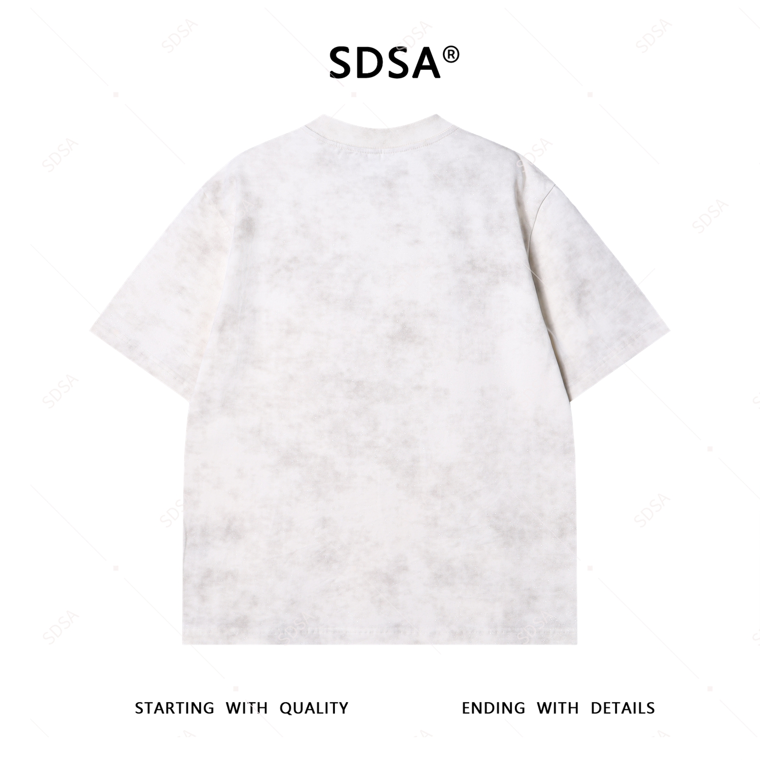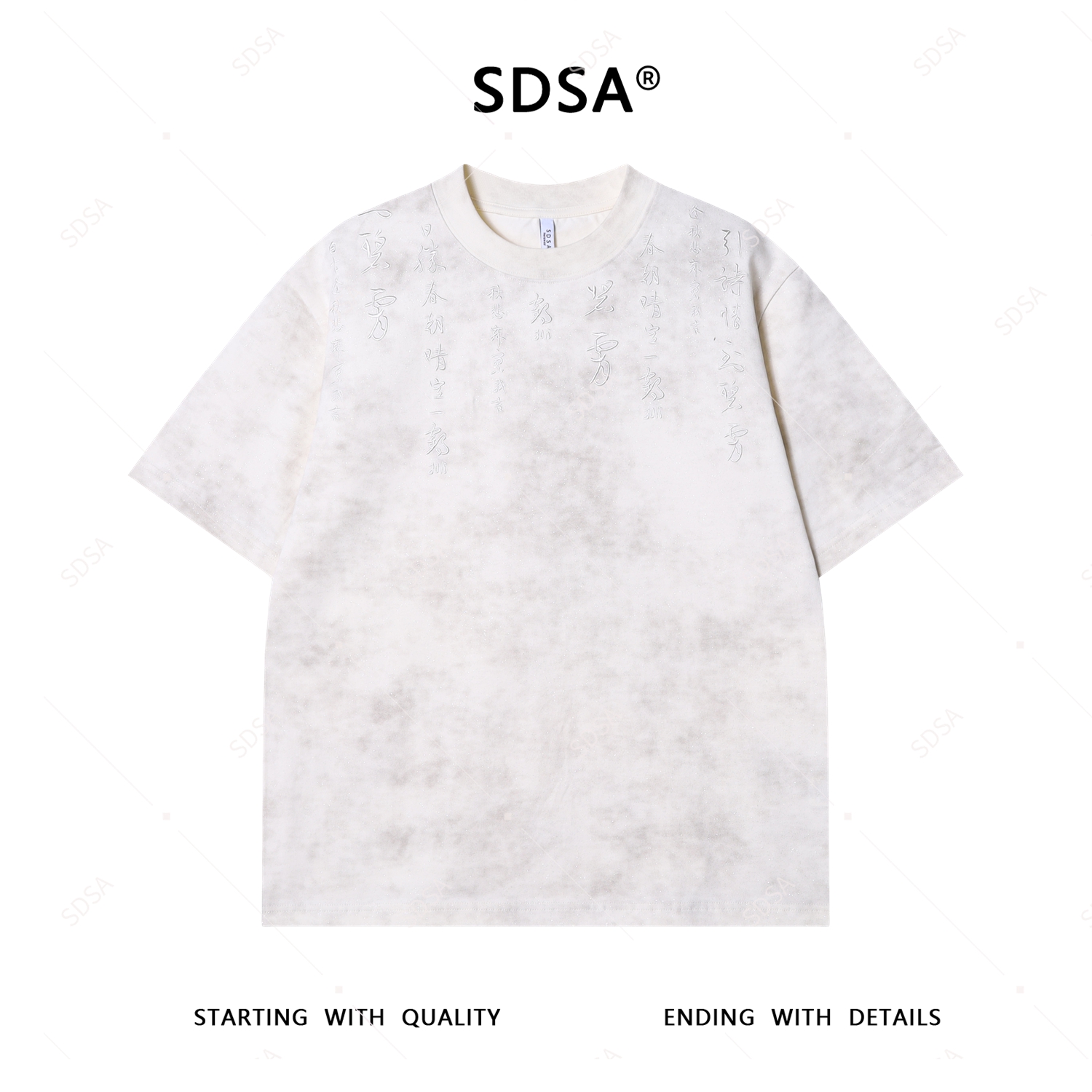 T3747夏季高级感新款男士扎染文字刺绣短袖T恤简约百搭圆领宽松上衣