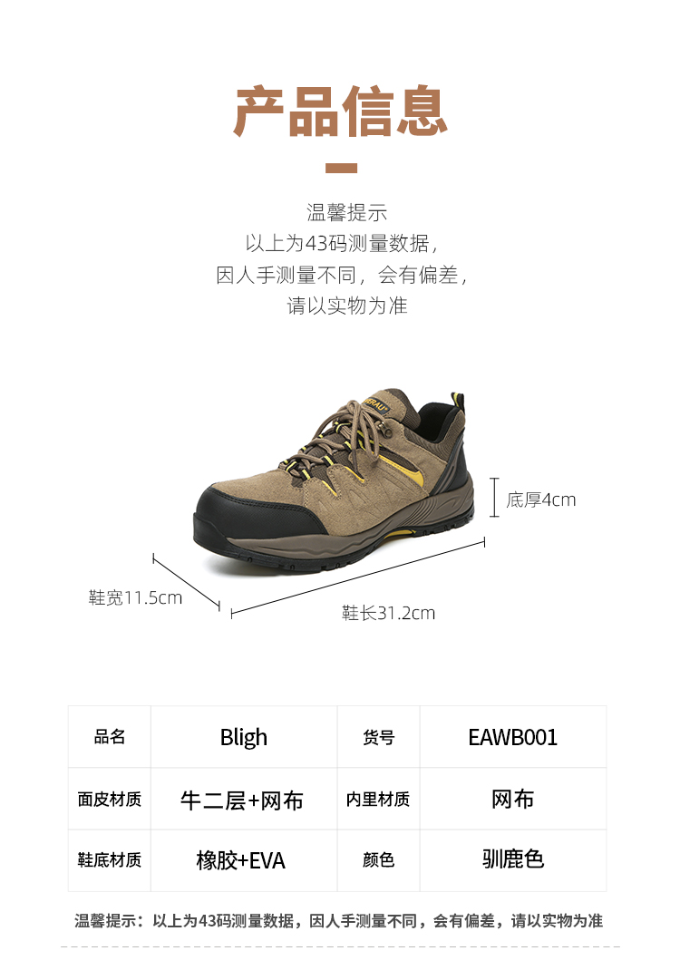 【澳洲品牌】EVERAU户外活力系带双层复合防滑复古户外鞋登山鞋EAWB001