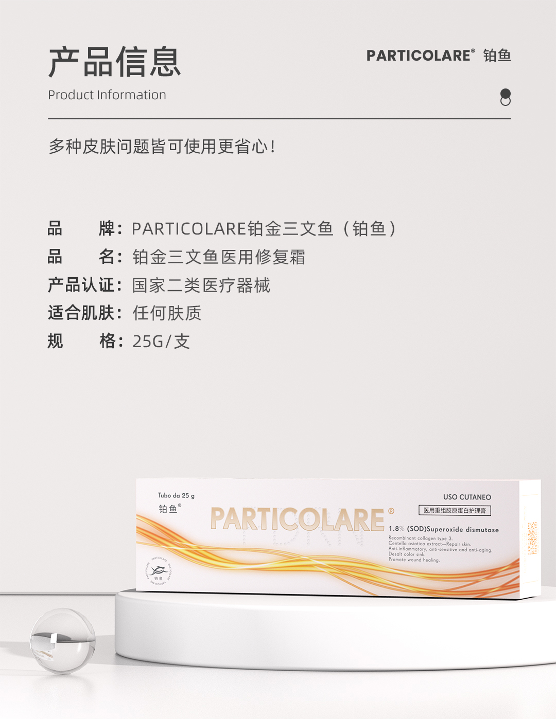 铂鱼铂金三文鱼医用修复膏重组胶原蛋白护理膏创面修复愈合 正品防伪可查