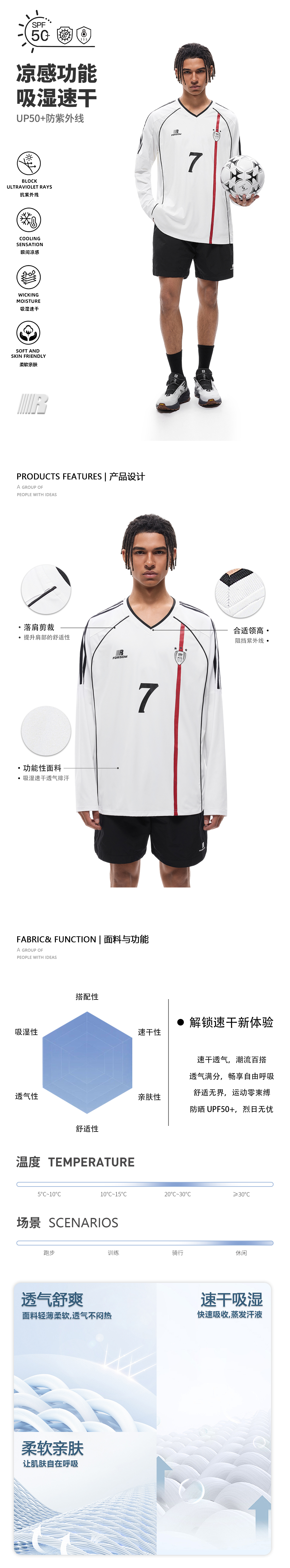 【178元任选3件】FDR官方店 织带V领速干长袖t恤男女春夏季美式凉感运动上衣球衣
