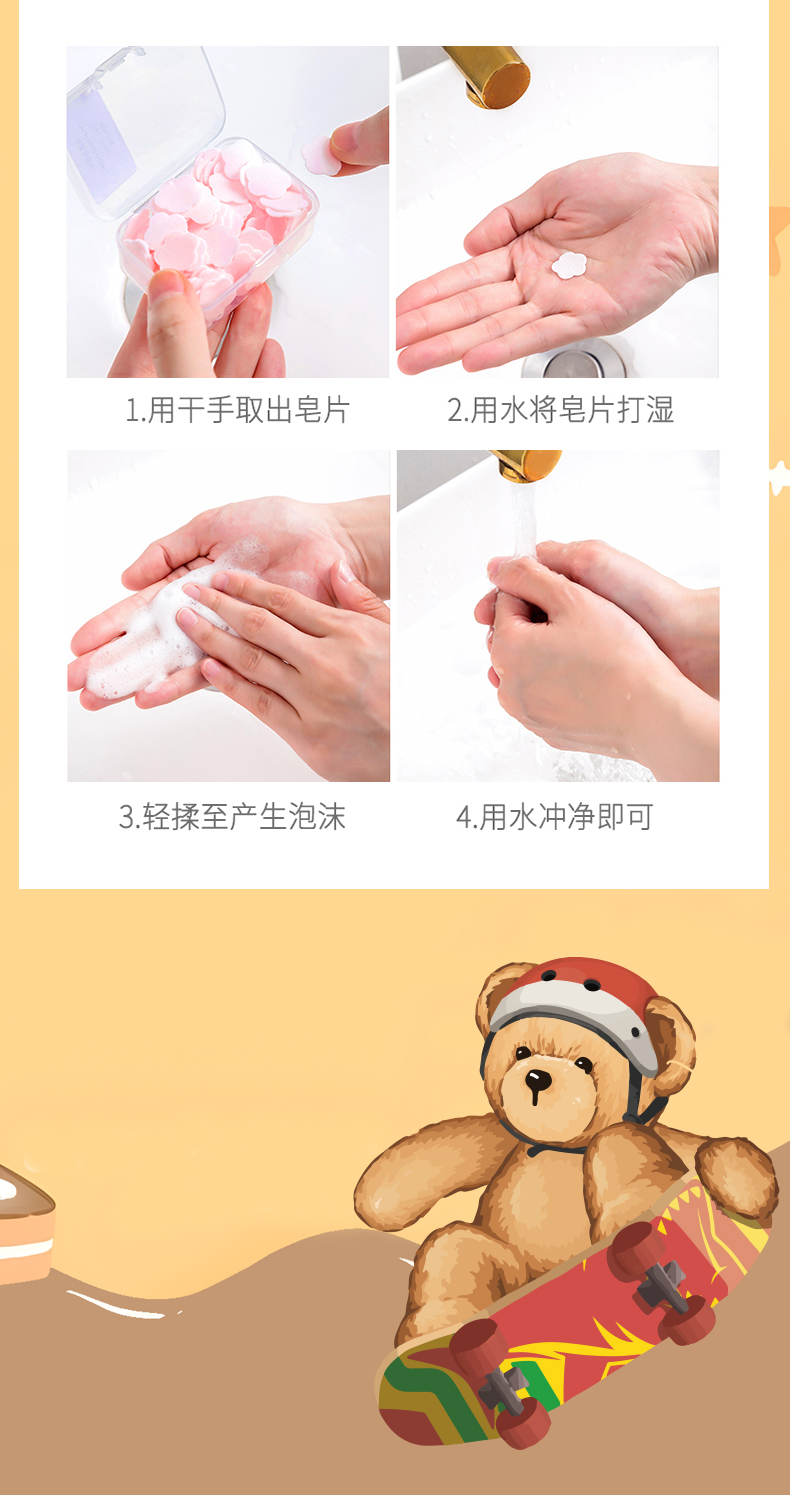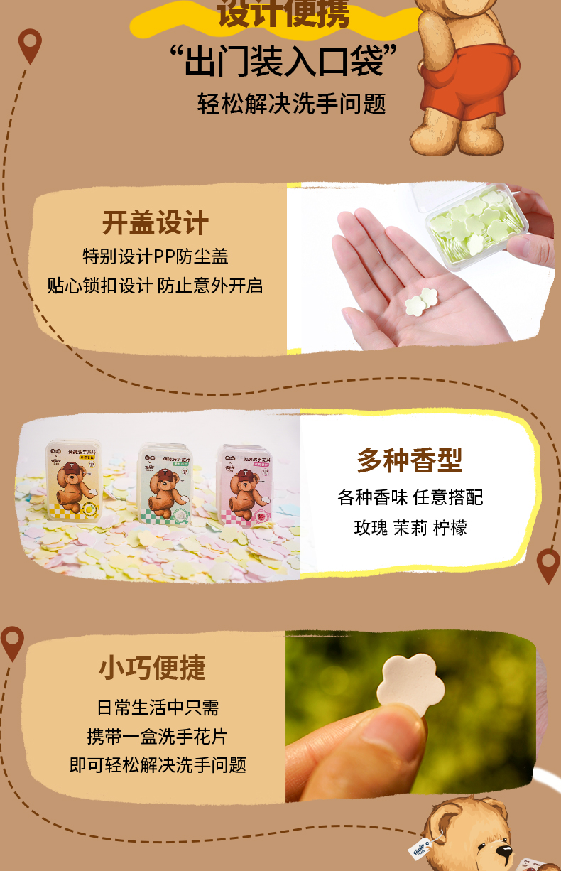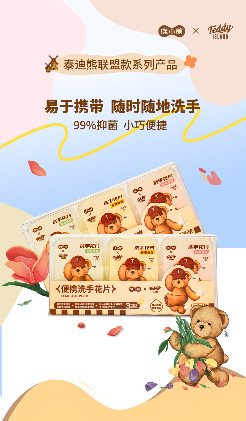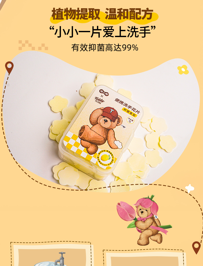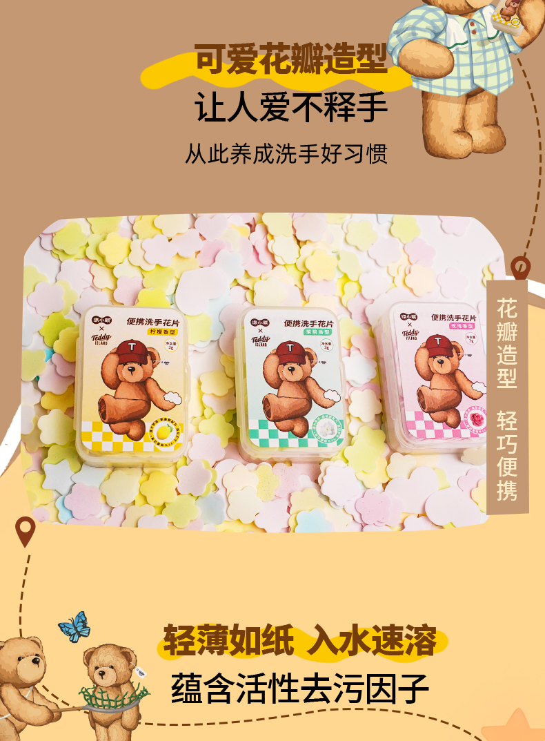 【泰迪熊联名款】涤小萌便携洗手花片小熊掌心魔法 速溶洗手片揣进口袋的萌系洗手液~