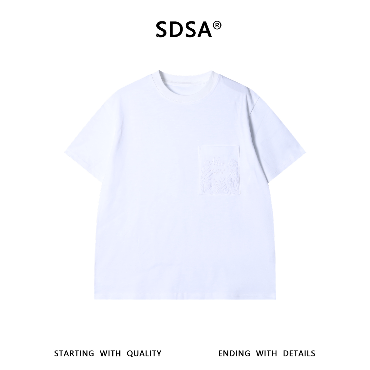 2661SDSA男装2026新款高贵轻奢简约纯色刺绣口袋拼接圆领短袖T恤百搭