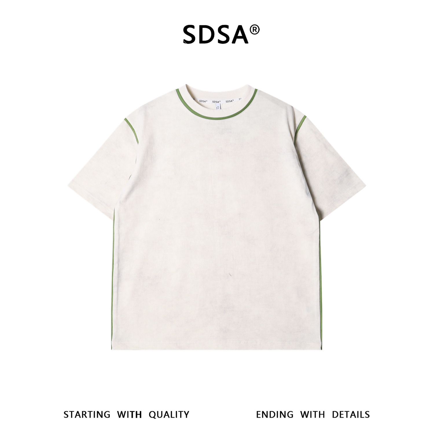 SDSA男装2026新款高贵轻奢日系简约撞色织带圆领短袖T恤百搭上衣