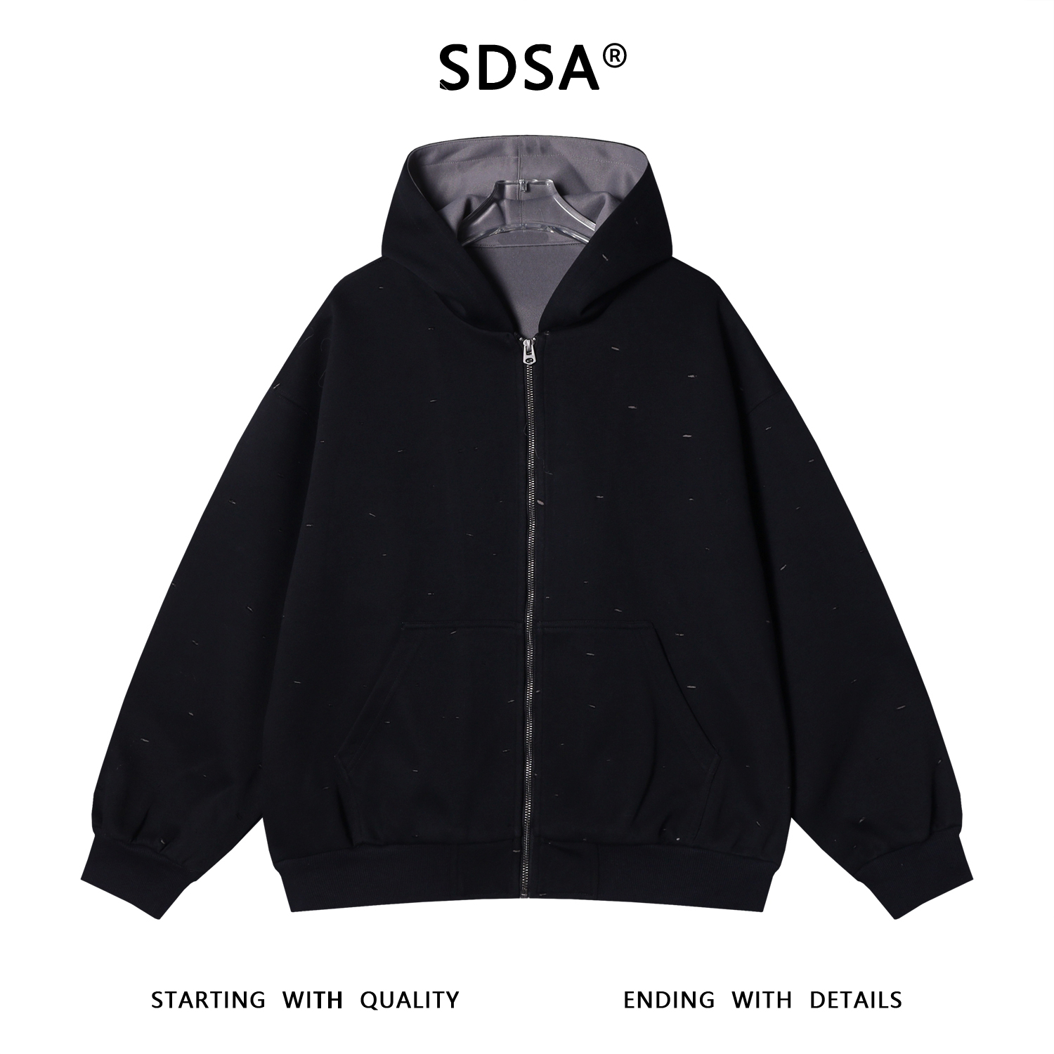 WT101秋冬新款美式街头韩版小众设计男士连帽拉链款长袖宽松潮流卫衣