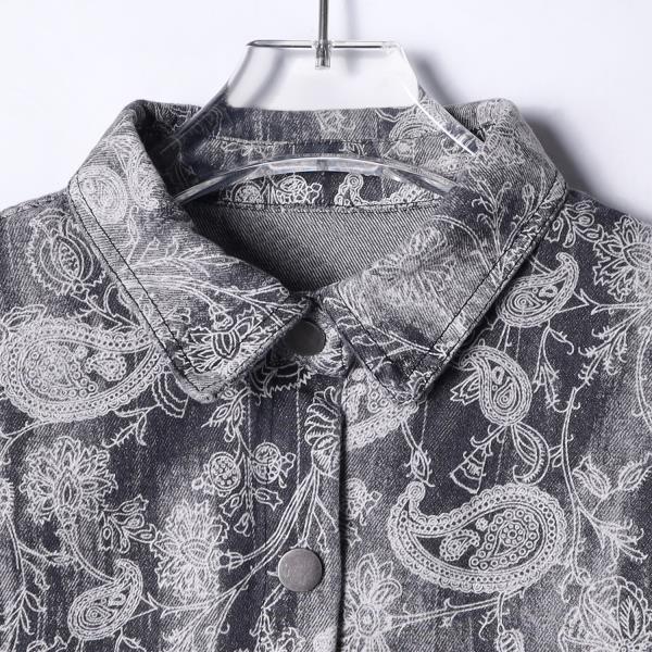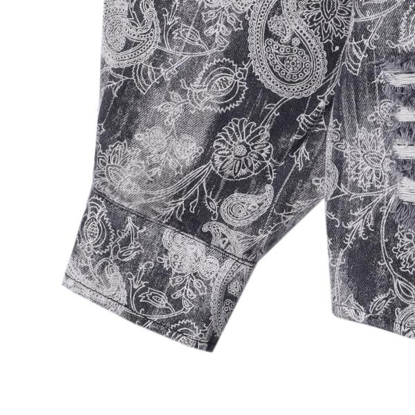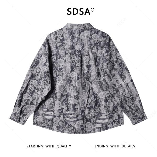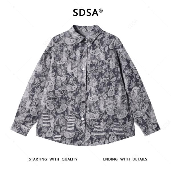 J9822SDSA男士秋冬新款痞帅男装腰果花牛仔翻领长袖村衫磨破设计衬衣