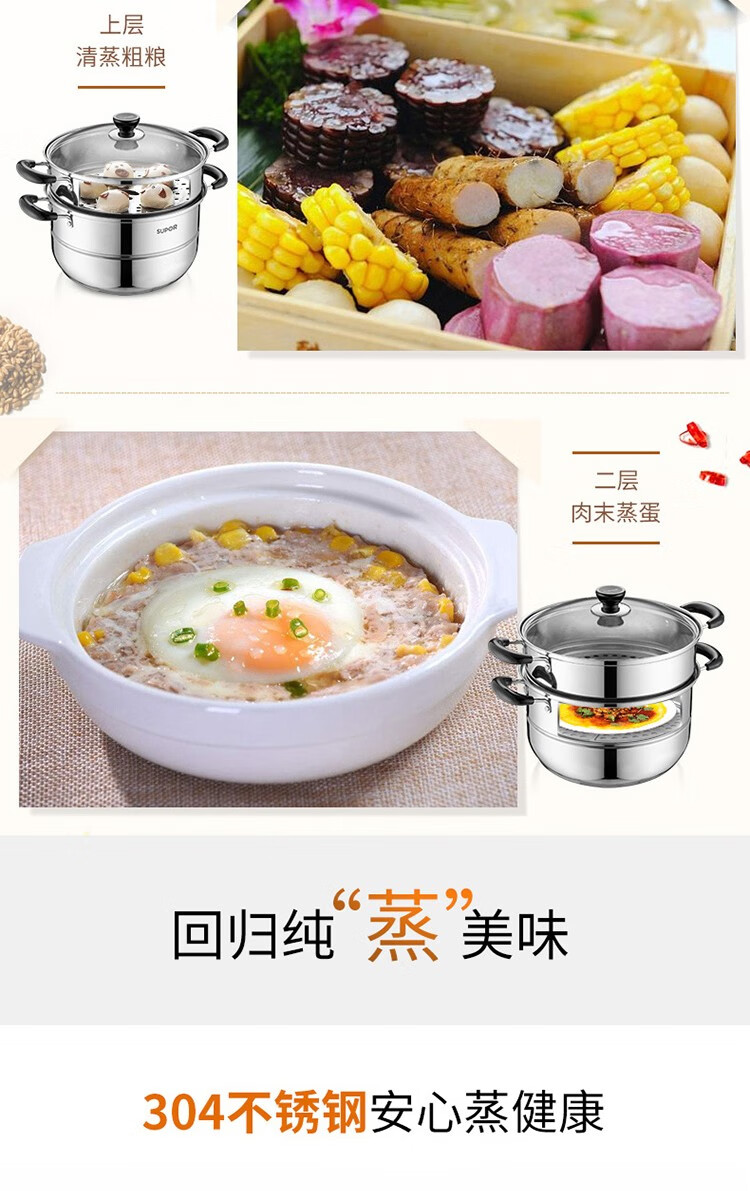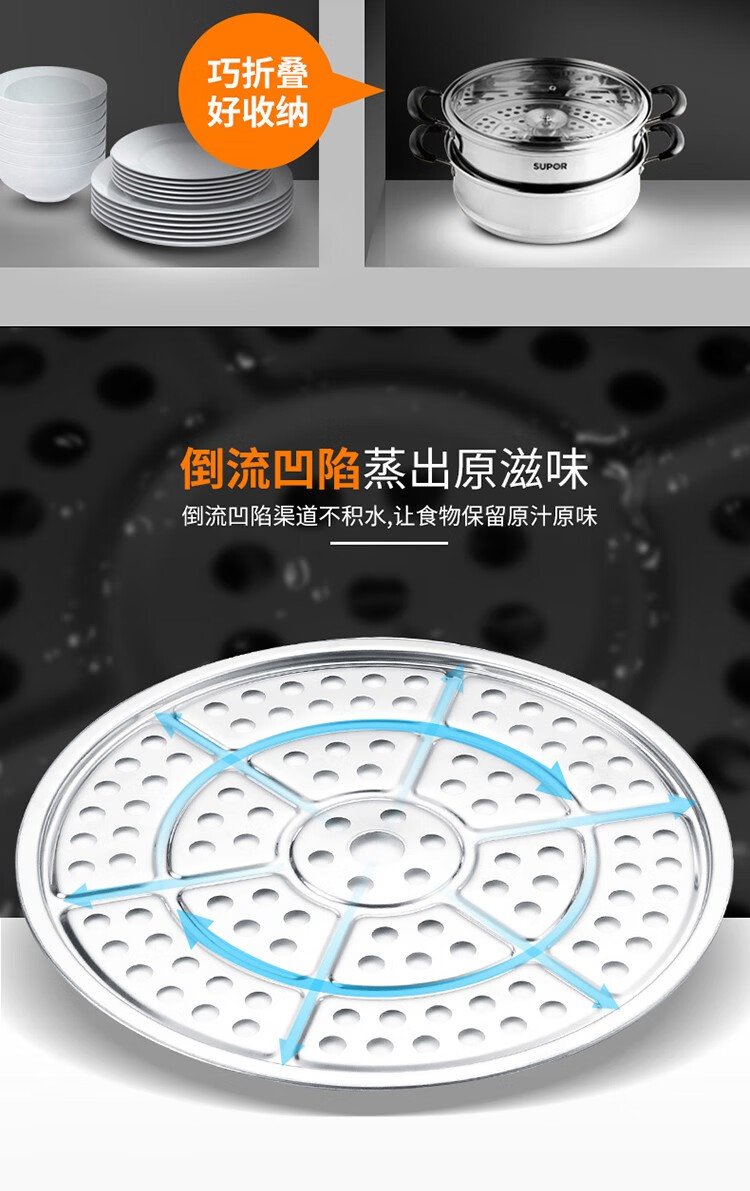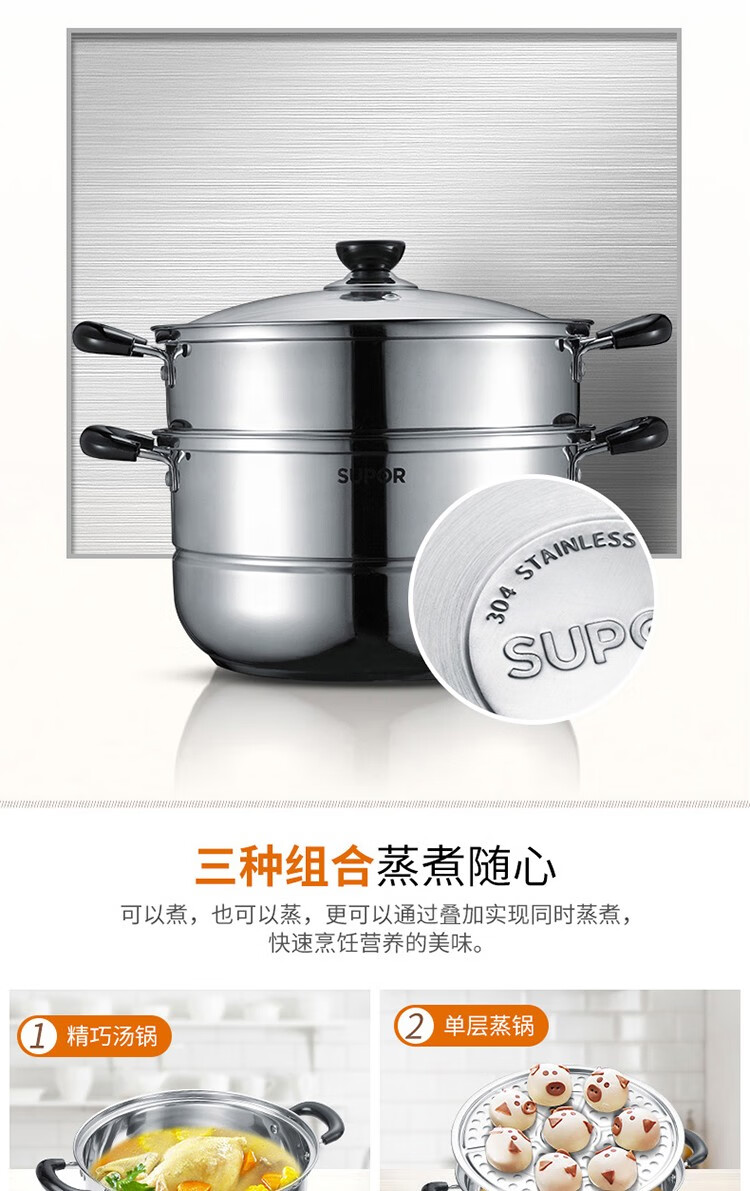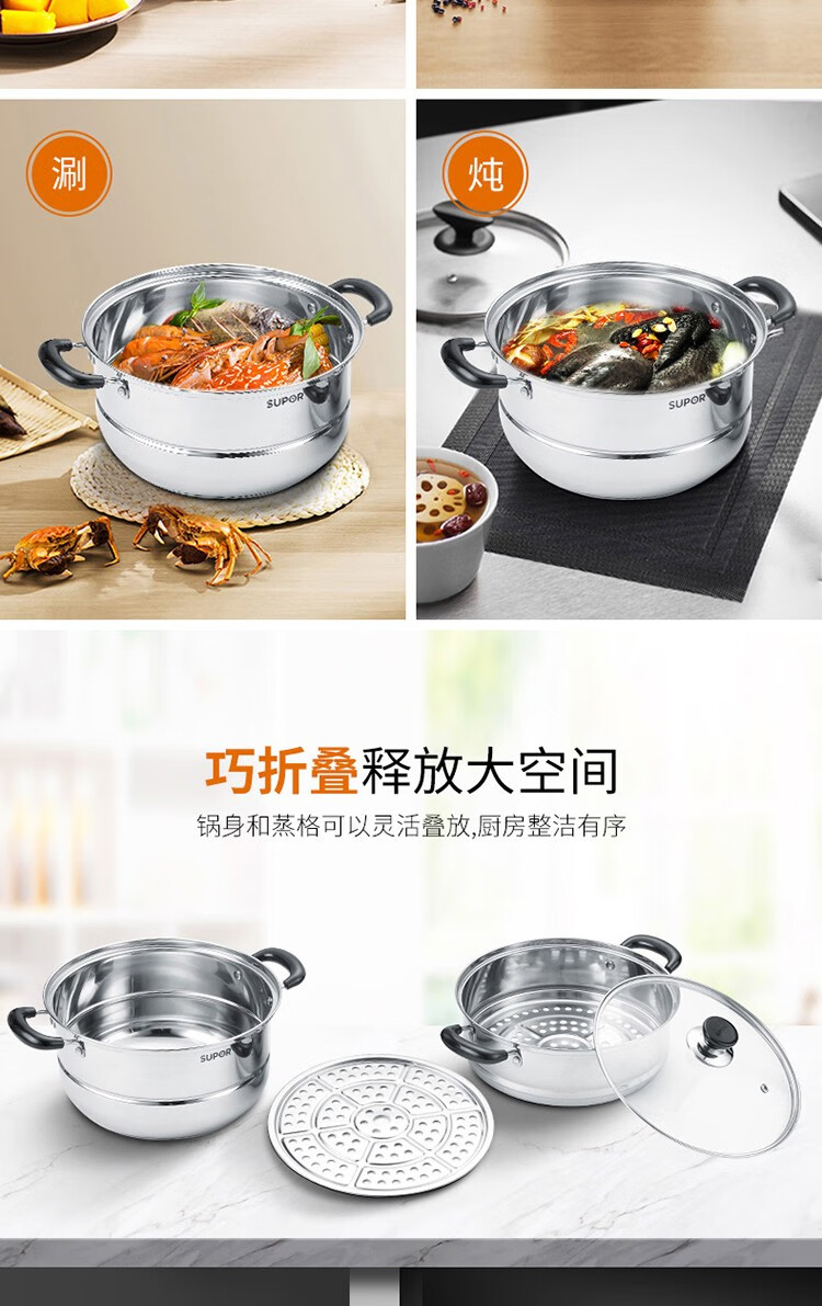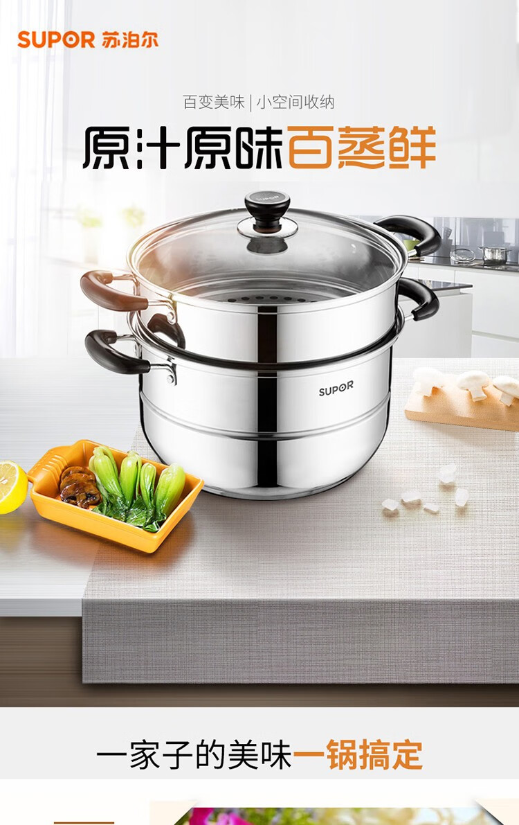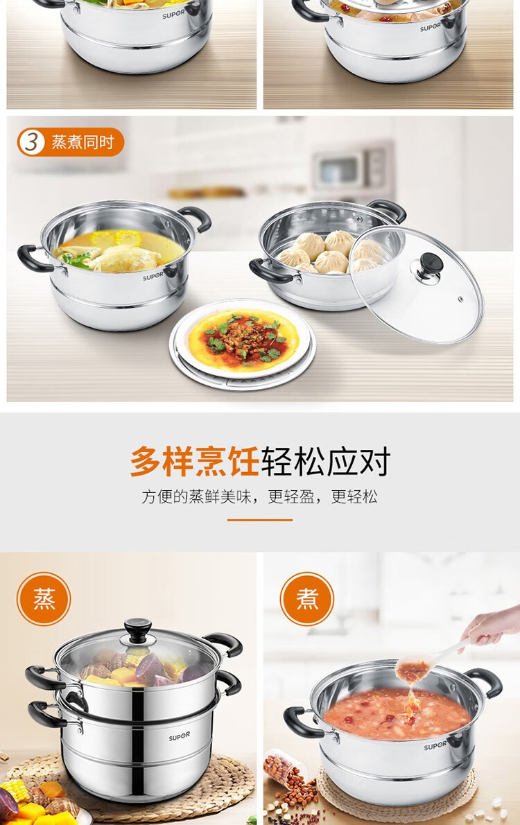苏泊尔(SUPOR)蒸锅不锈钢双层复底汤锅二层蒸笼家用 SZ26B7: 蒸锅