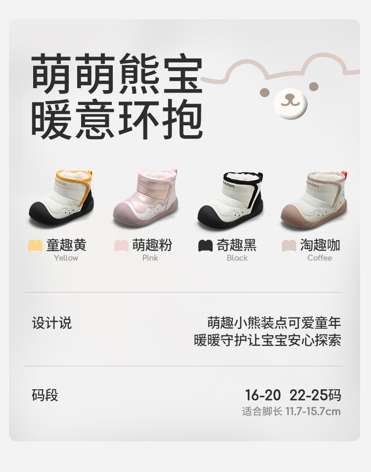 牧童2025冬季新款学步机能鞋雪地靴保暖加绒防滑棉鞋子大棉雪地靴