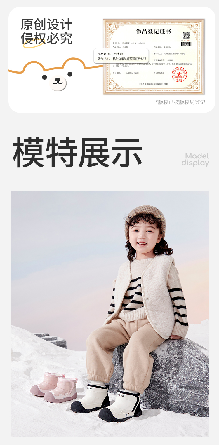 牧童保暖加绒大棉童鞋防滑室外稳步机能鞋2-6岁雪地靴冬季新款鞋
