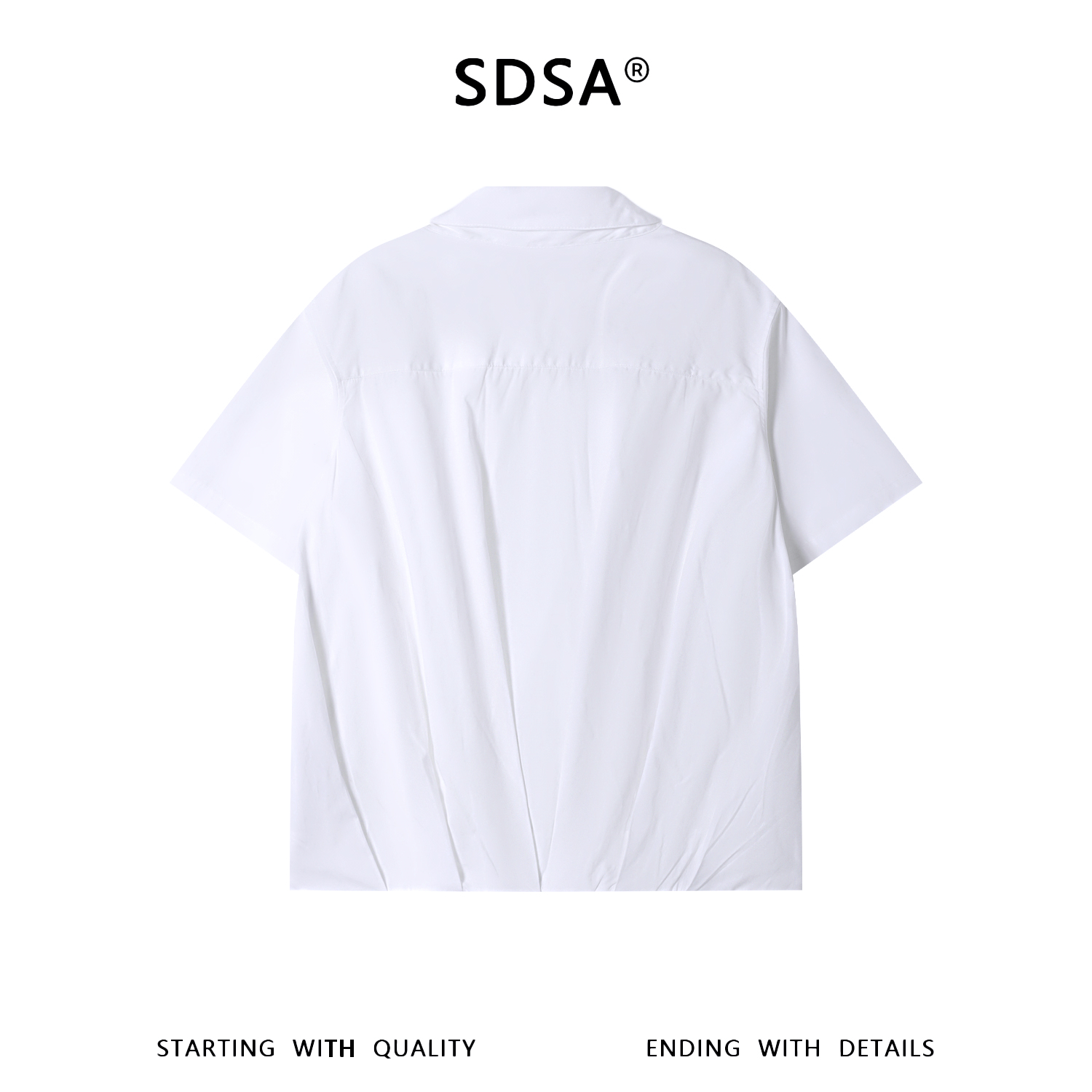 SDSA男装2026新款高贵轻奢日系简约纯色下摆褶皱翻领短袖衬衫百搭