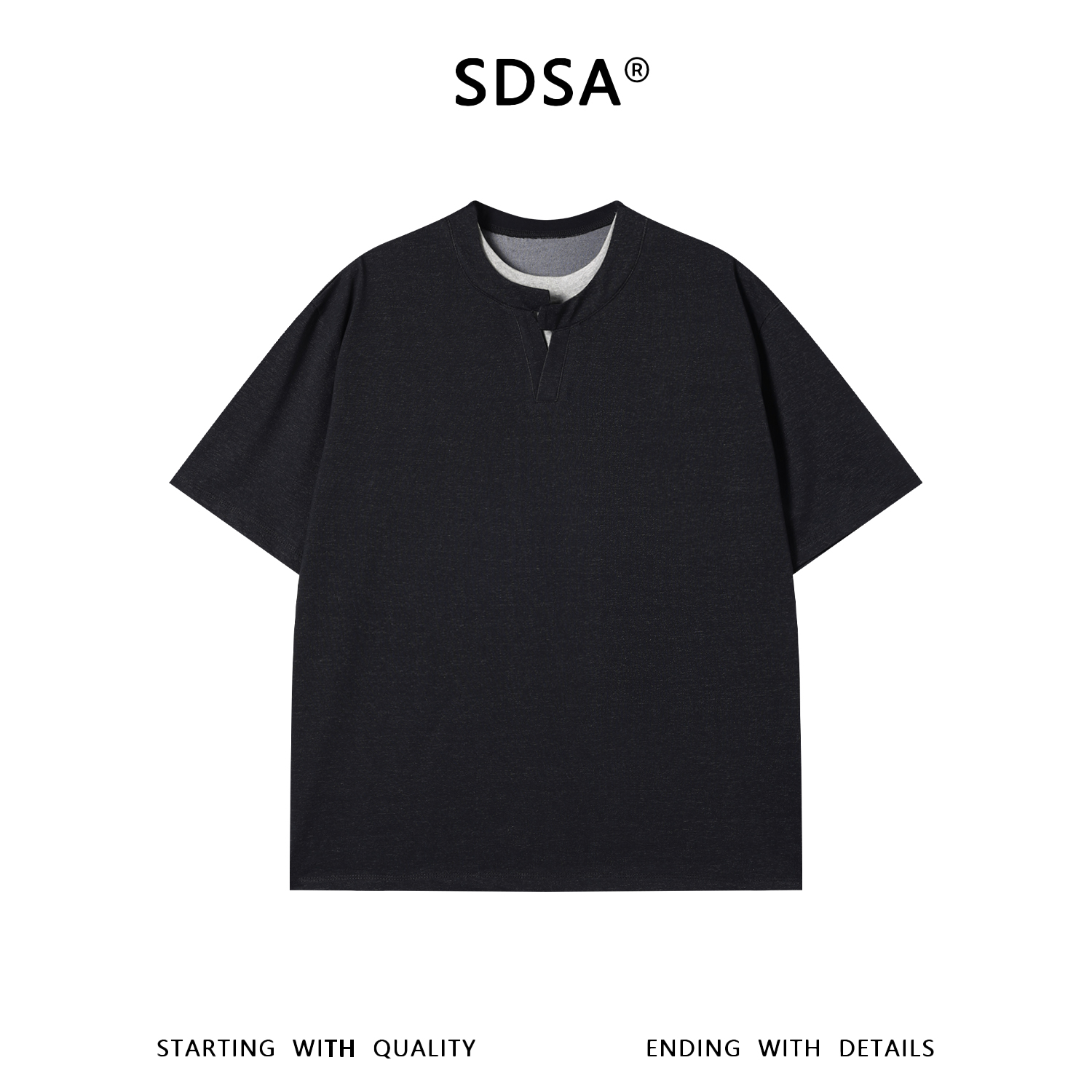 SDSA男装2026新款高贵轻奢老钱风拼接双层领短袖T恤百搭宽松上衣