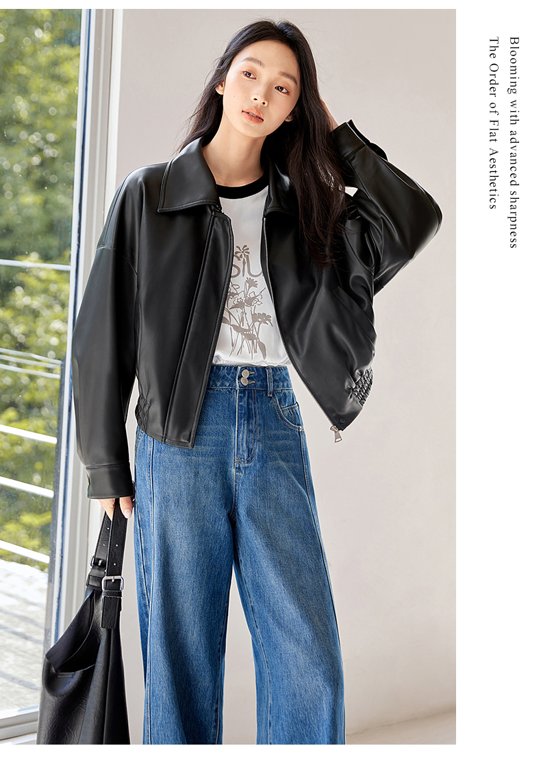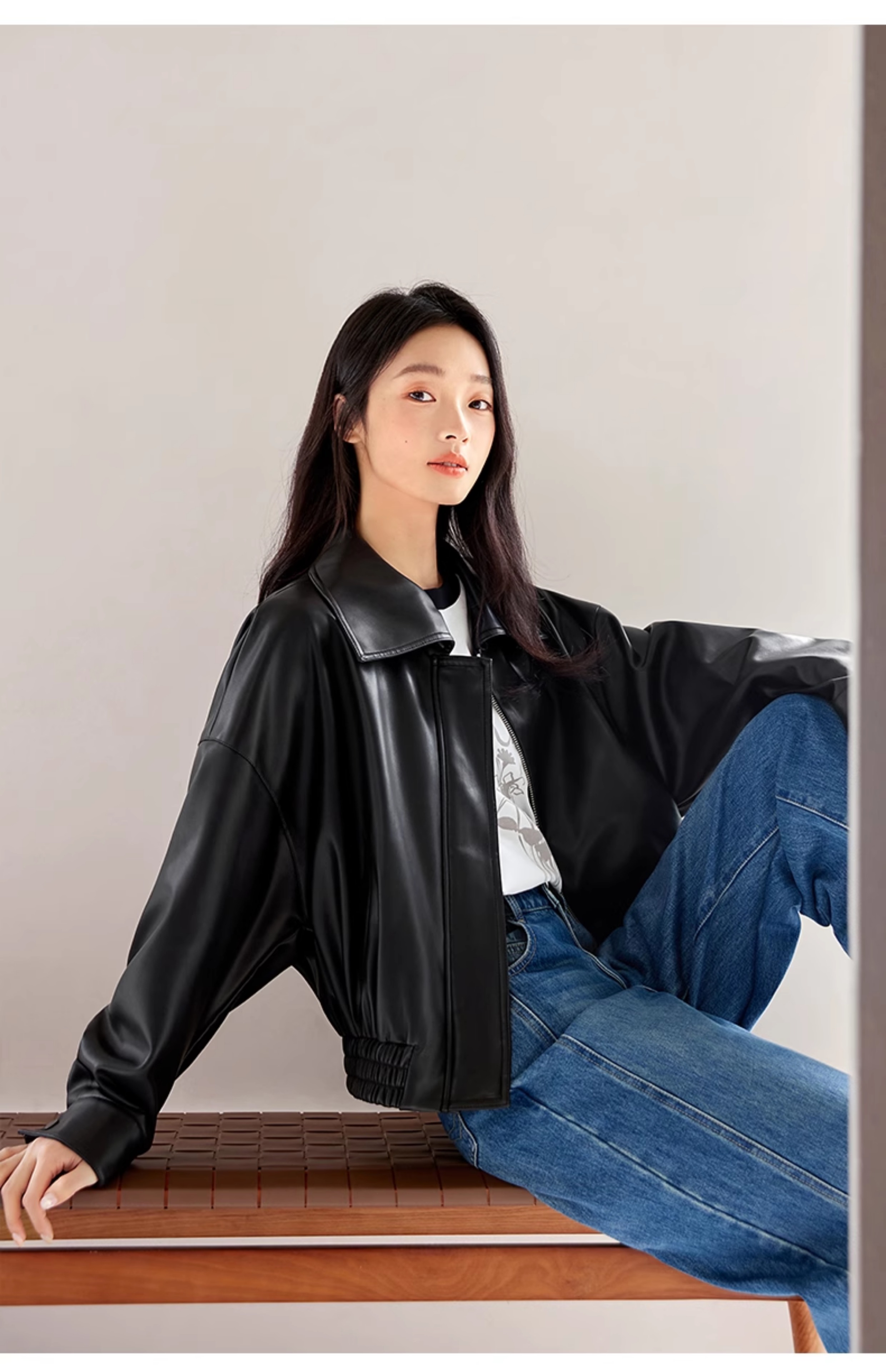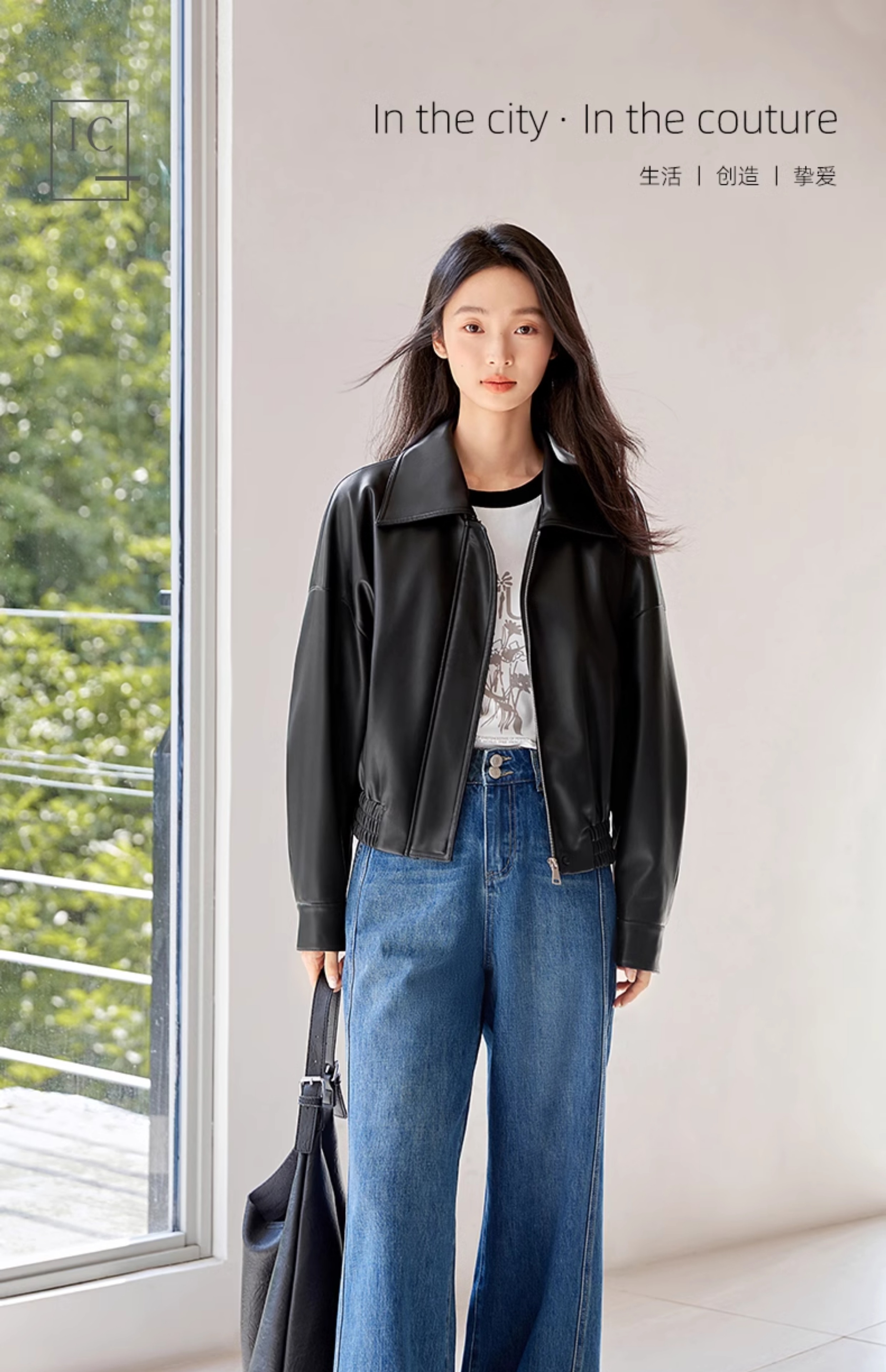 IC 秋冬新款黑色复古皮衣外套女款设计高级通勤街头气质上衣