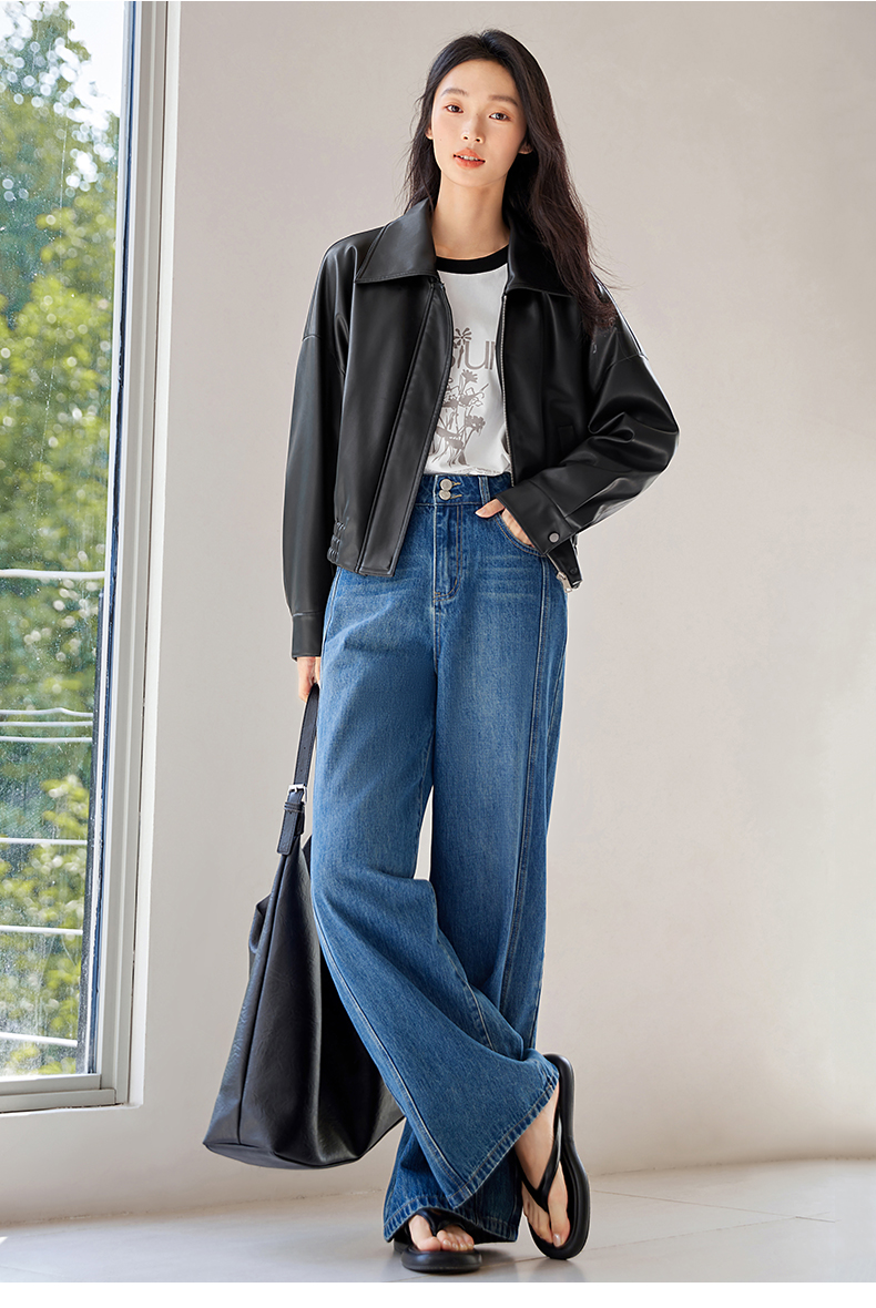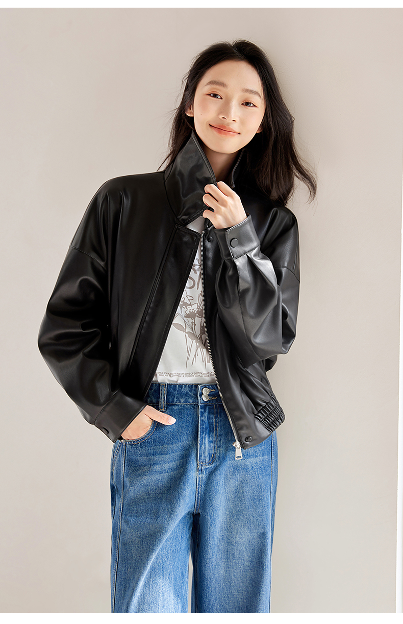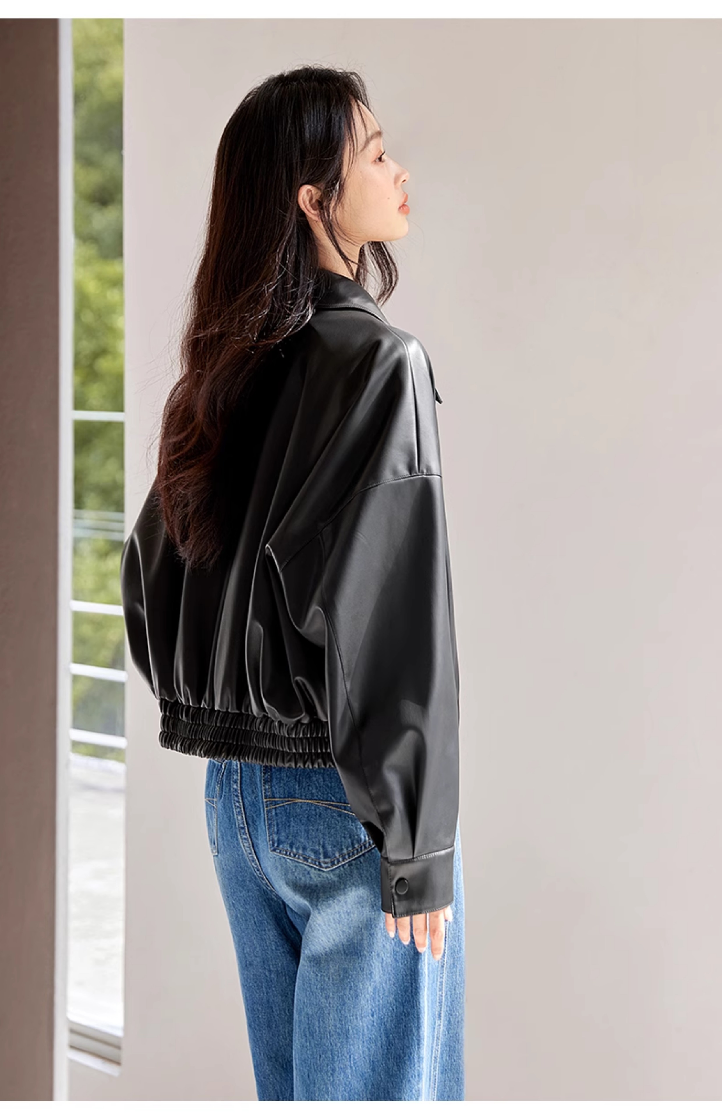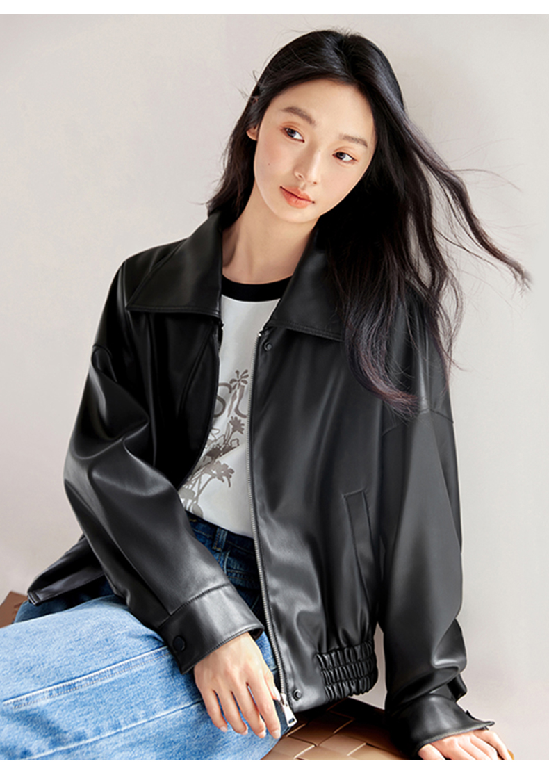 IC 秋冬新款黑色复古皮衣外套女款设计高级通勤街头气质上衣