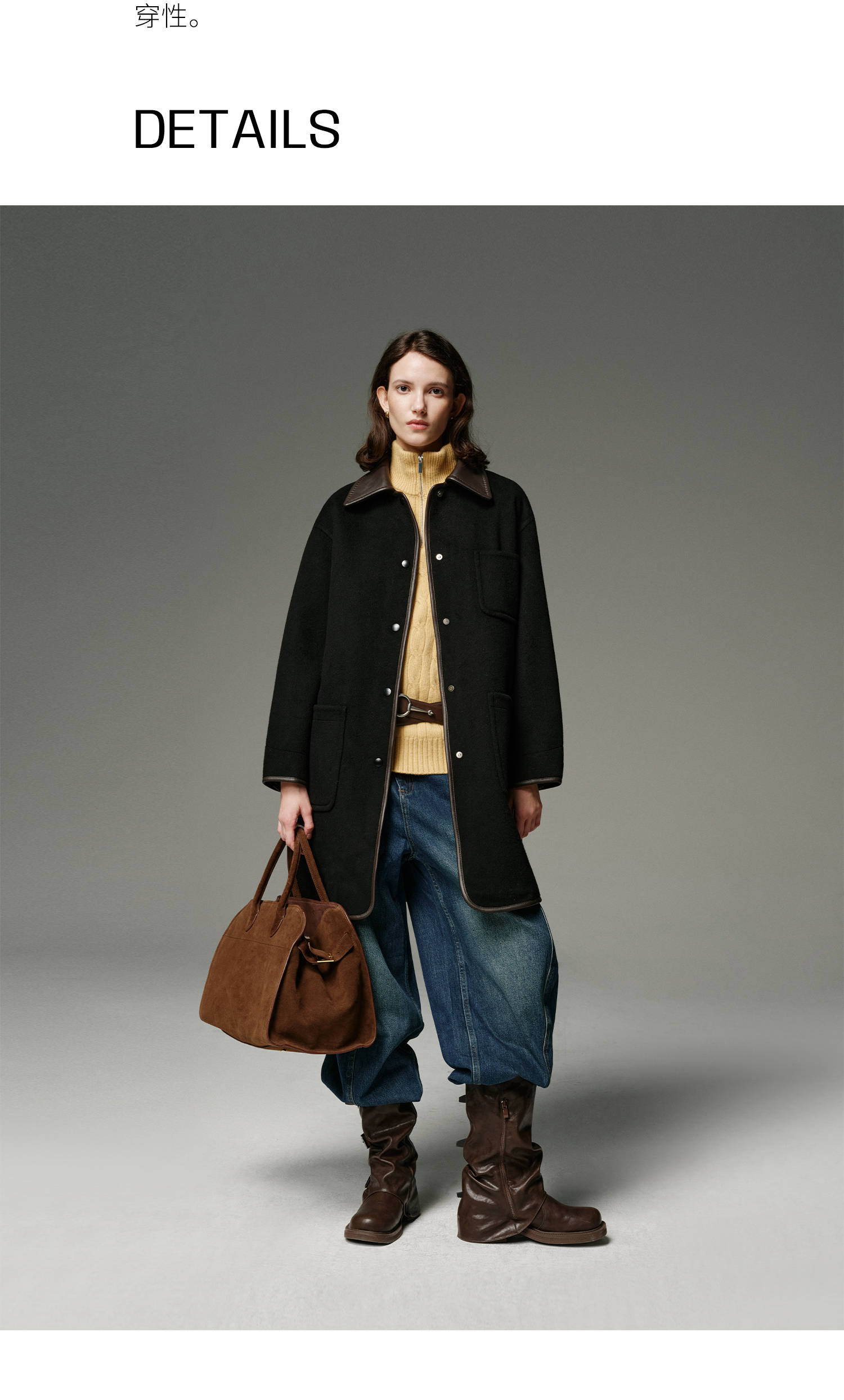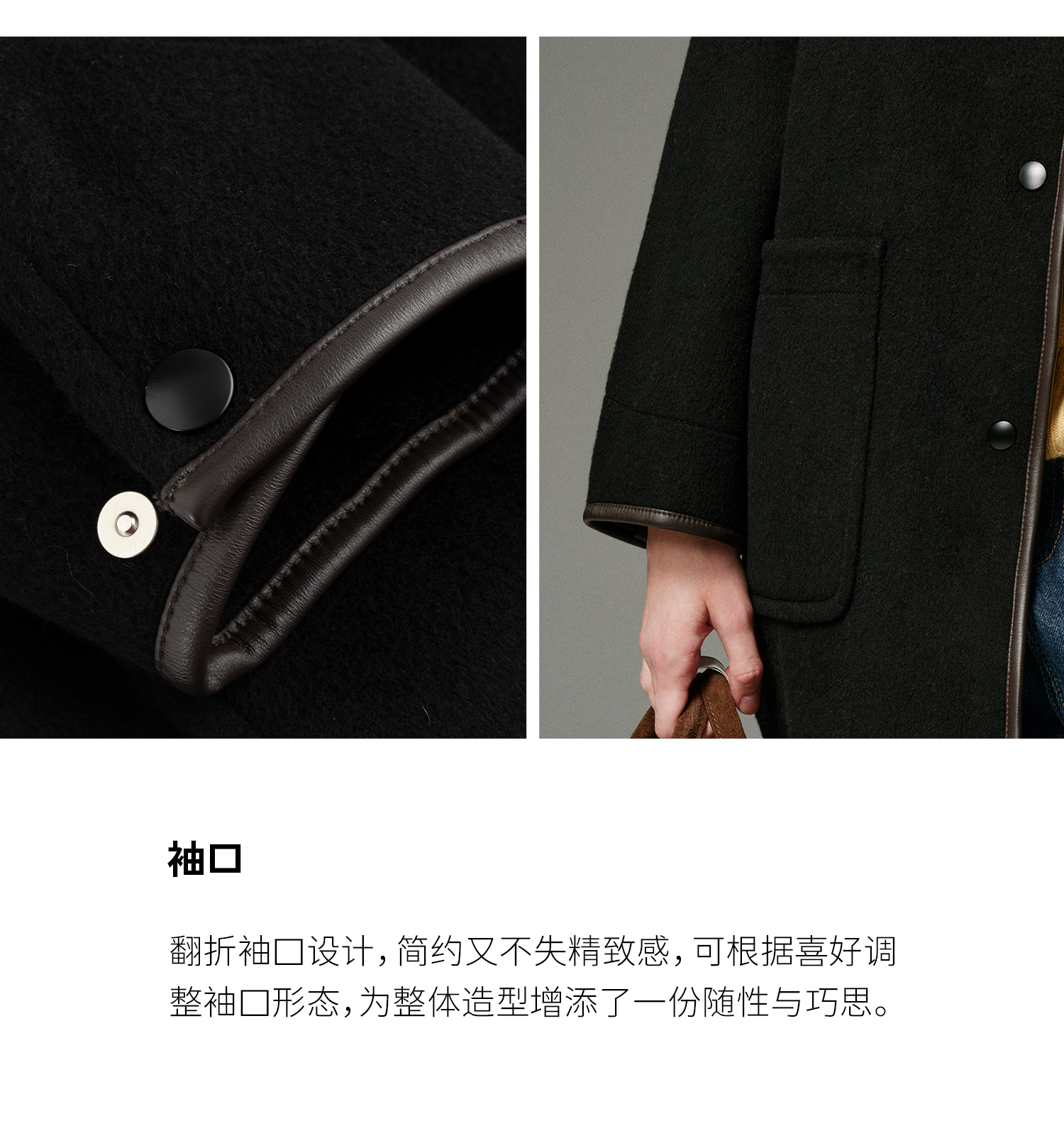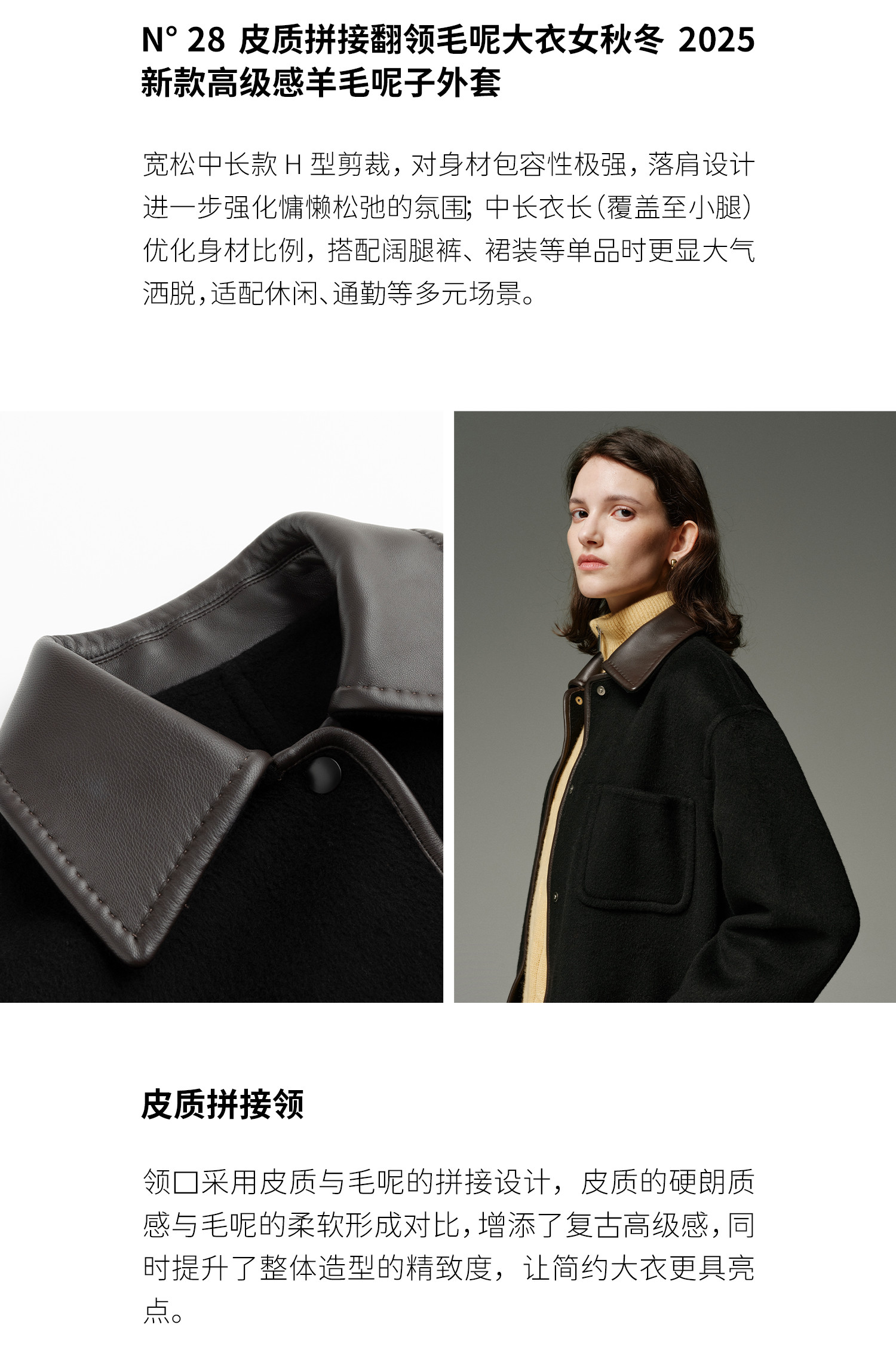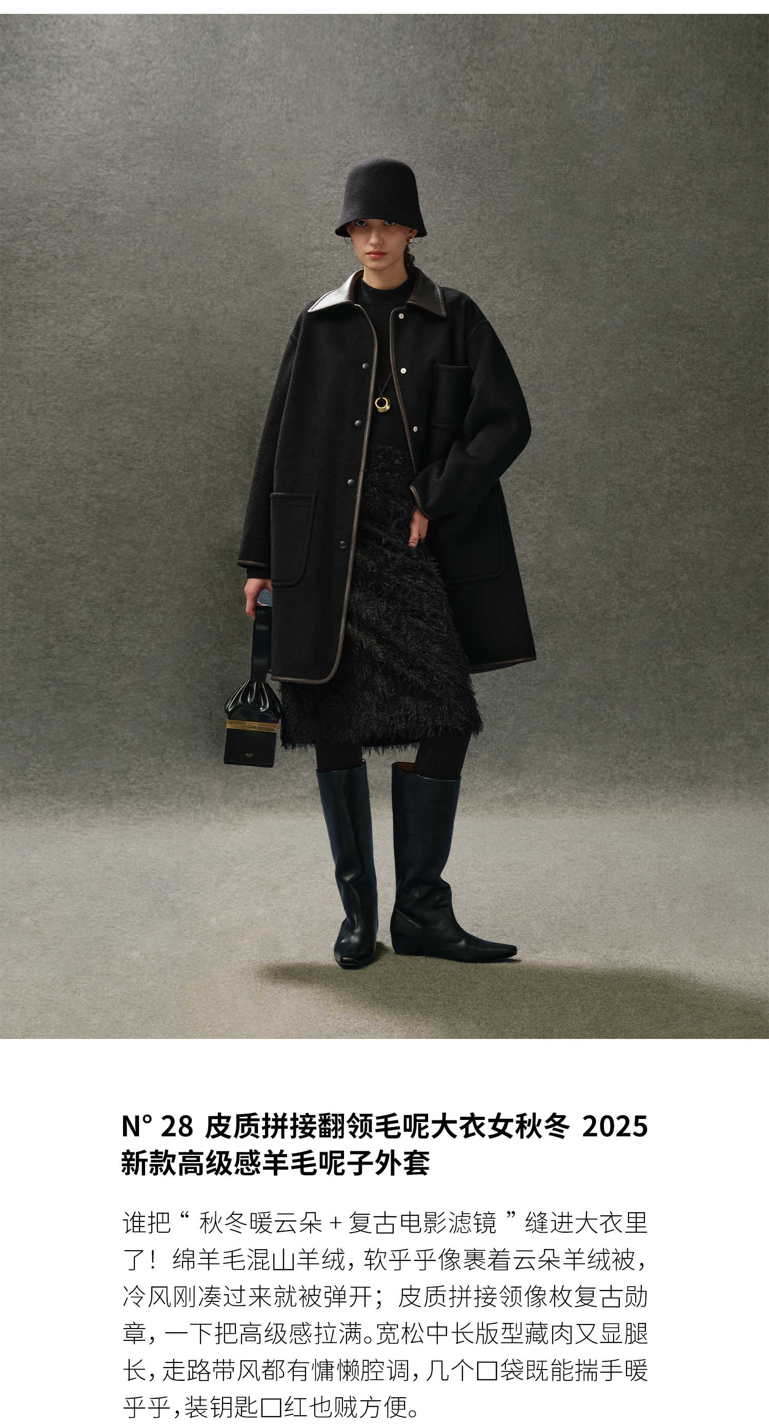 N°28 主推款【皮领大衣】山羊绒大衣女秋冬季2025新款皮质翻领毛呢子外套8855A1D725