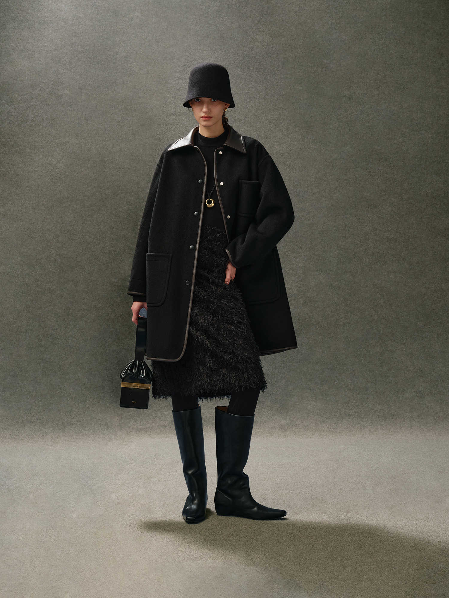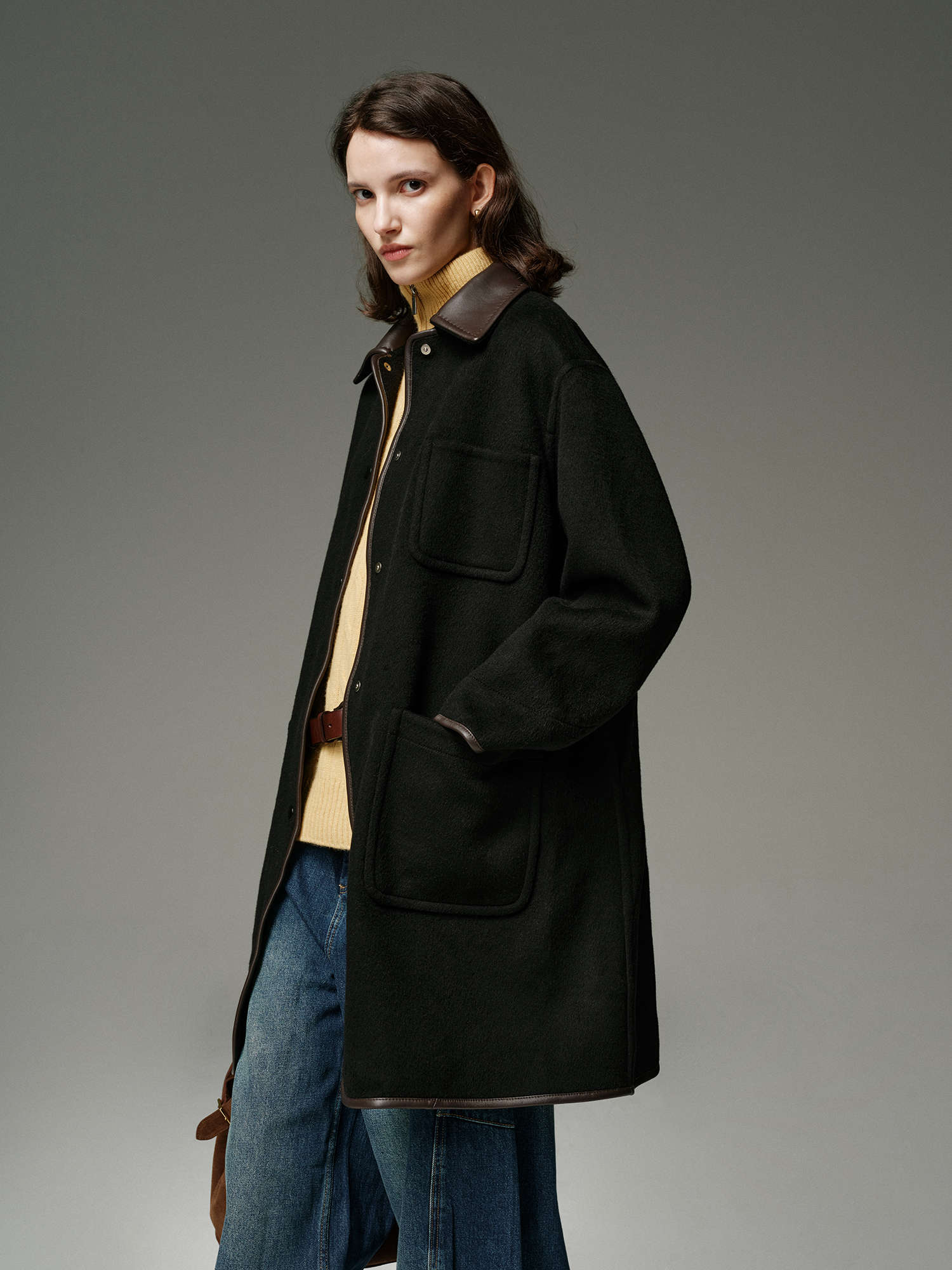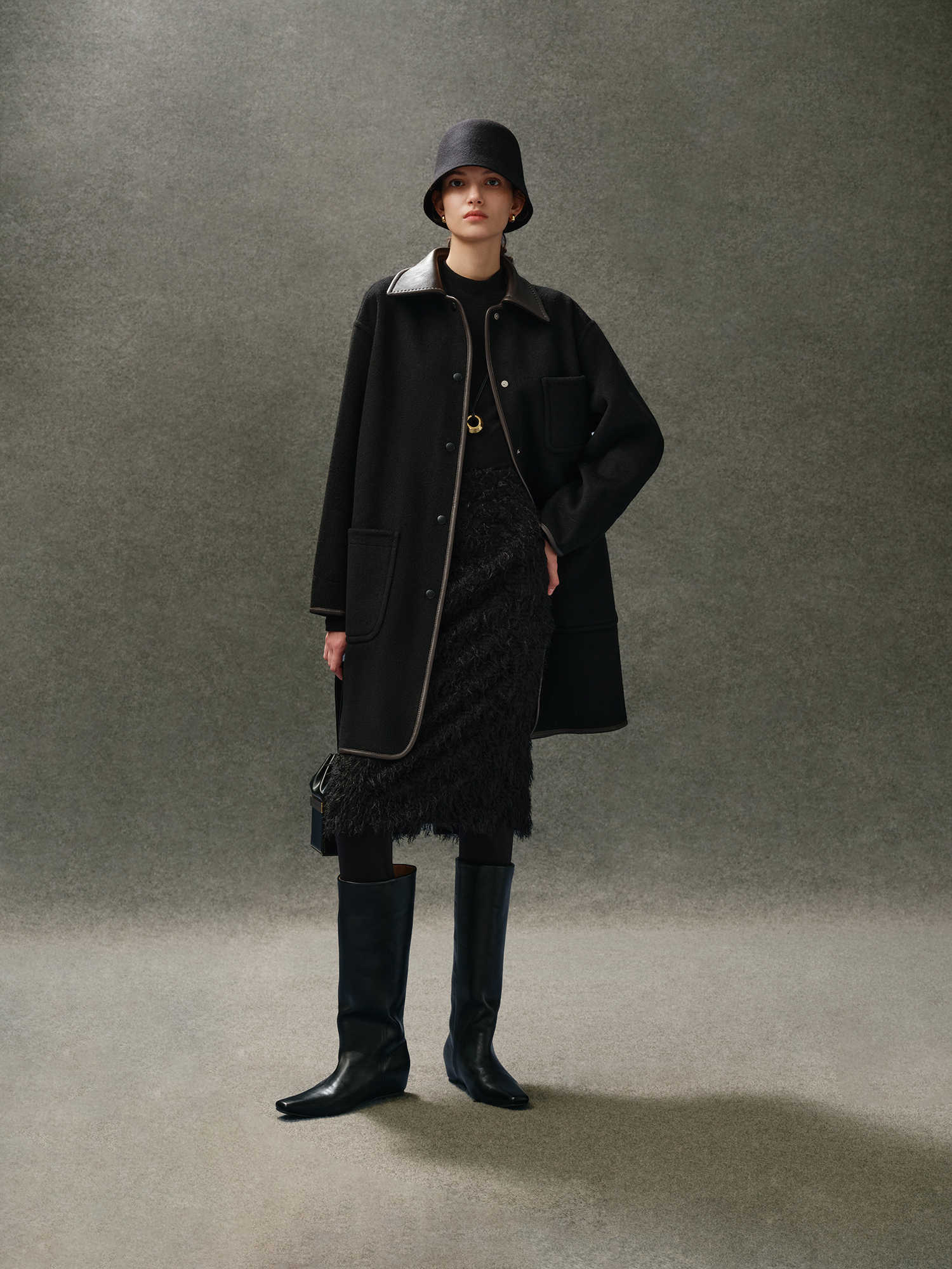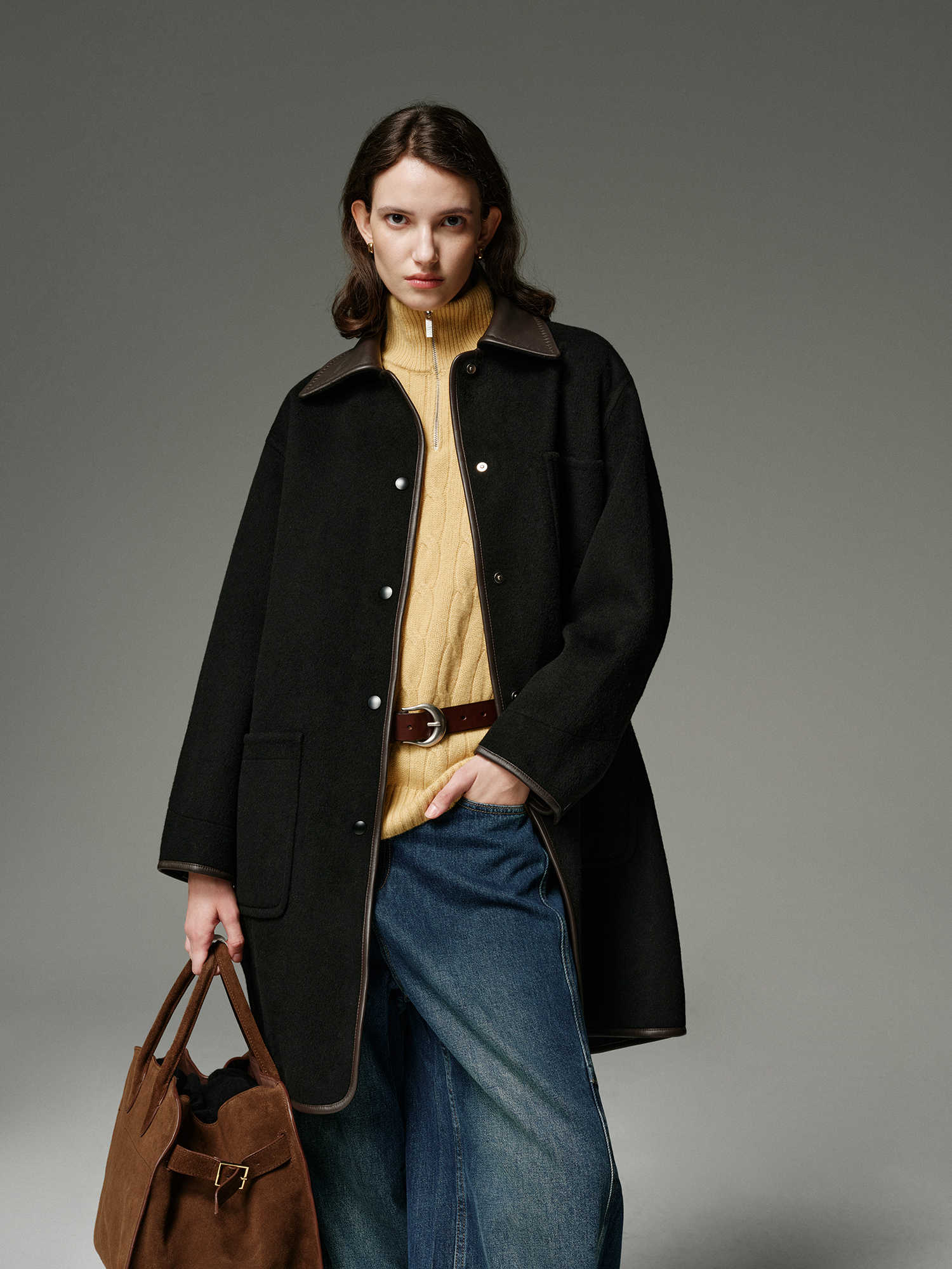 N°28 主推款【皮领大衣】山羊绒大衣女秋冬季2025新款皮质翻领毛呢子外套8855A1D725
