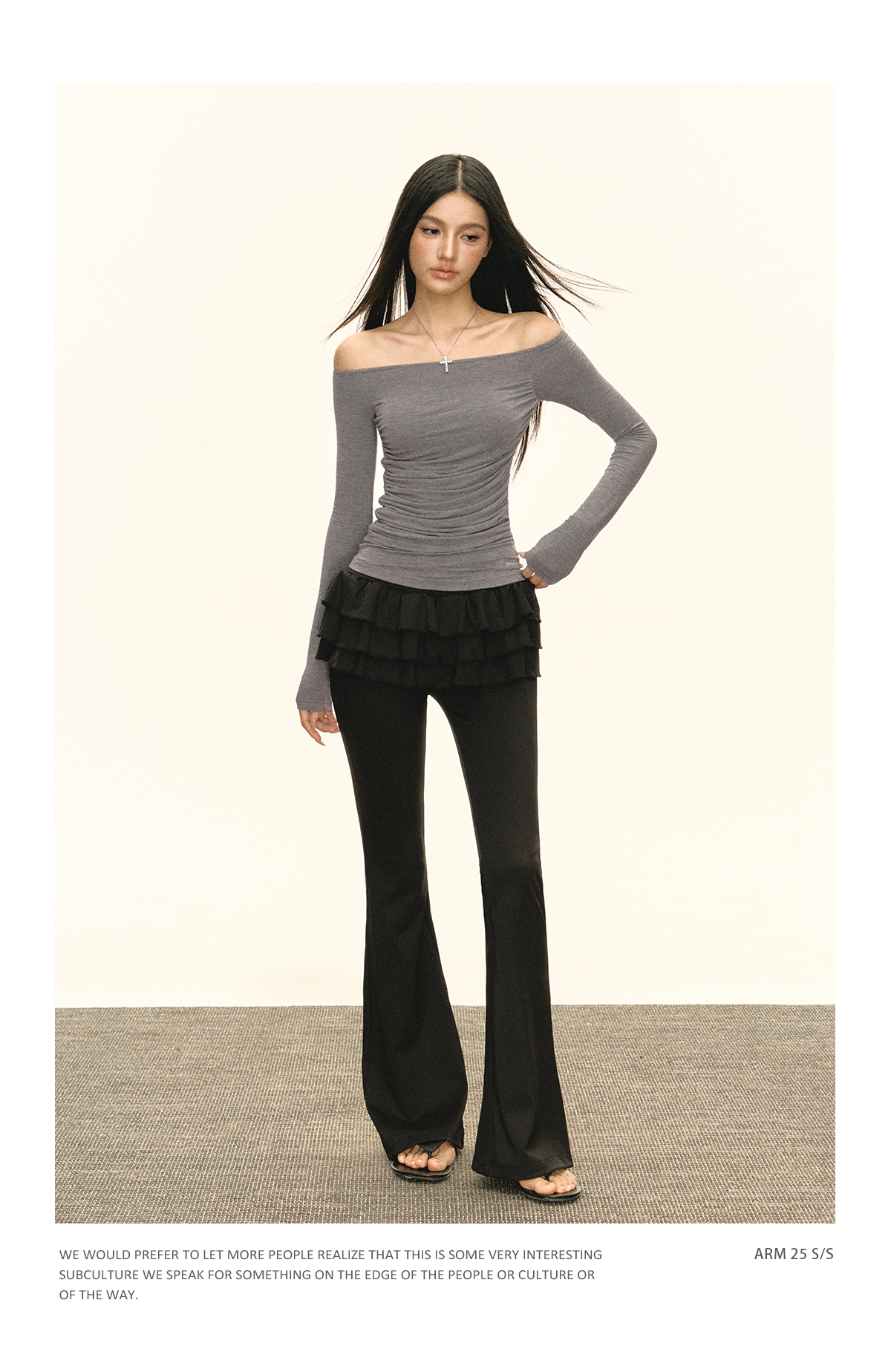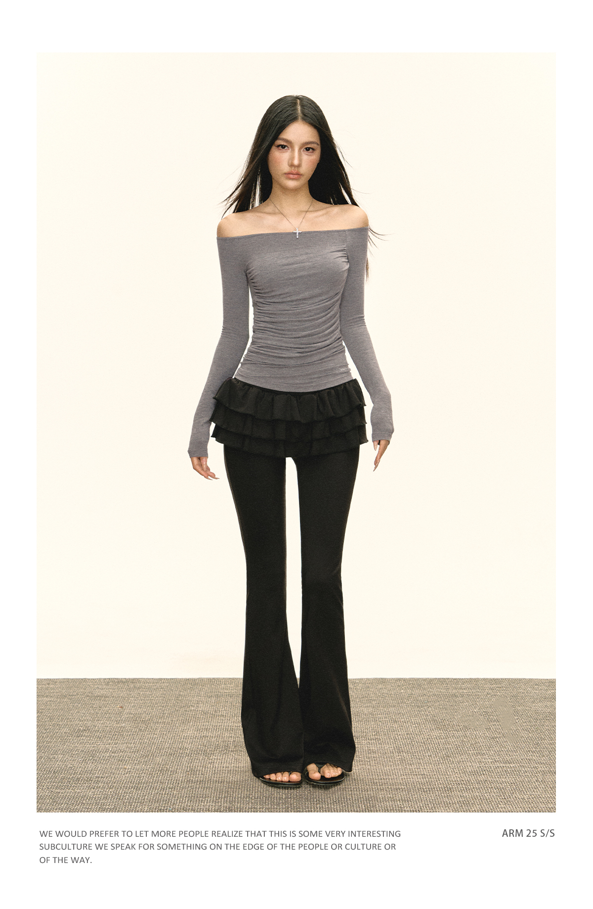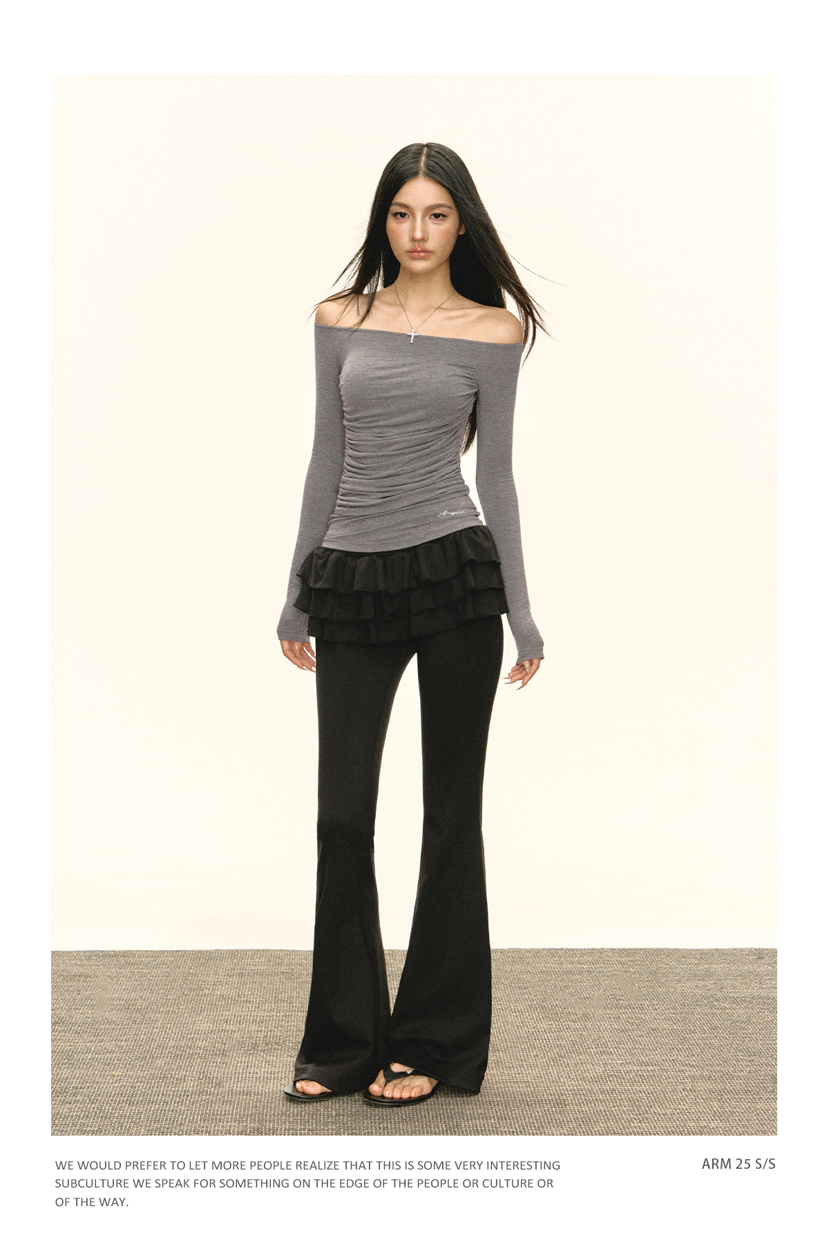 Ariseism 美式复古设计感修身露肩针织开衫女春季新款修身上衣