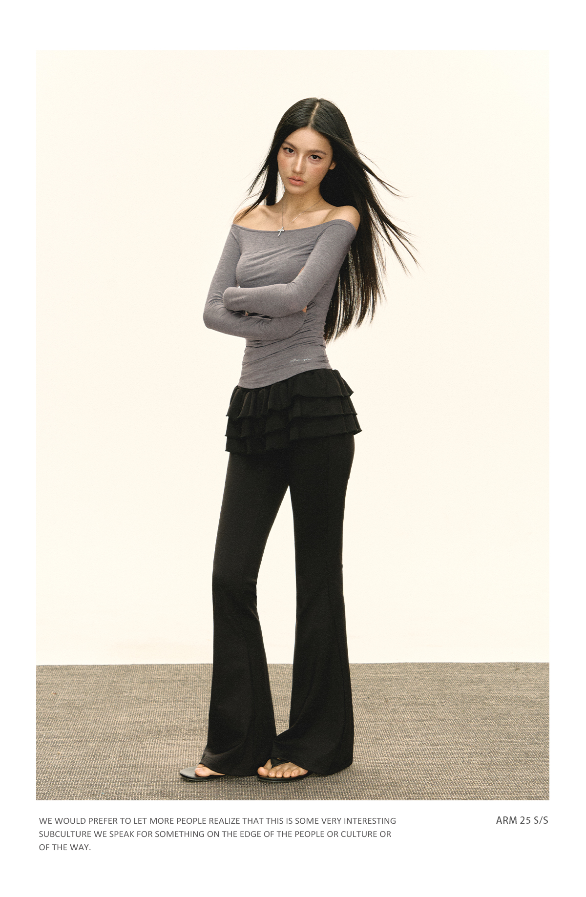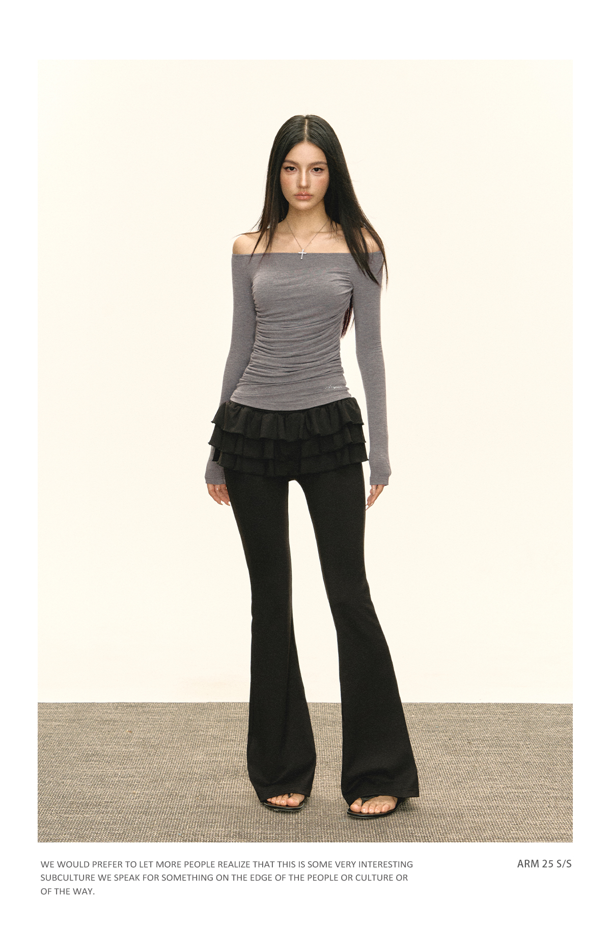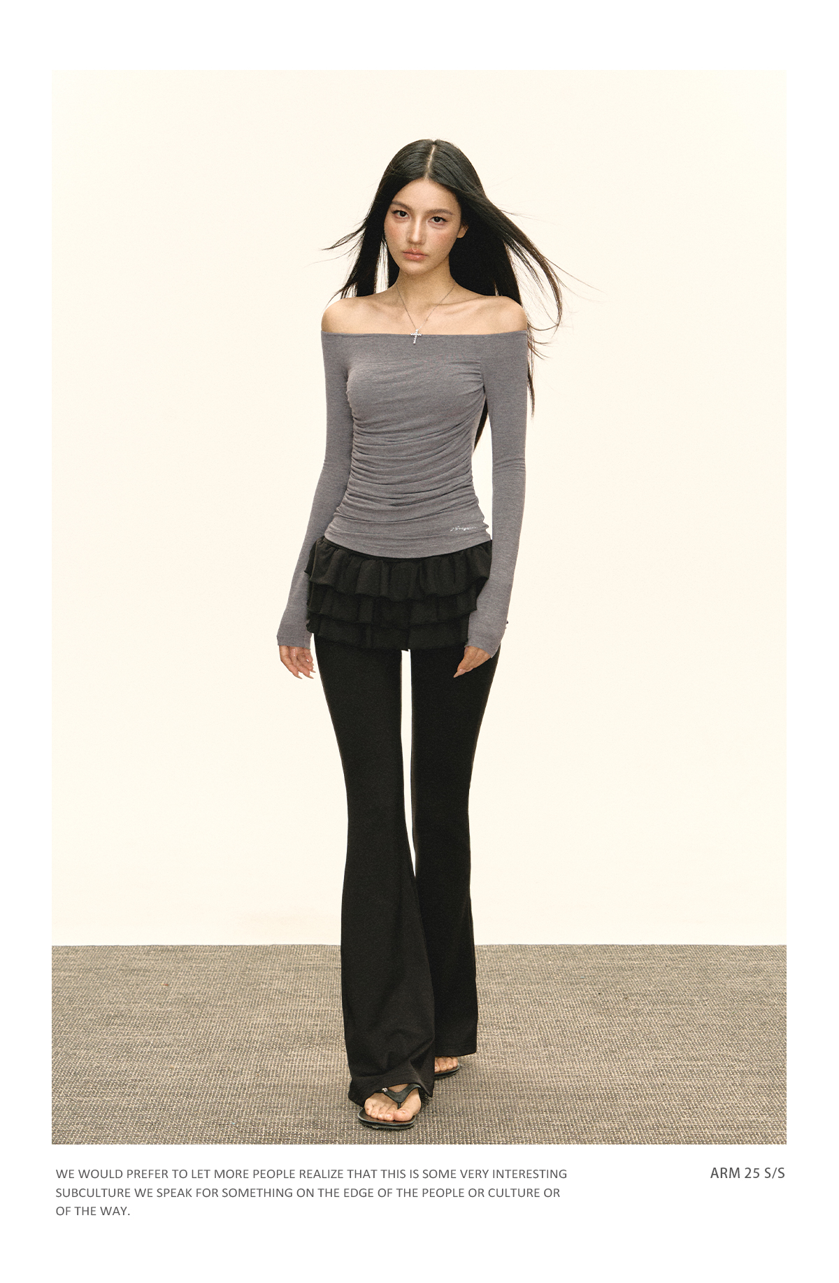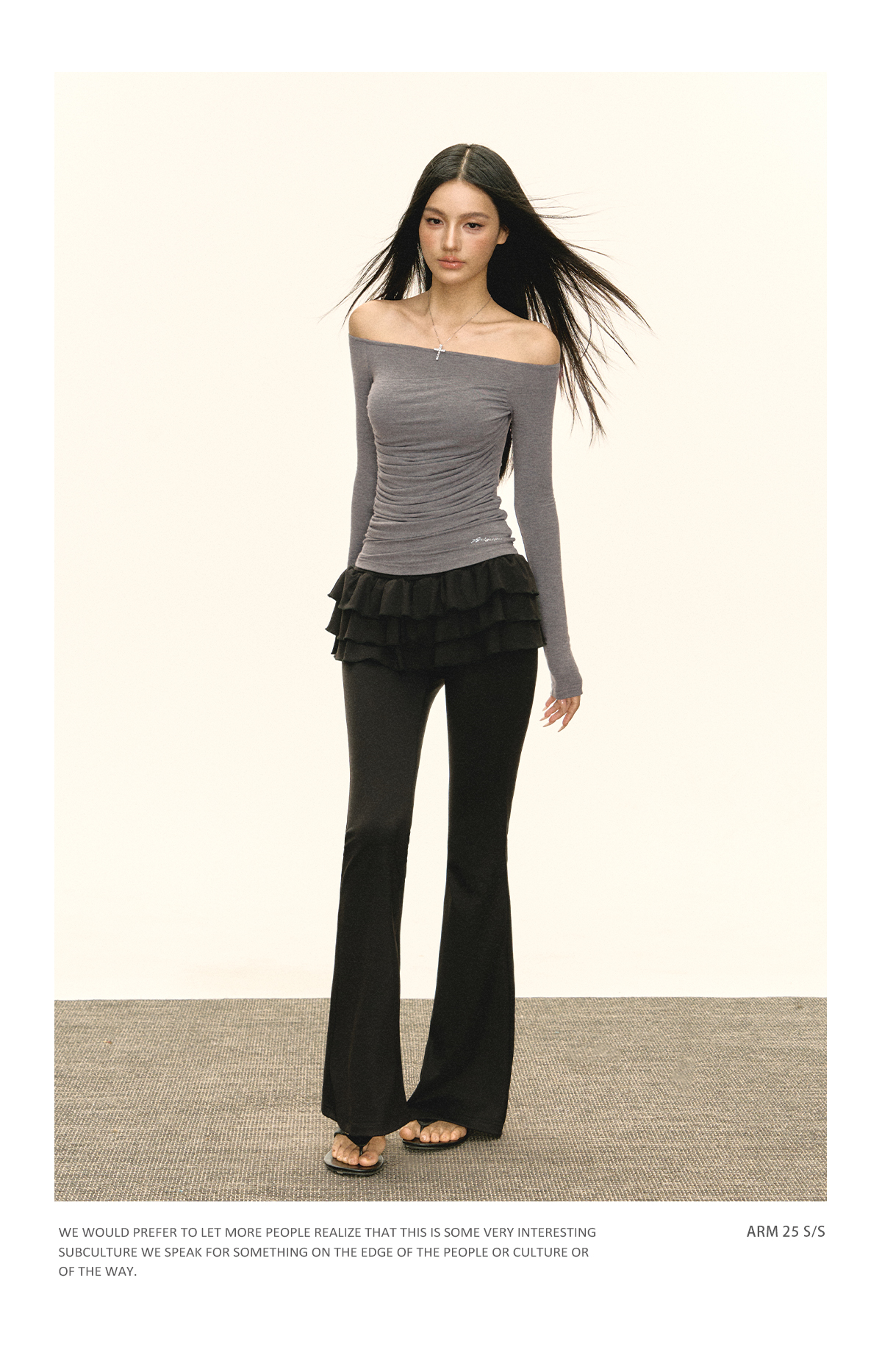 Ariseism 美式复古设计感修身露肩针织开衫女春季新款修身上衣