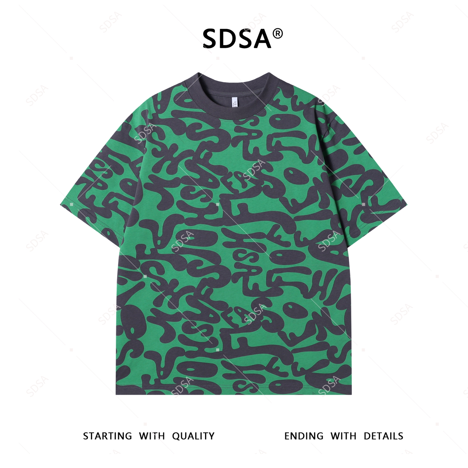 T4391SDSA夏季新款男士痞帅美式撞色抽象字母设计圆领短袖T恤高街上衣